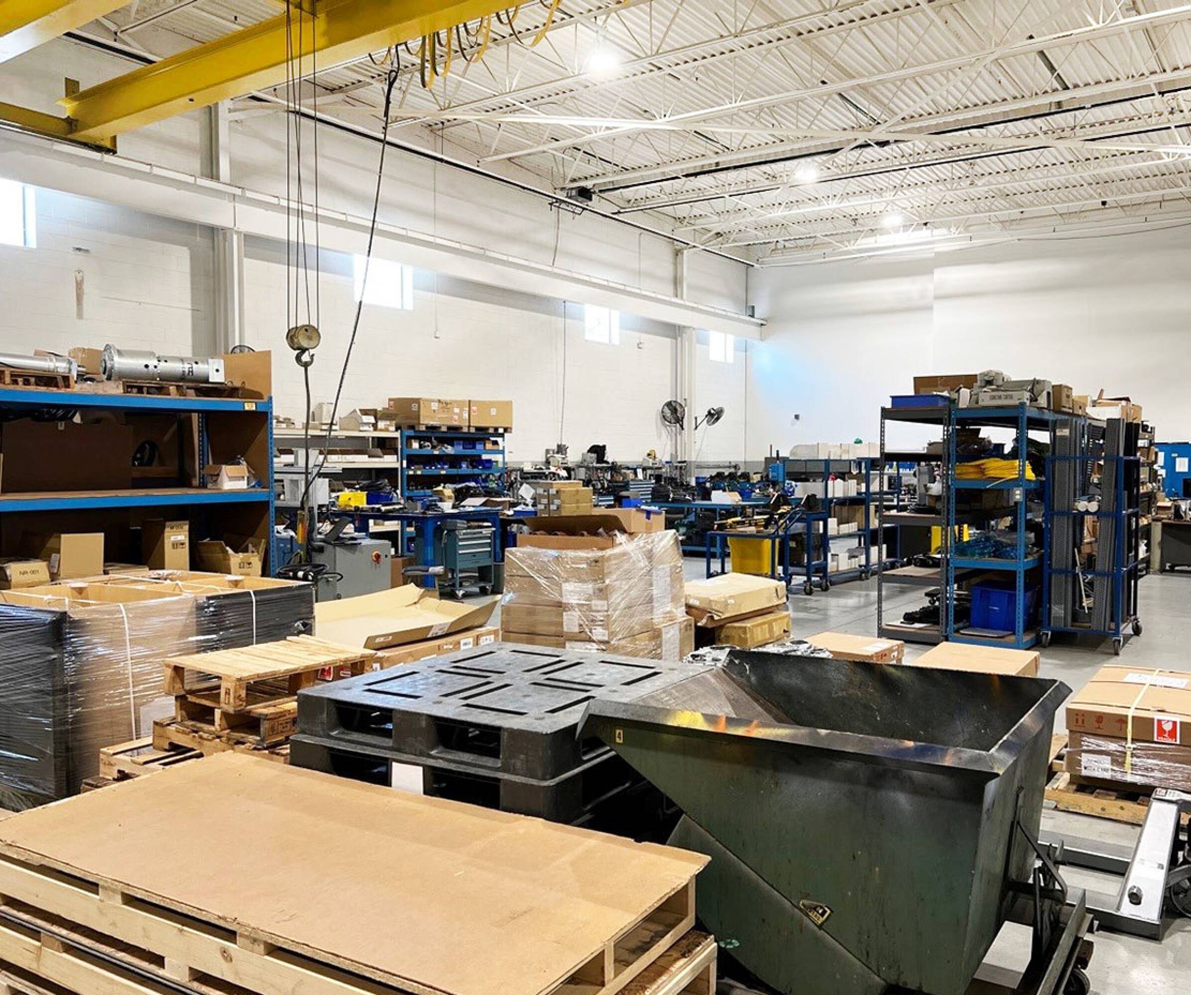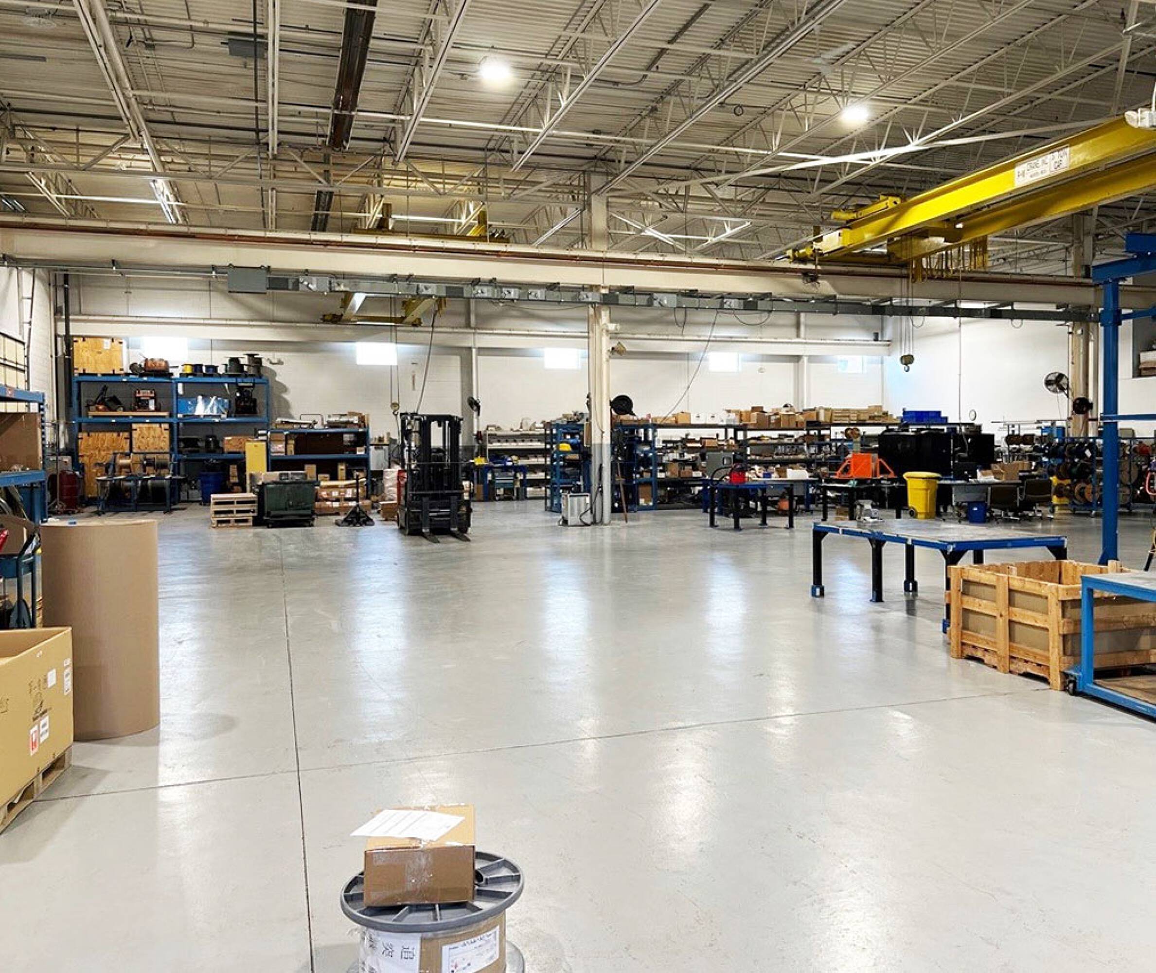 Rare industrial building with cranes and expansion potential.