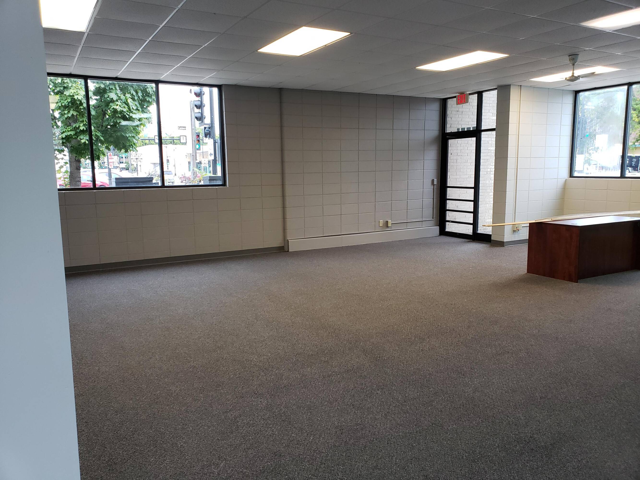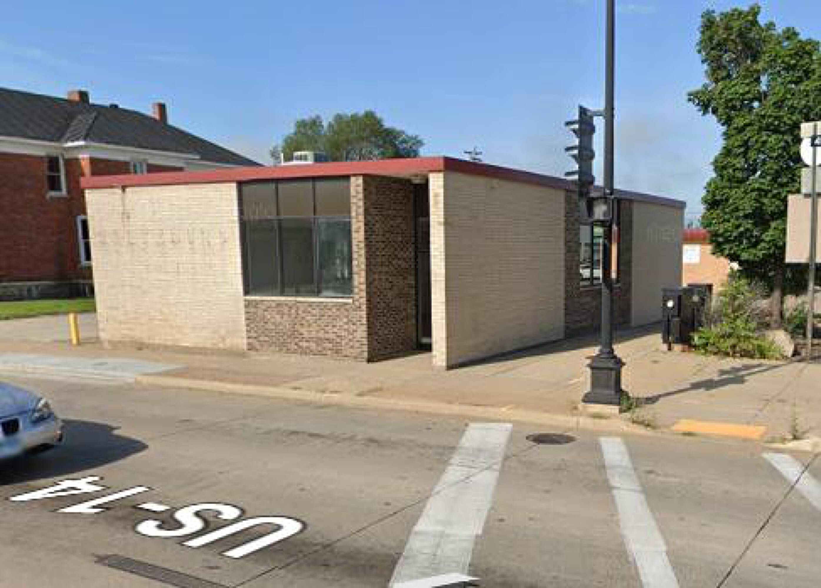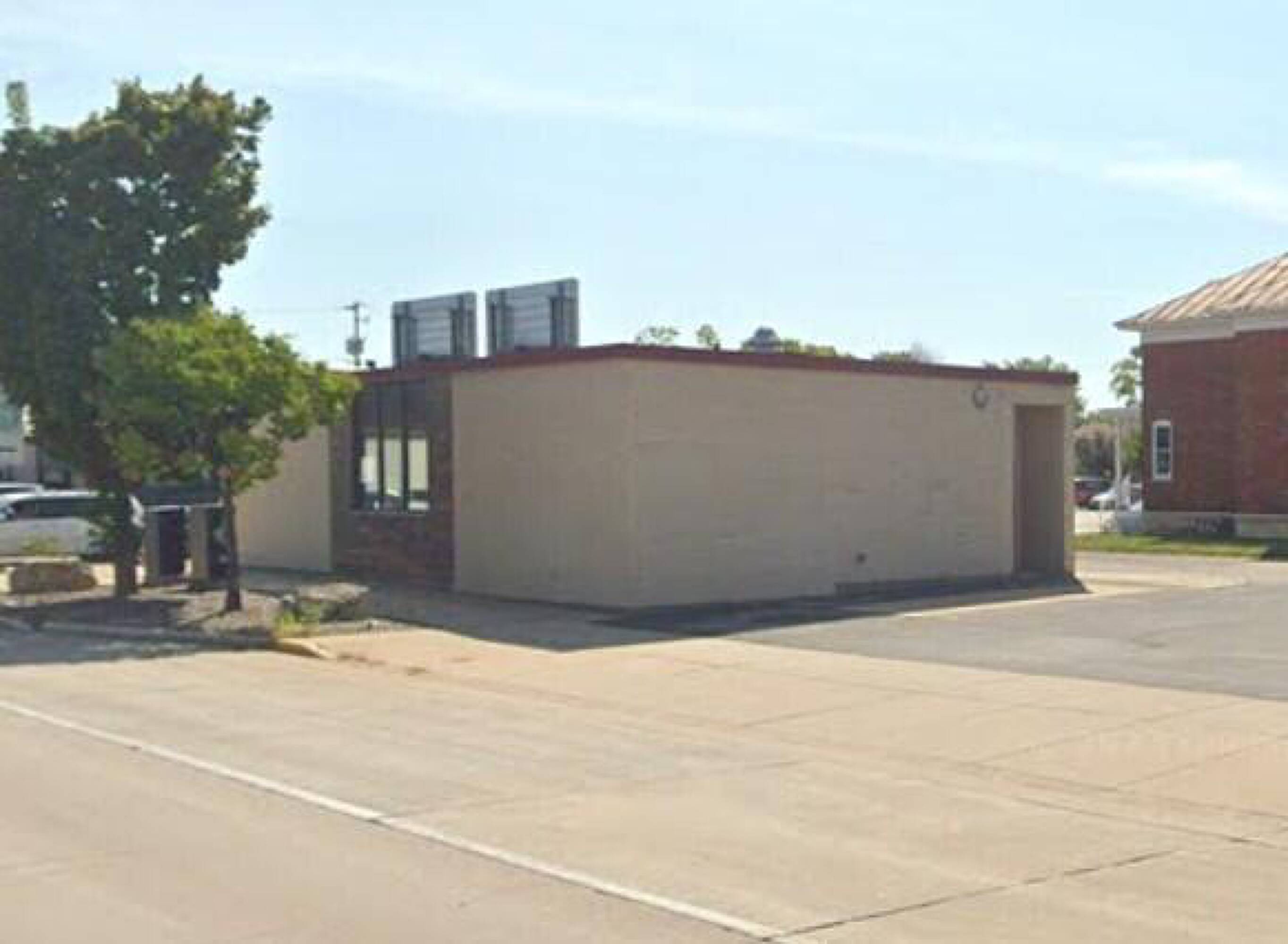 Highly visible commercial building with parking and flexible layout.