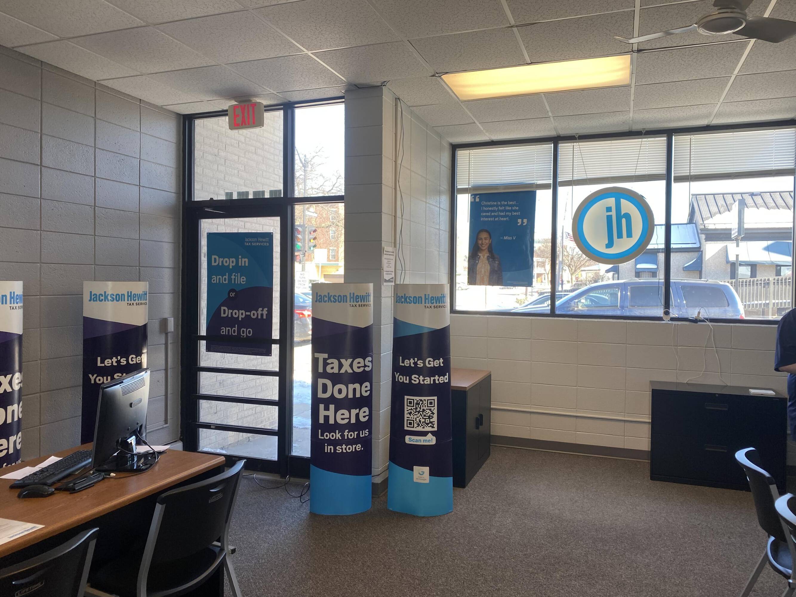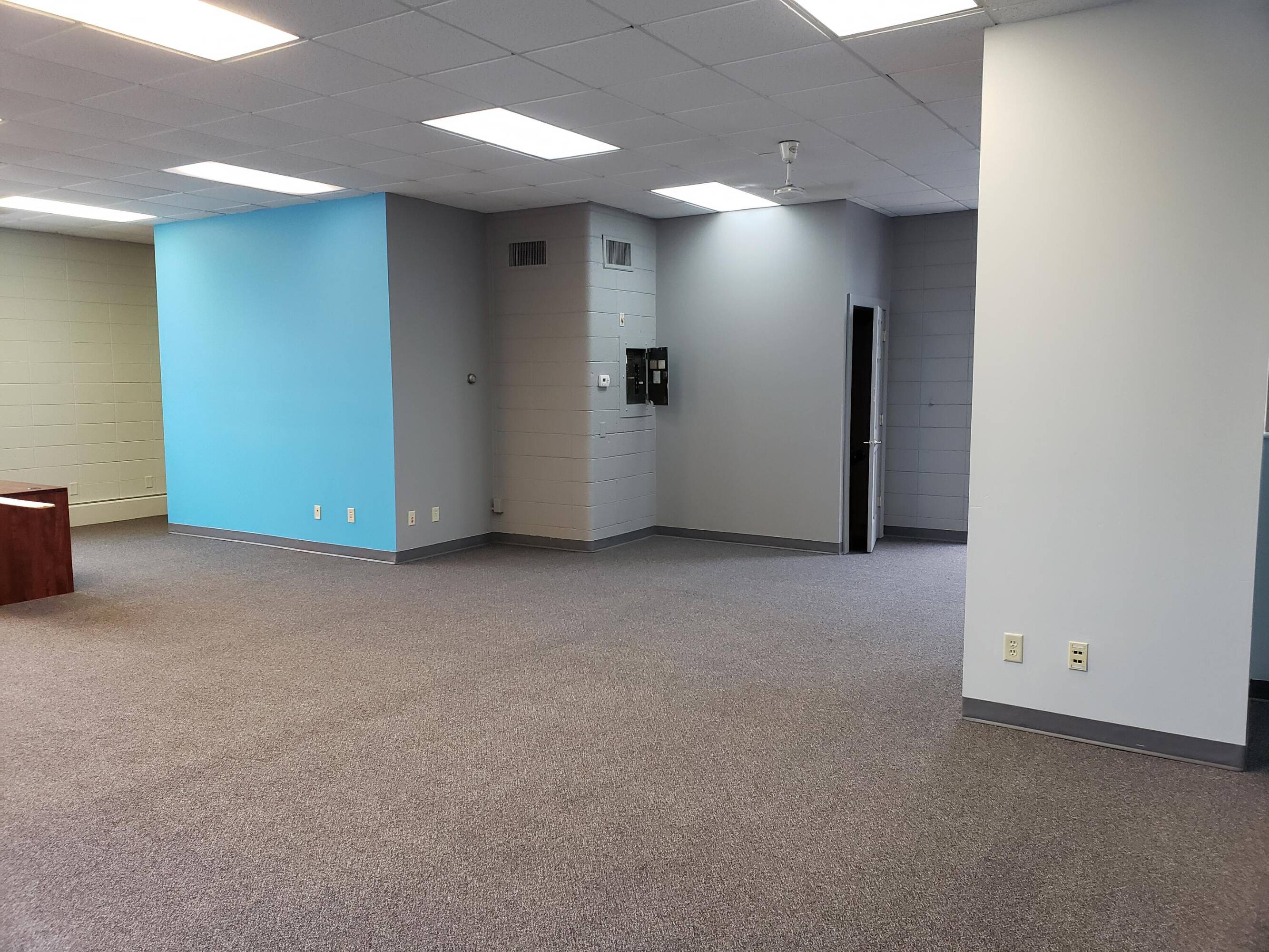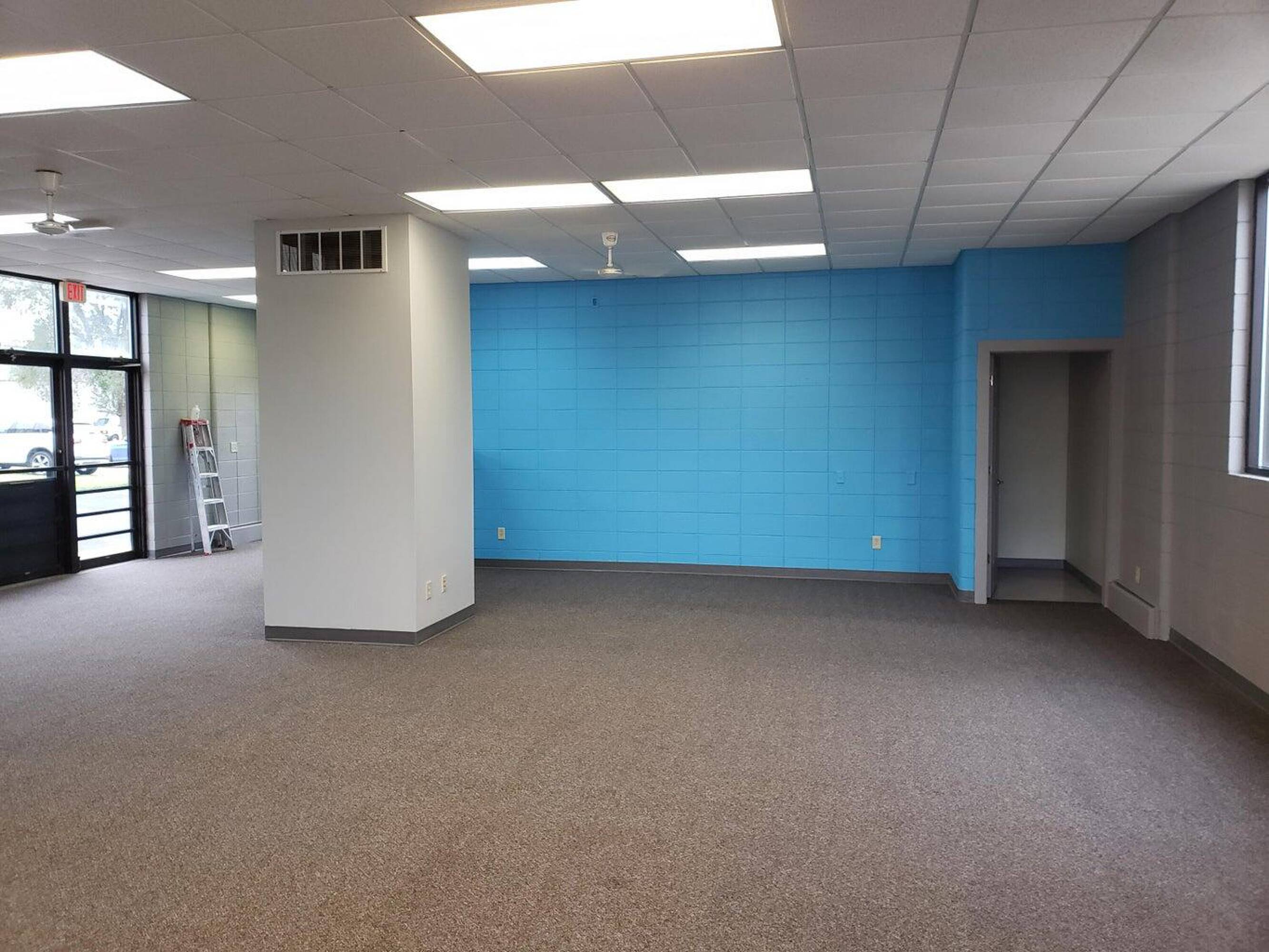 Highly visible commercial building with parking and flexible layout.