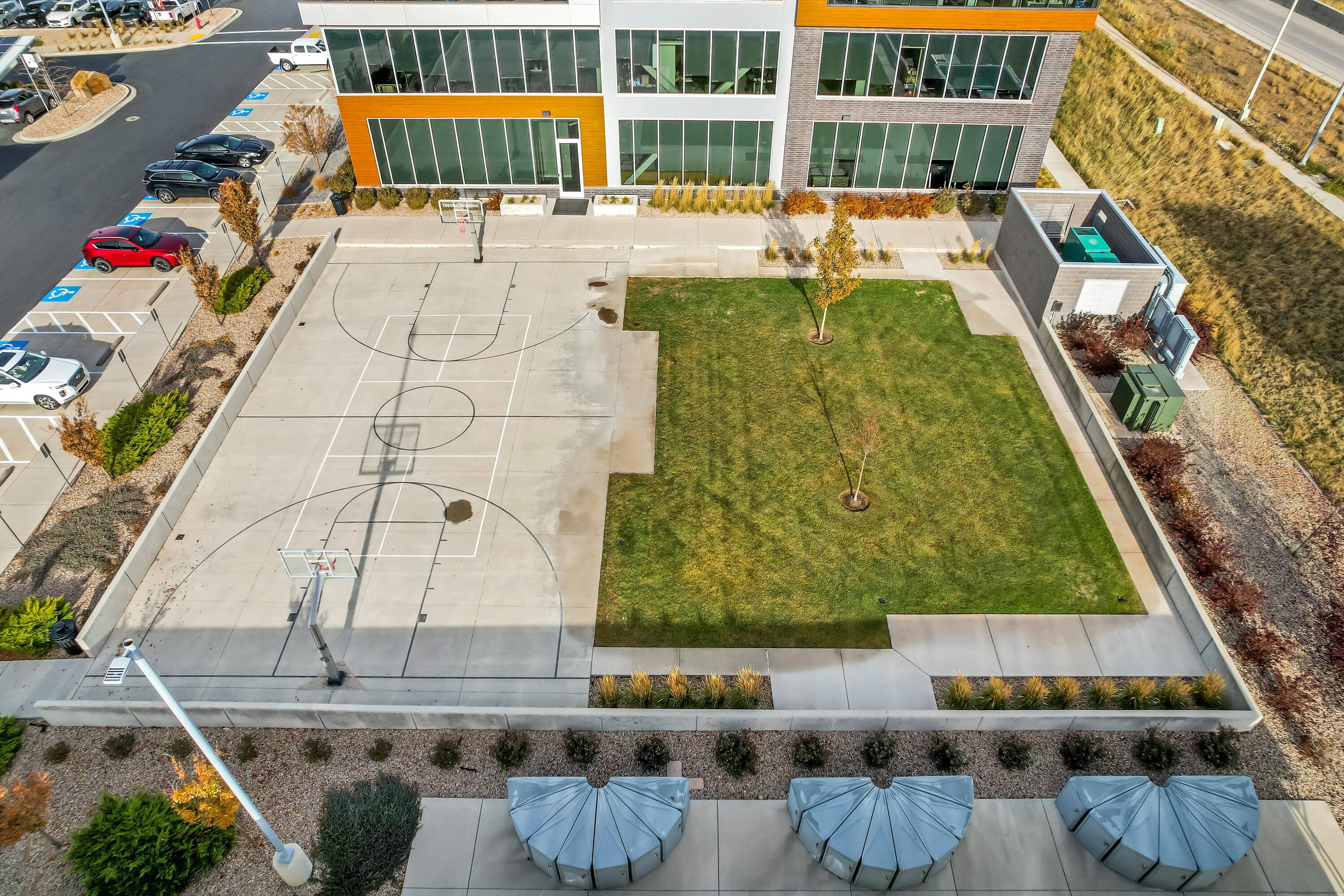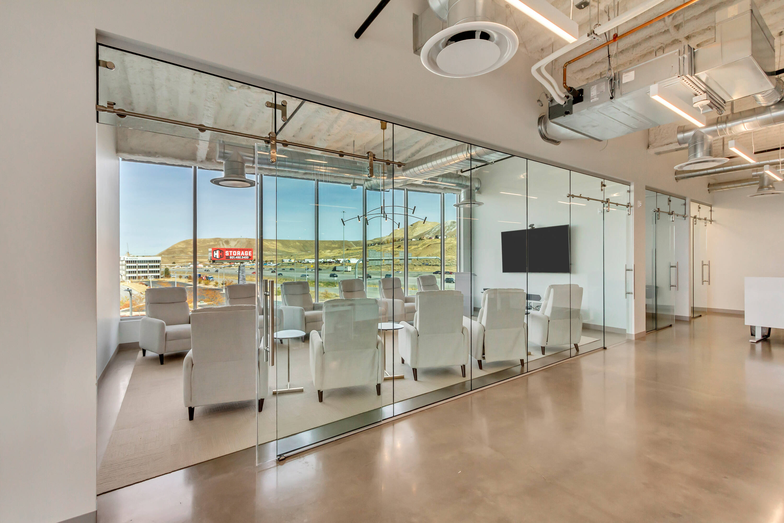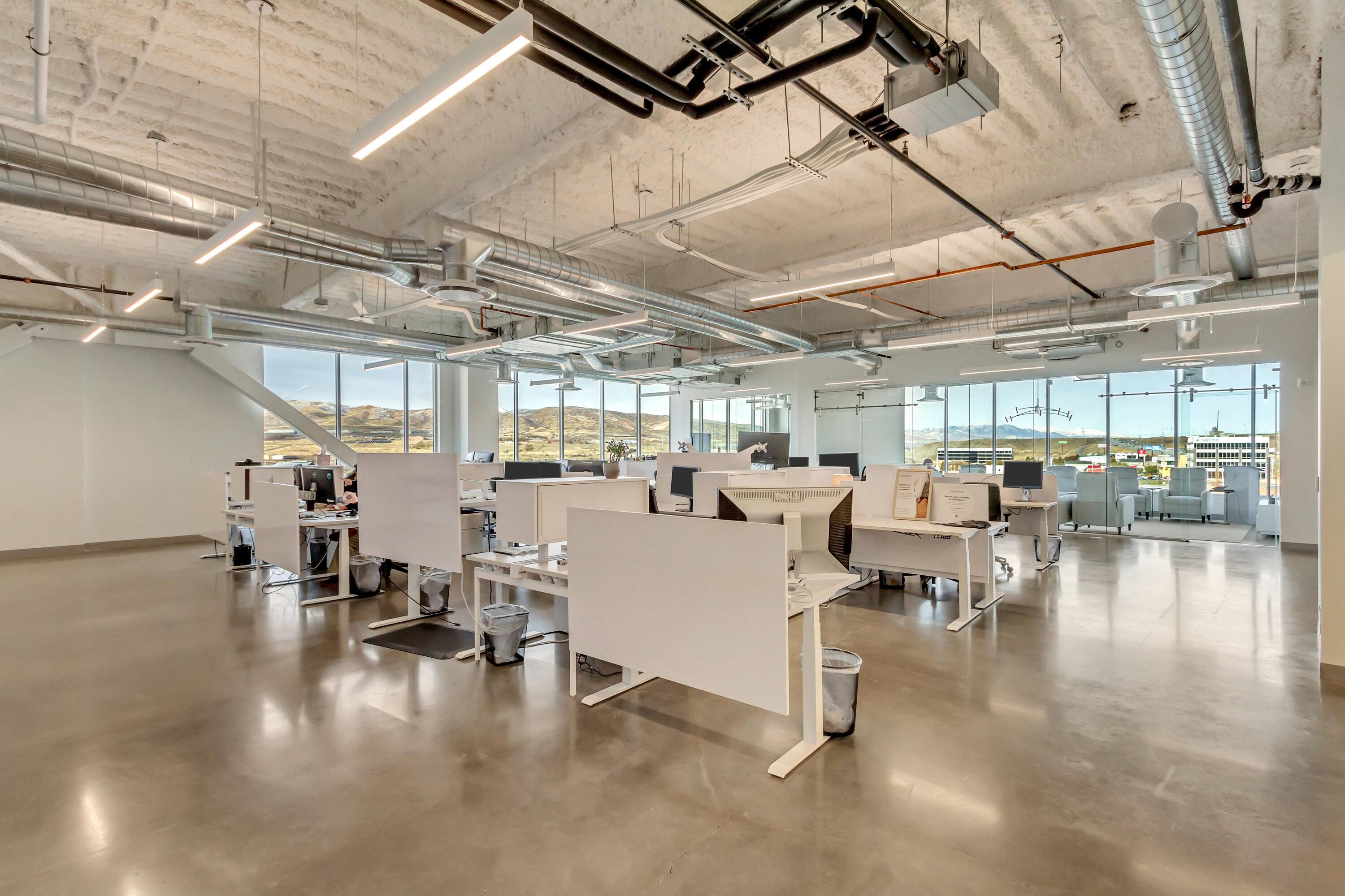 Modern office space with ample parking and natural light.