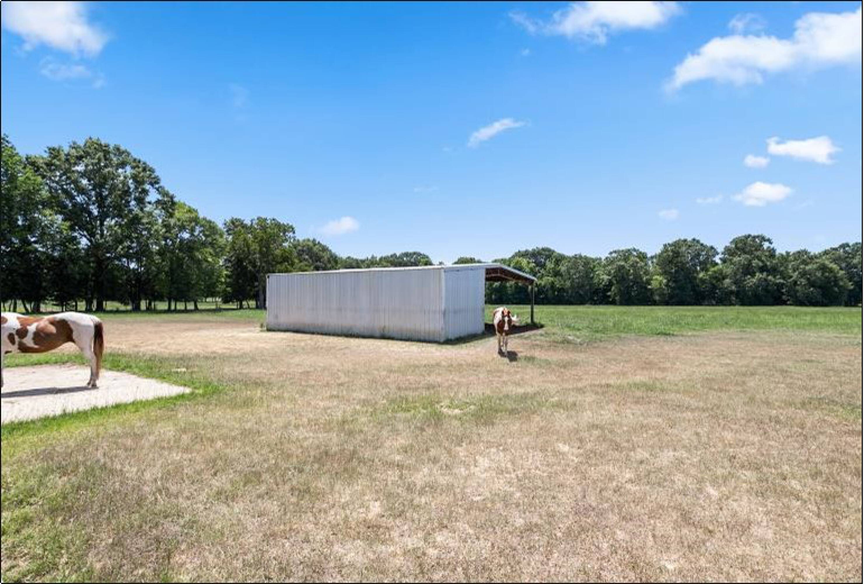 This property features: 53.55± acres of rolling pastureland ideal for equestrian pursuits or peaceful living.; Extensive horse amenities: **two run‑in barns, six fenced pastures (25± acres), and four water pads.**; **Large 80'x120' workshop with double sliding doors, walk‑through doors, and plumbing.**