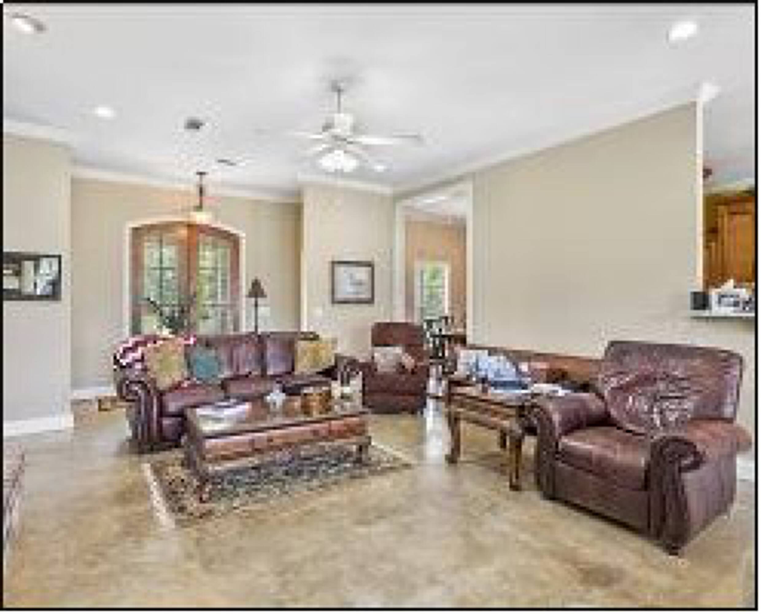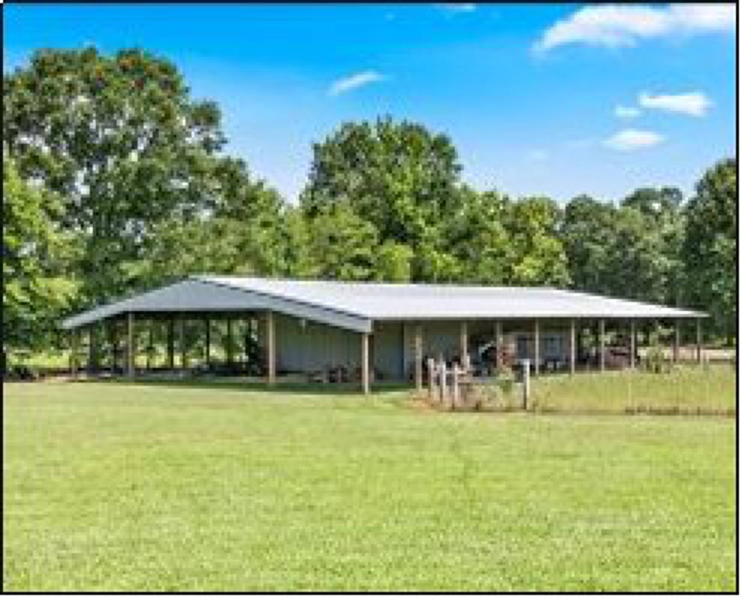 Located in Hinds County, MS, this custom-built property is situated on 53.55± acres of rolling pastureland. The property includes horse amenities such as two 36'x36' run-in barns equipped with stables, hay storage, water, and electricity. There are six fenced pasture areas covering approximately 25± acres and four water pads. A generous 80'x120' workshop features double sliding doors, walk-through doors, and plumbing for water. The house is a split-plan with three bedrooms and 2.5 bathrooms. The kitchen includes Corian countertops, stainless steel appliances, double ovens, a cooktop, and a pantry. The living room has a gas fireplace. The primary bedroom and bathroom feature double vanities, a corner tub, a walk-in shower, and a walk-in closet. There is a large bonus room and an office with a built-in desk and storage. The laundry room has a sink, cabinets, and a large storage closet. Upstairs, the bonus room includes a partially floored walk-in attic for storage. The property features three covered porches.