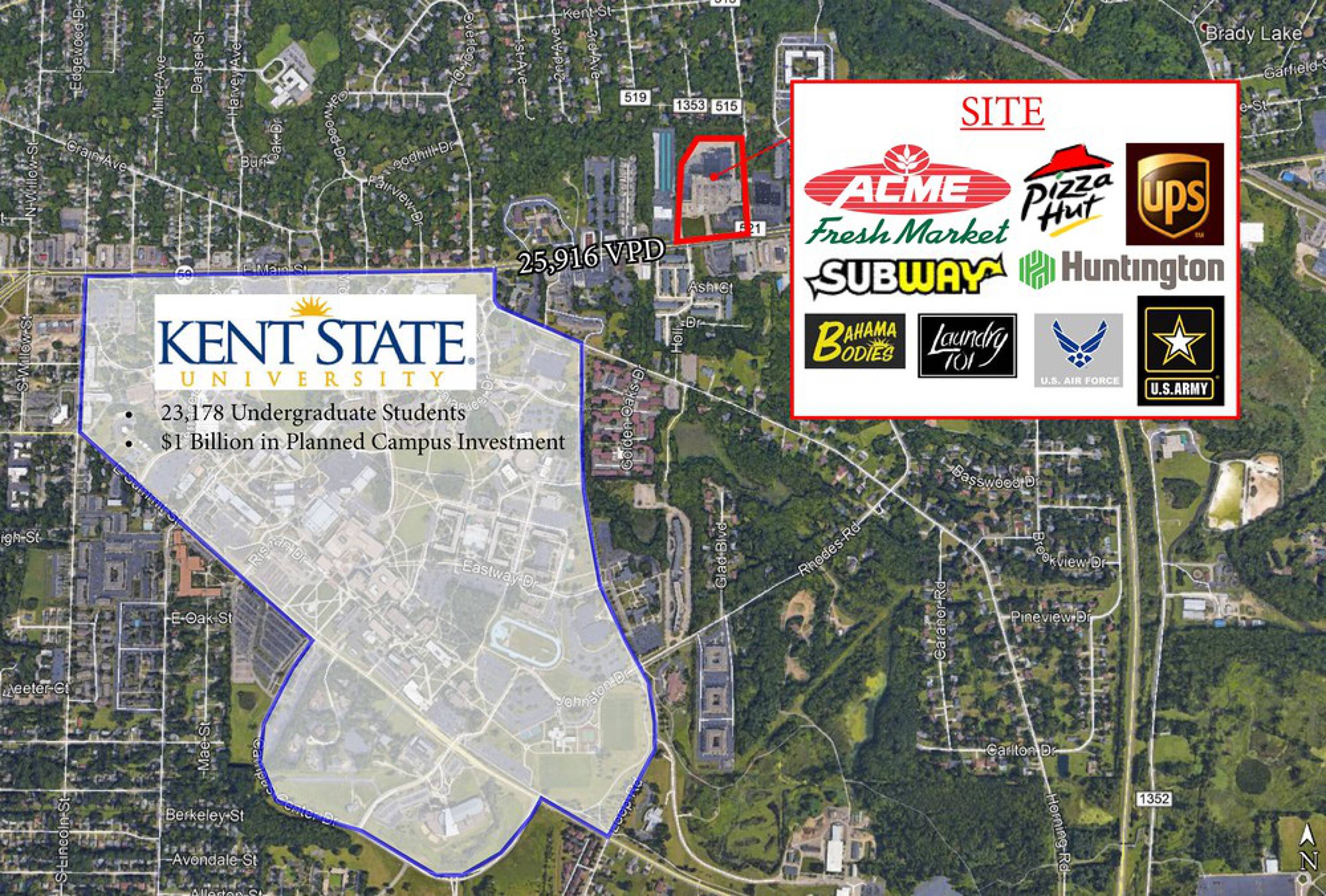 Grocery-anchored shopping center near Kent State University.