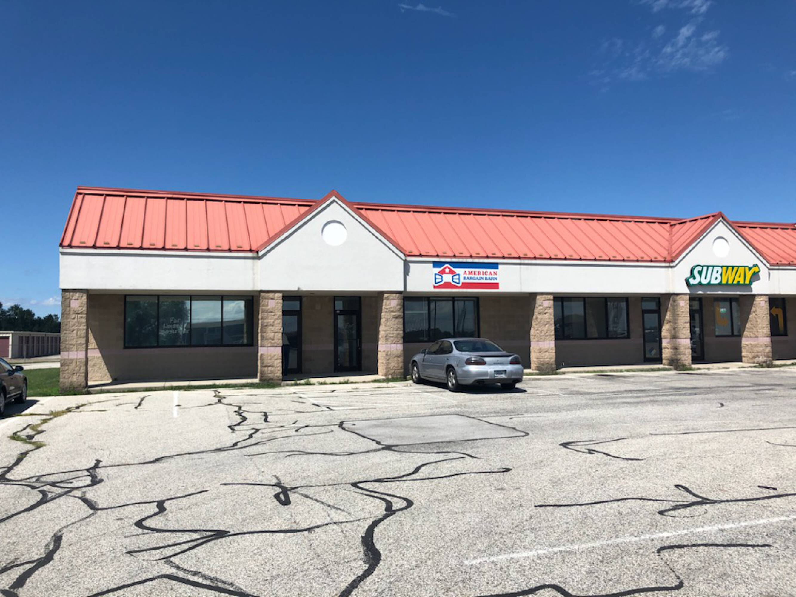 Shopping center available for rent with plenty of parking.