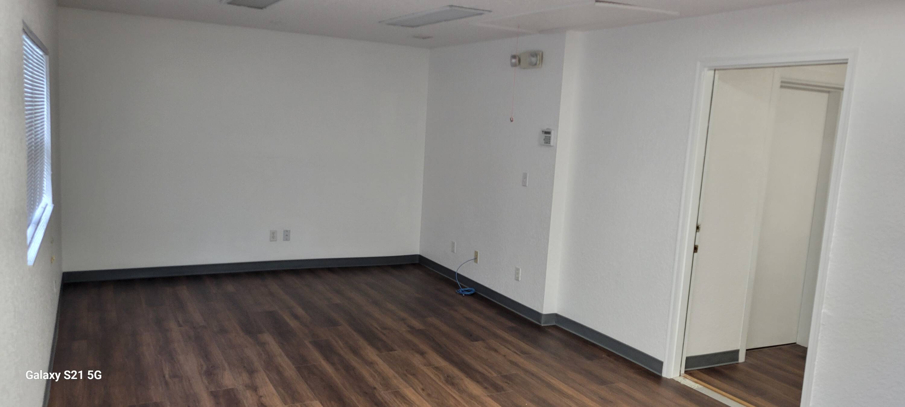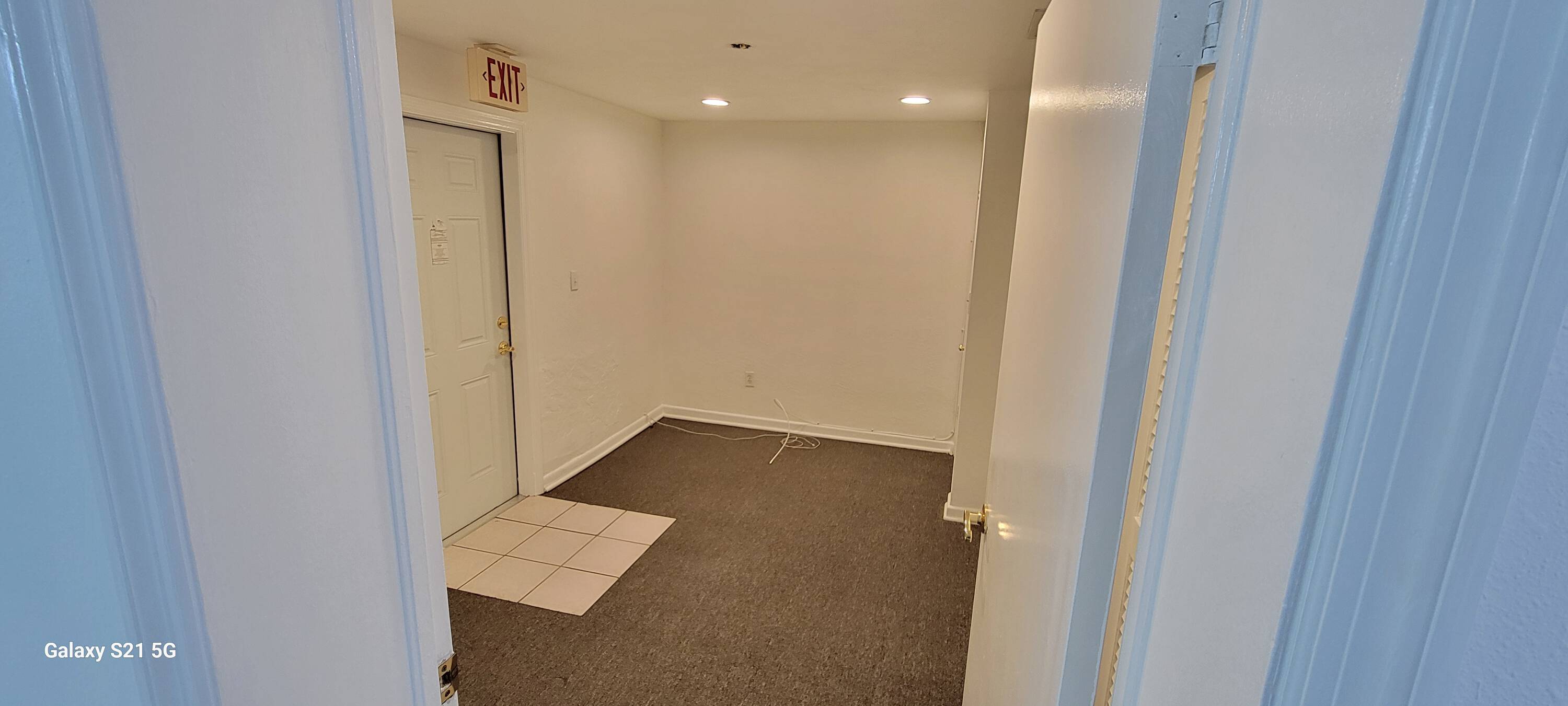 Office spaces for lease with shared common areas and restrooms.