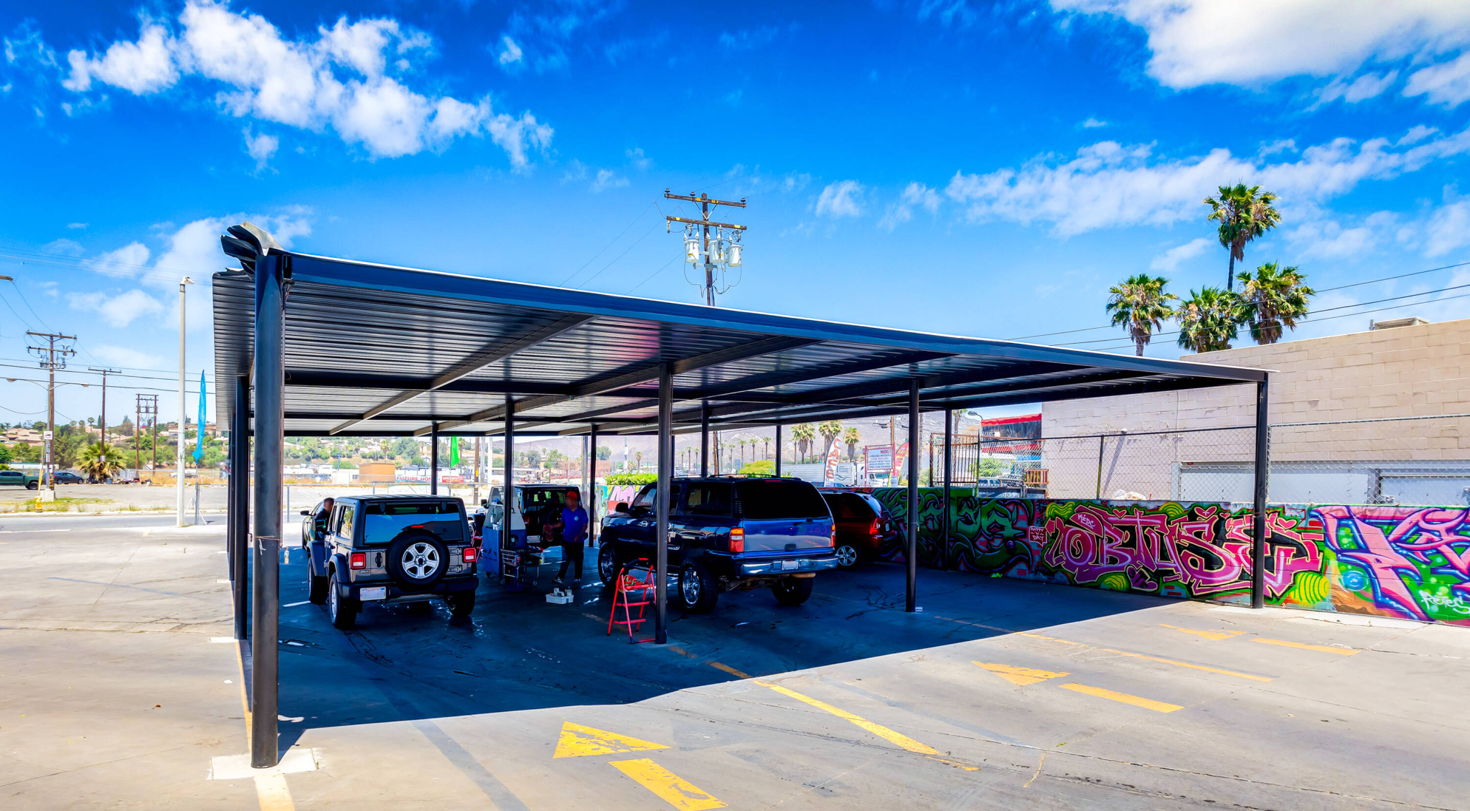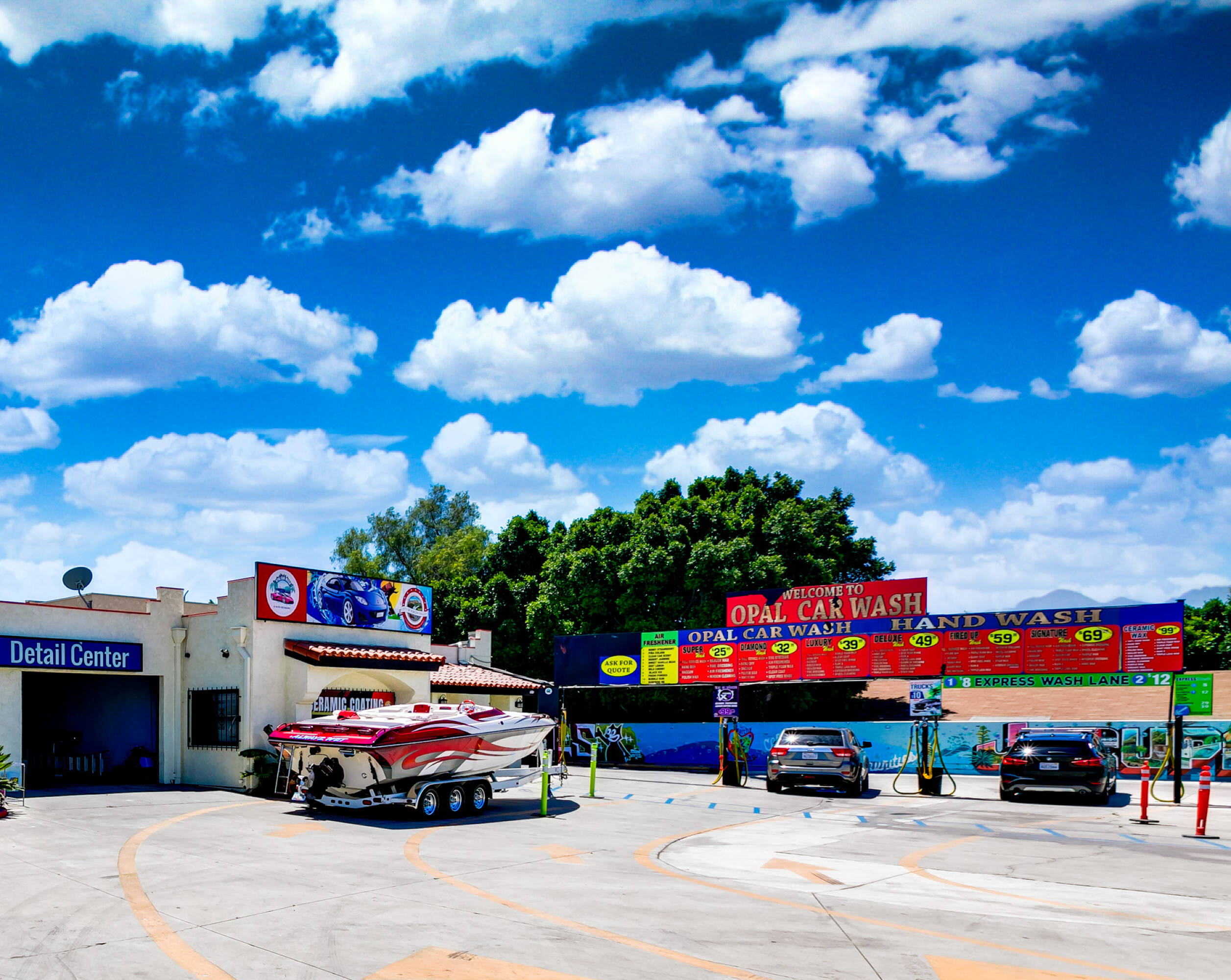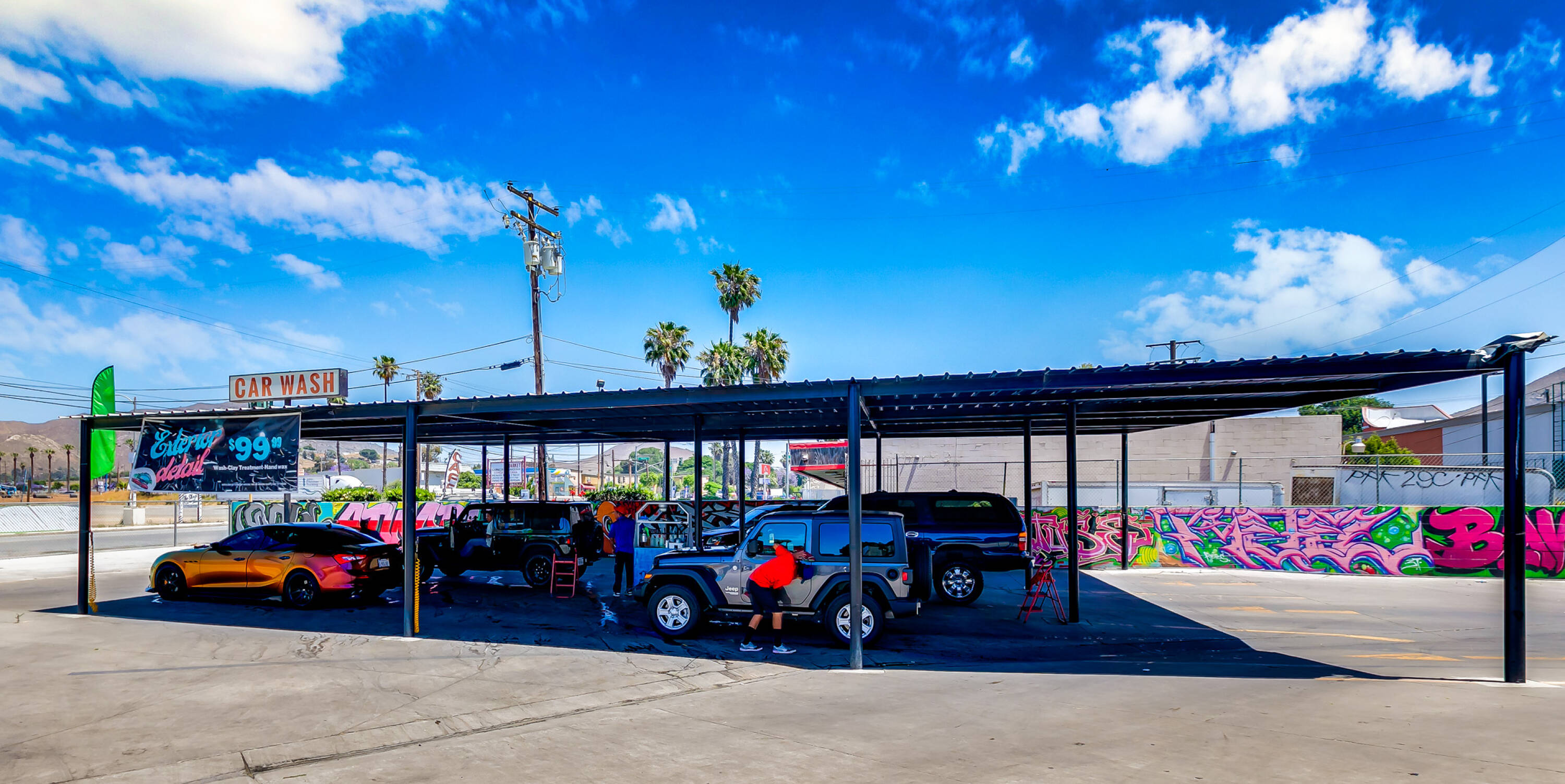 Full-service car wash with automated equipment in Jurupa Valley.