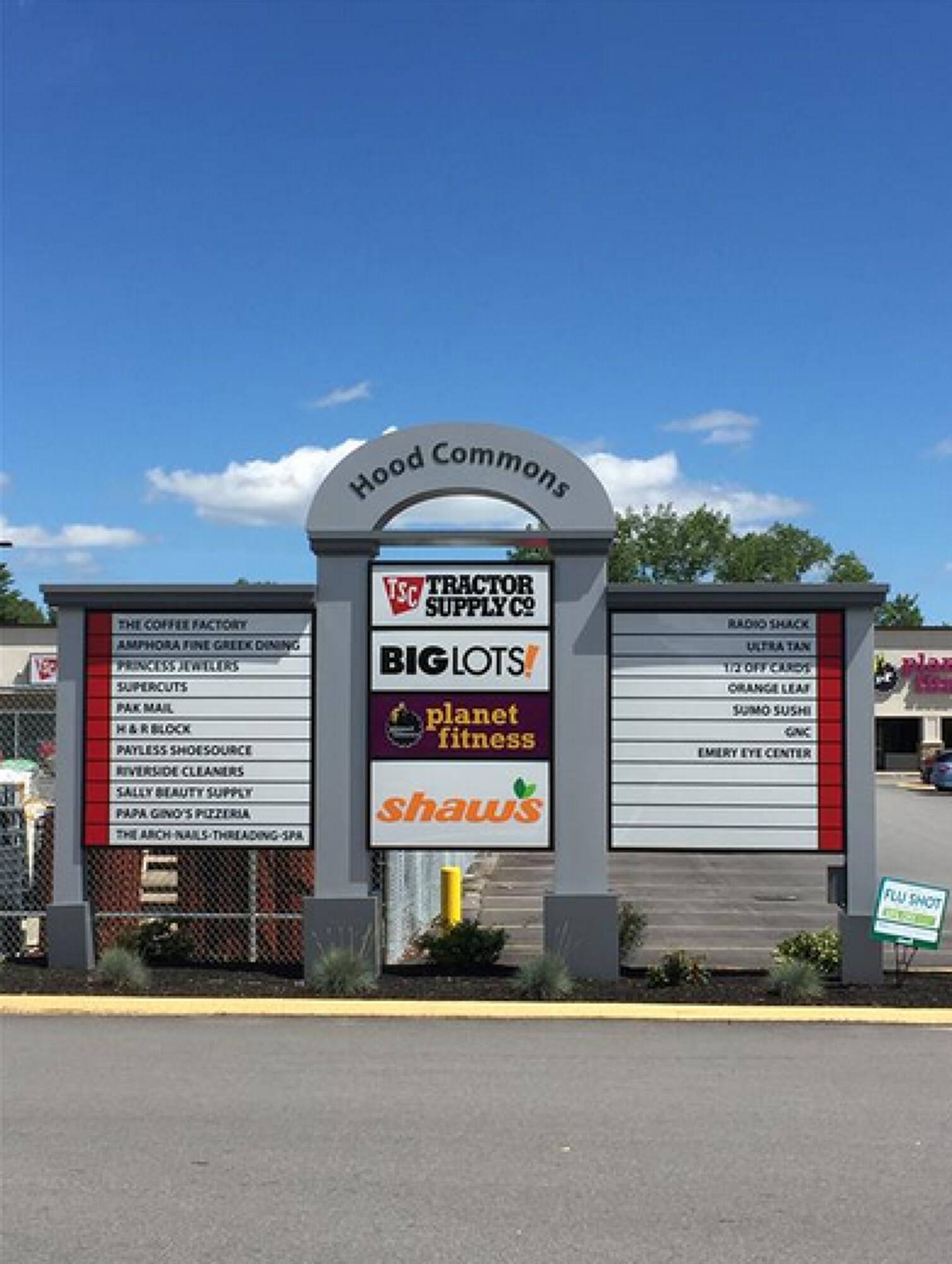 Hood Commons is a shopping center located in Derry, NH. The center is anchored by Shaw’s, Planet Fitness, and Tractor Supply. Situated on Route 28, the location benefits from high traffic volume, with over 22,000 vehicles passing the site daily. The property has visibility from Route 28.