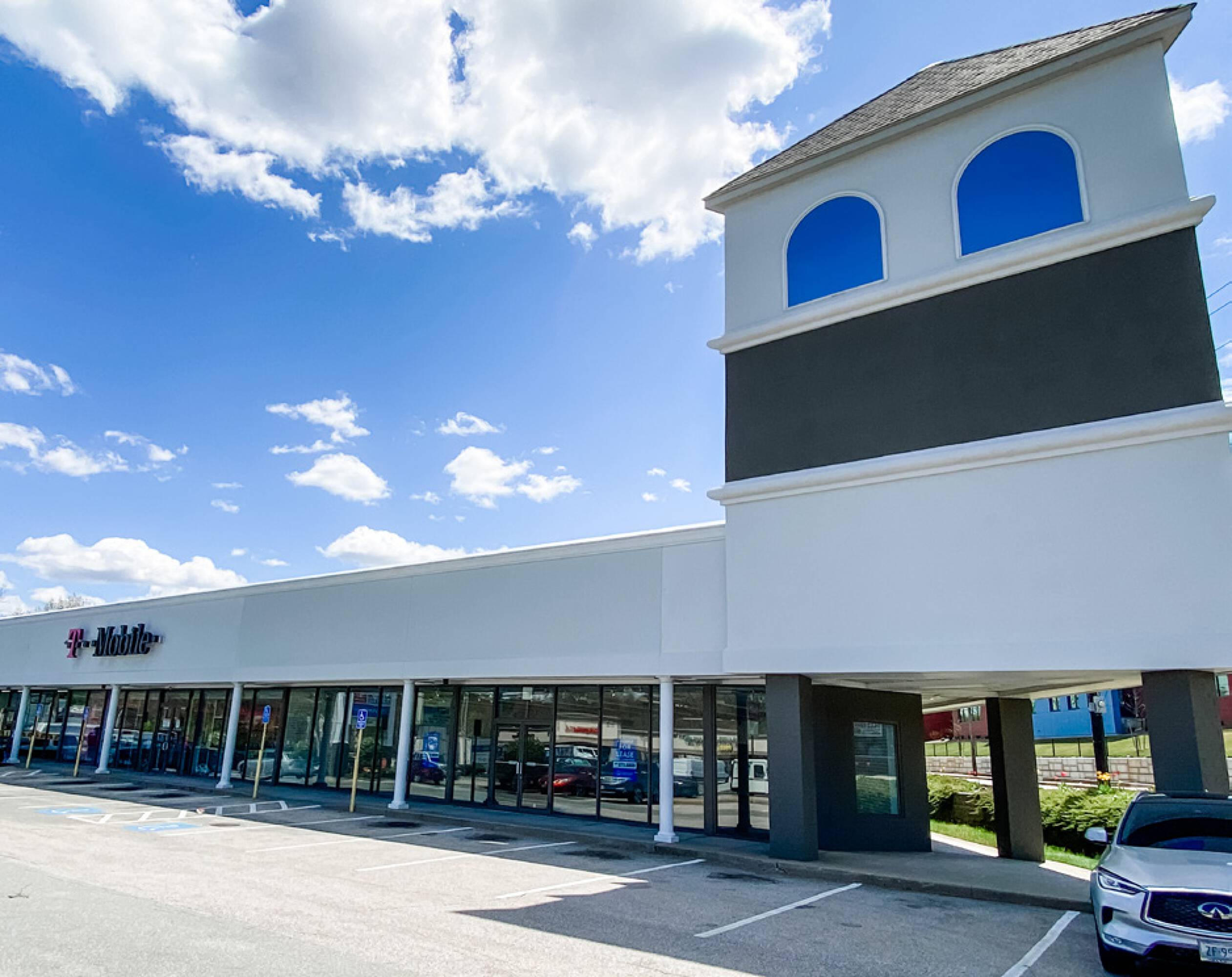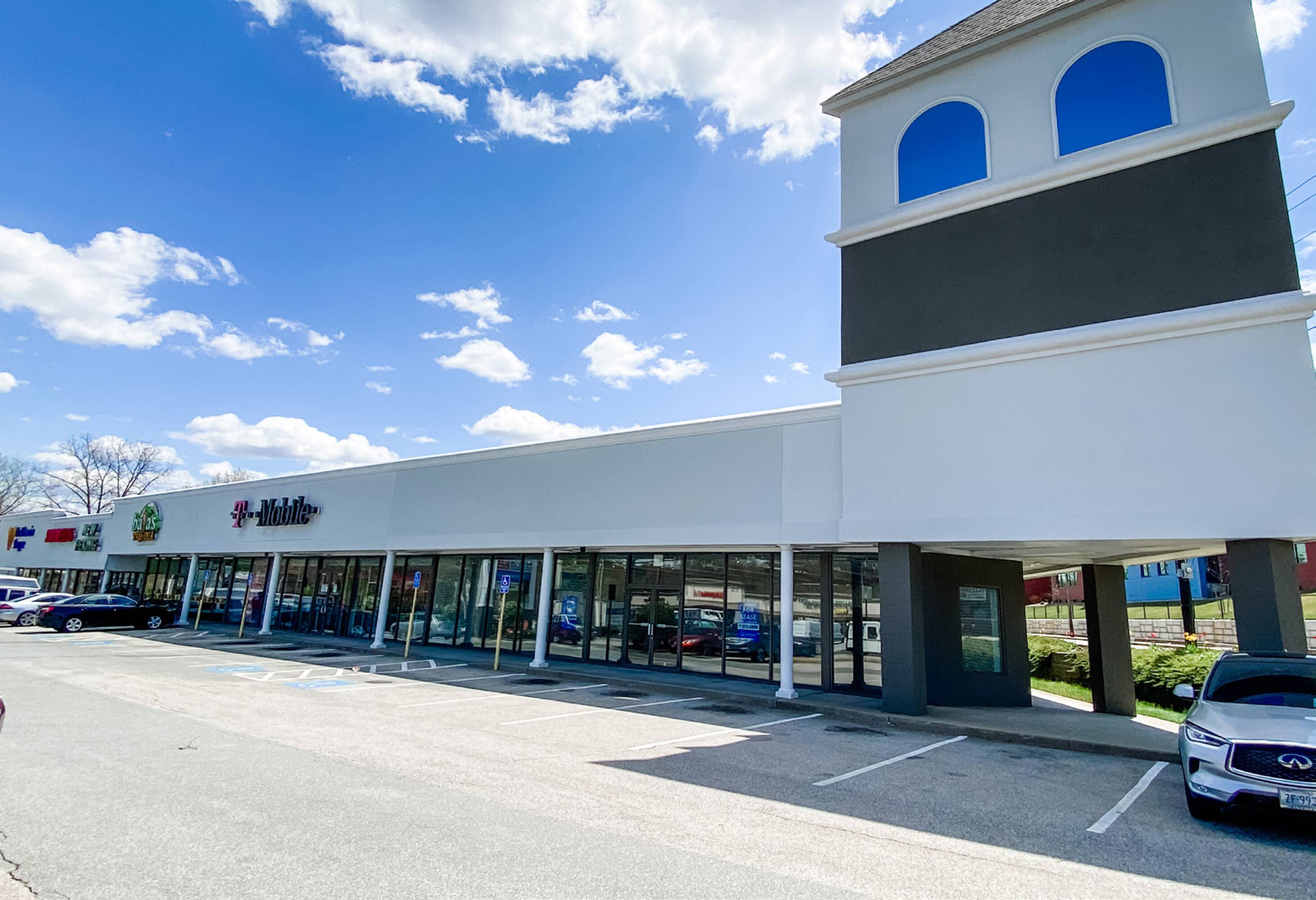 Shopping center - Highly visible shopping center at a heavily traveled intersection.