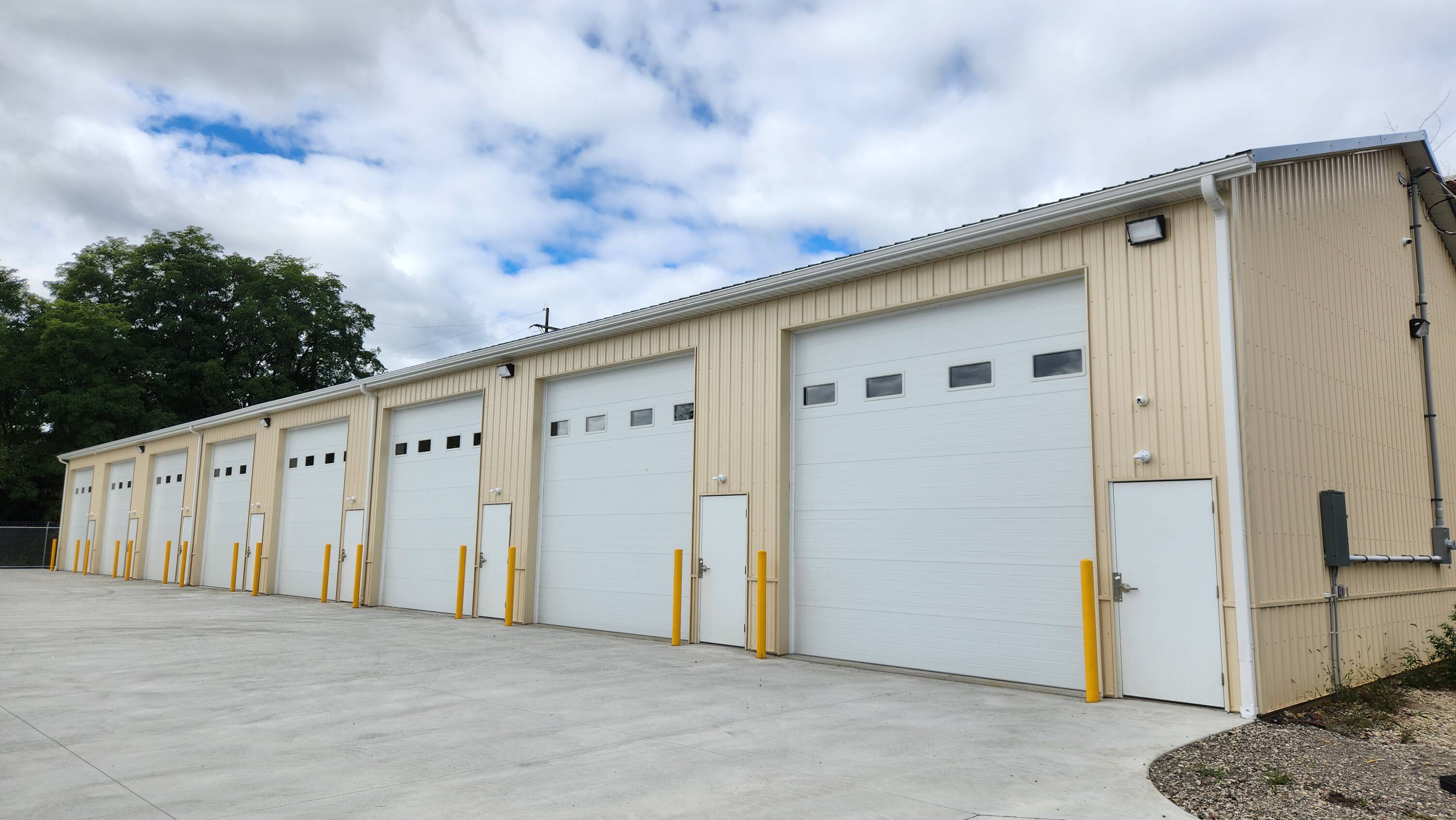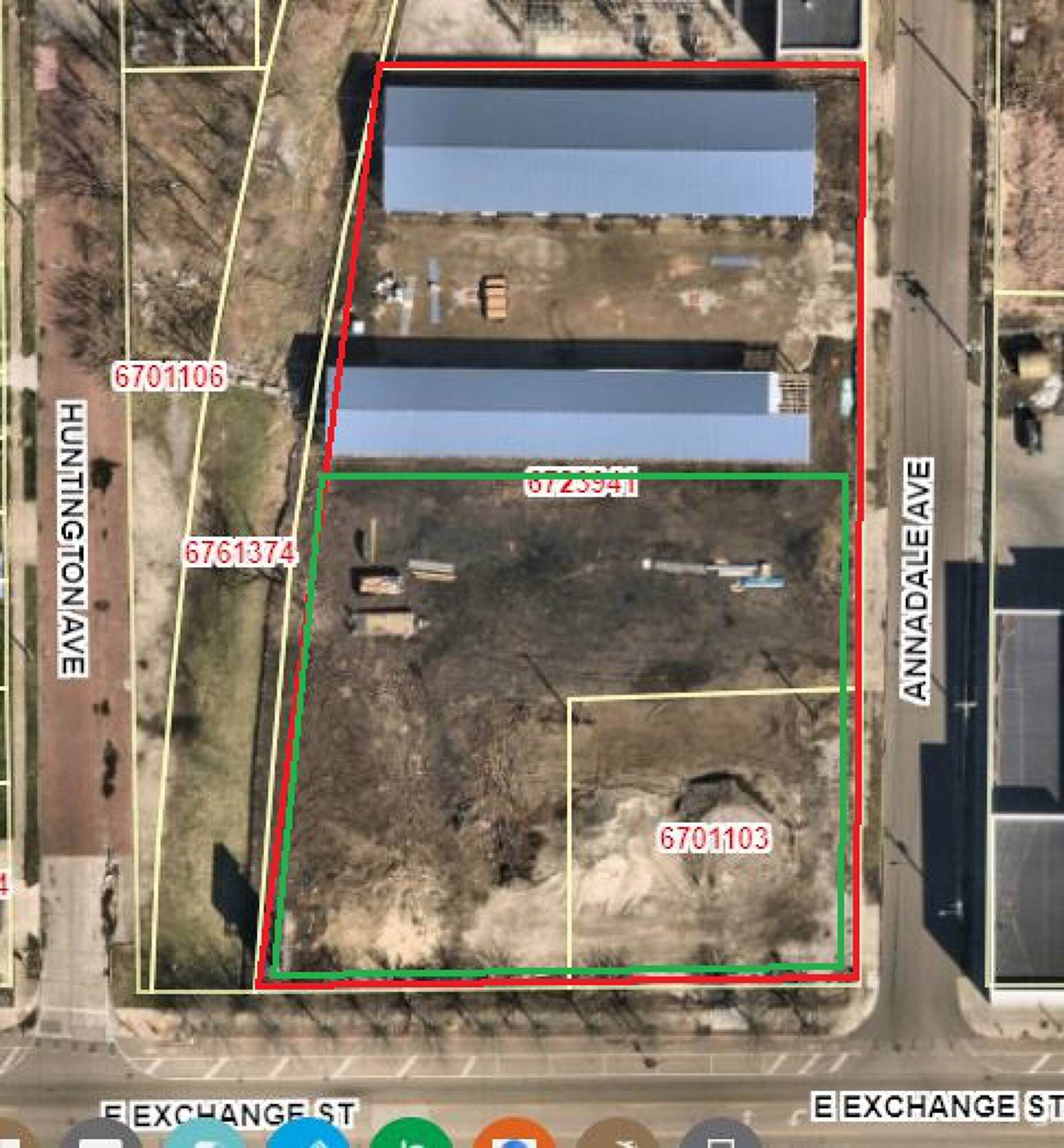 Newly constructed flex units are available for lease. The property is fully fenced with a coded gate and security cameras. Units are available in two sizes: 600 square feet (20'x30') and 880 square feet (20'x44'). There are eight units of each size. Units can be combined or leased individually. Each unit features 18' clear ceilings and 14'x12' overhead door access. An adjacent 1-acre fenced-in outside storage area is also available. The property is located at the corner of E Exchange St and Annadale Ave, offering convenient highway access. It is suitable for contractor use, vehicle storage, and other purposes.