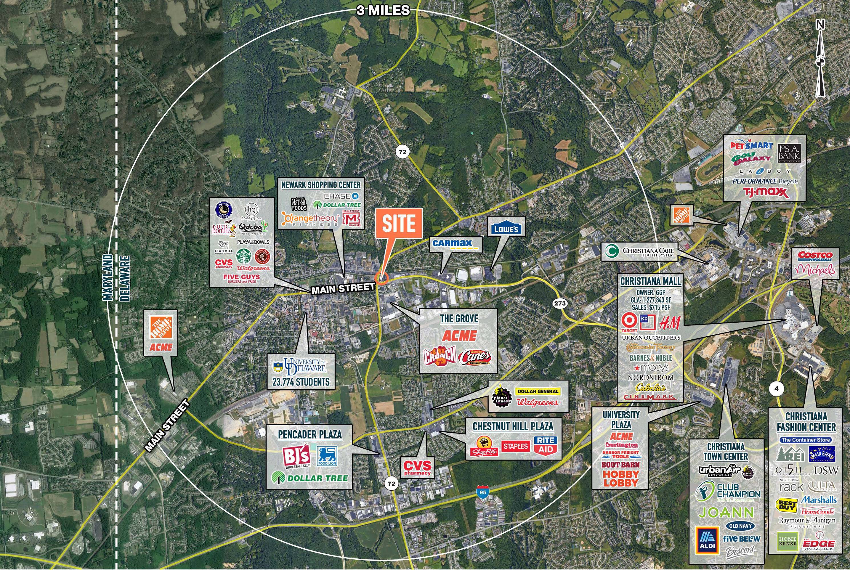Retail property available for lease in Newark, Delaware.
