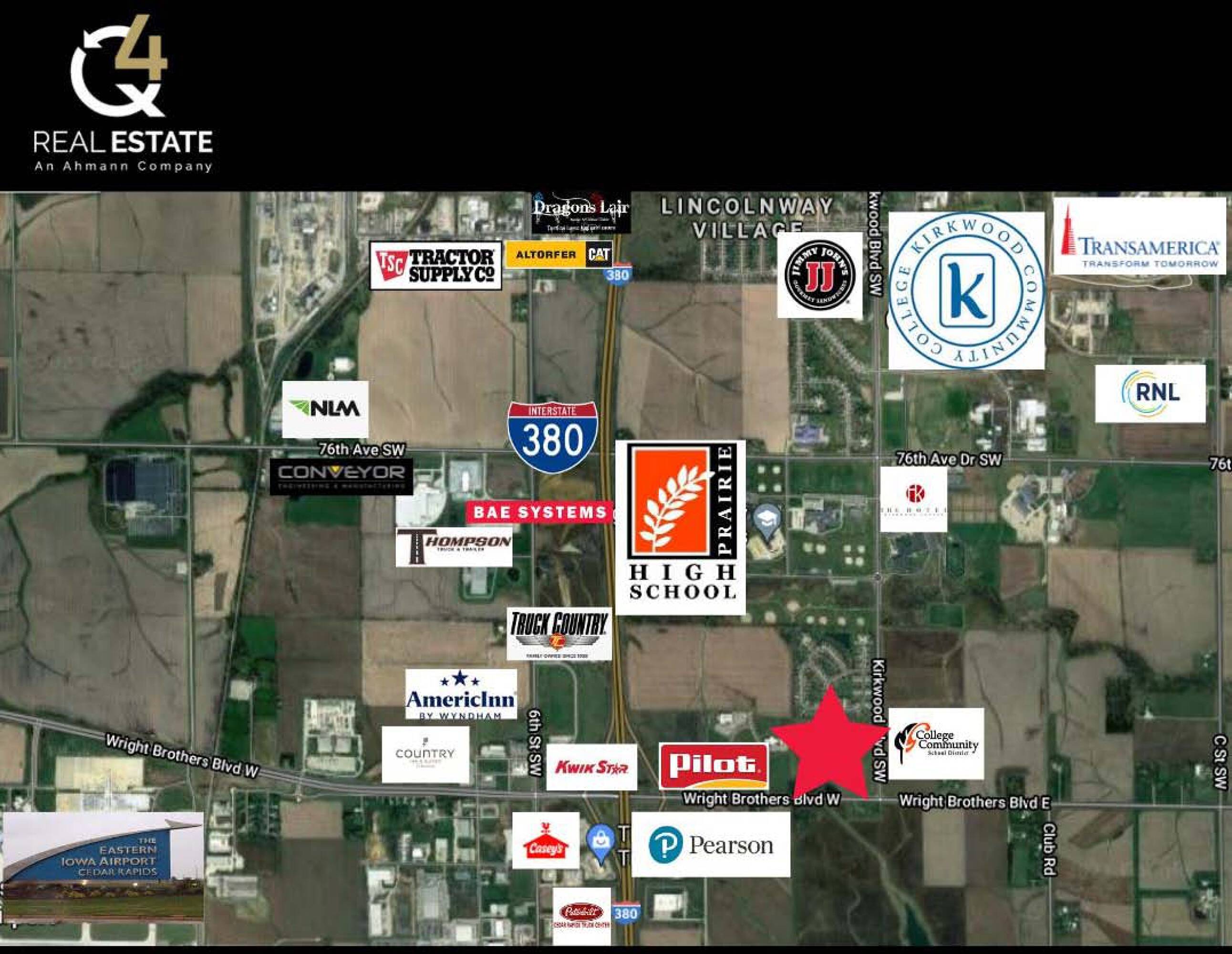 This property features: Excellent visibility at the corner of Wright Brothers Boulevard SW and Kirkwood Boulevard SW.; Located in the College Community and Kirkwood Community College educational district.; Easy access to I‑380 and Highway 30.