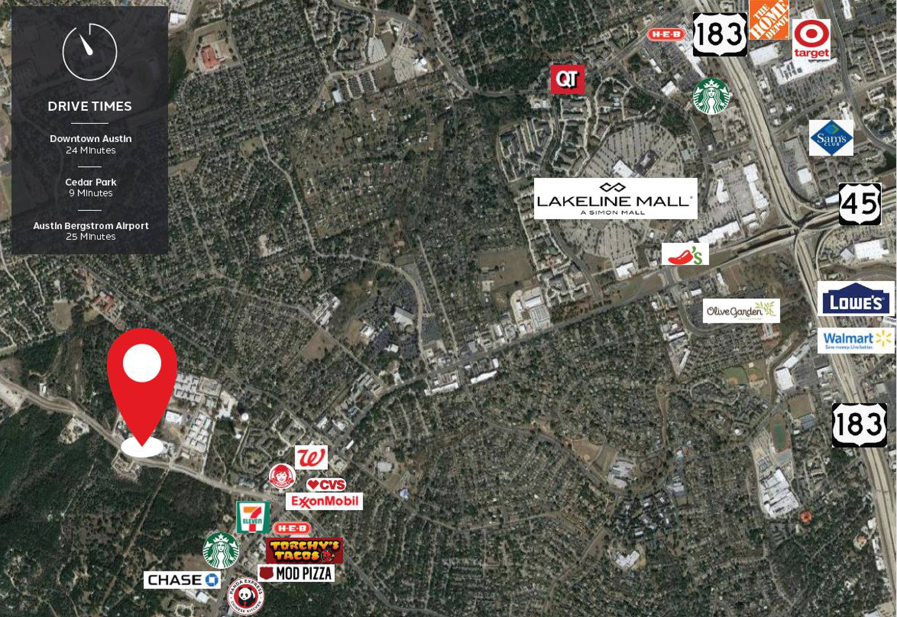 This property features: Highly visible location on the hard corner of Anderson Mill Rd and Windy Terrace.; Flexibility to be demised into two 6,040 SF units.; Ample parking with 56 spaces.