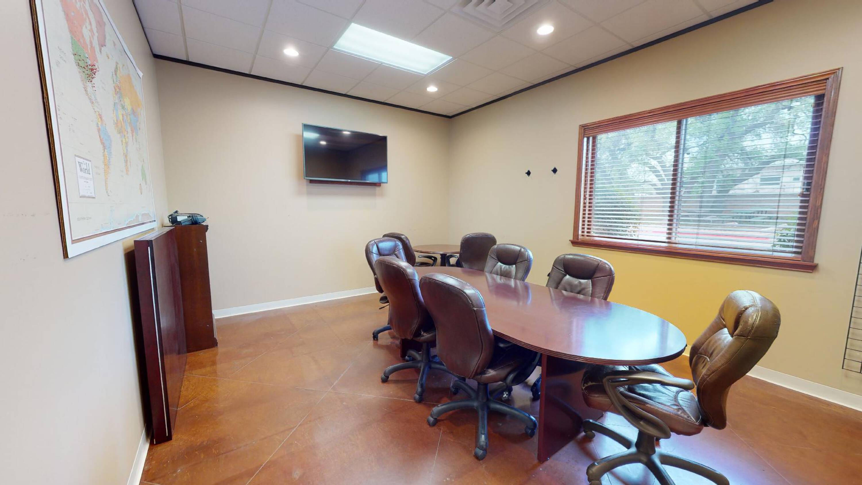 The property at 2010 Windy Terrace is a 12,080 square foot flex office/warehouse building. The building includes 8,080 square feet of office space and 4,000 square feet of warehouse space. The building can be divided into two 6,040 square foot units, each with approximately 4,040 square feet of office space and 2,000 square feet of warehouse space. The property is situated on 1.5 acres. The building features 10 private offices and 5 bathrooms. The property is located on the corner of Anderson Mill Road and Windy Terrace, offering high visibility and accessibility. The warehouse area has a 16-foot clear height, while the office area has a 10-foot ceiling height. There are two 11-foot roll-up doors, one dock-high loading dock, and one grade-level loading dock. The property includes 56 parking spaces, providing a parking ratio of 4.64 spaces per 1,000 square feet.
