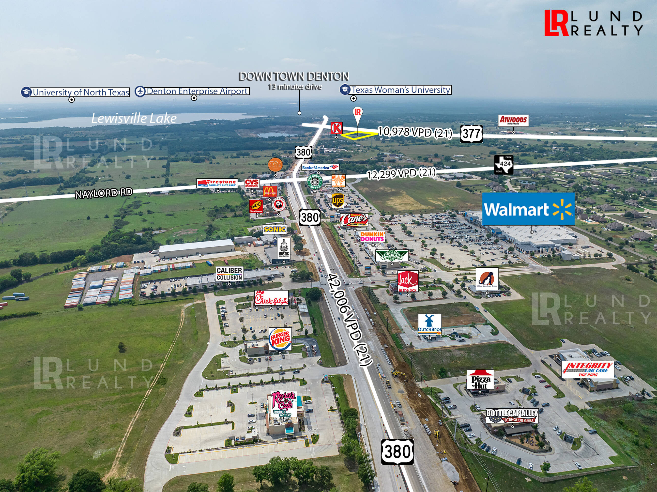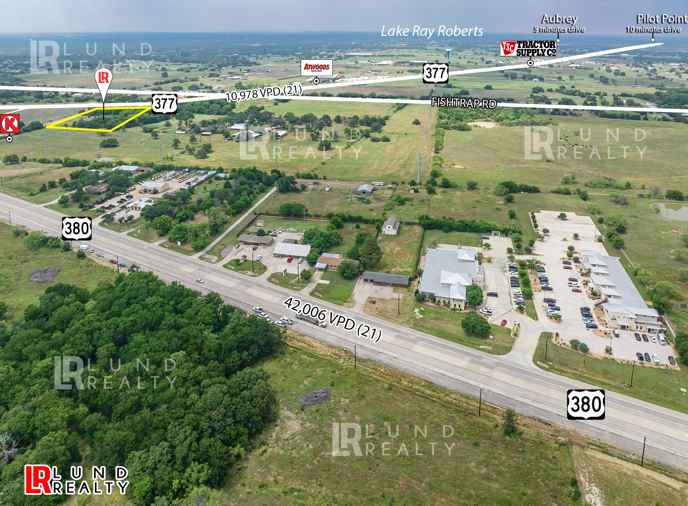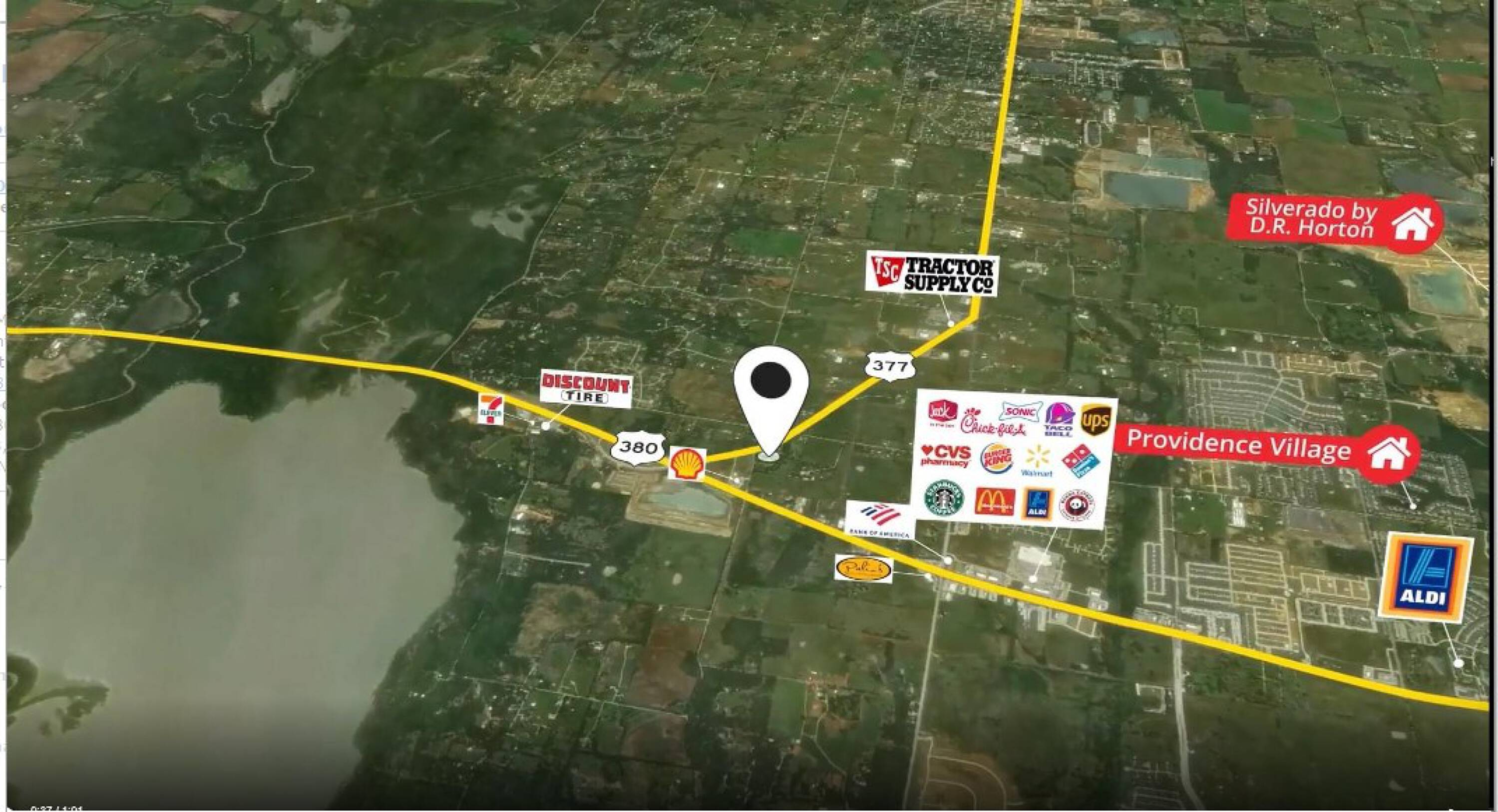 This property features: Prime retail and multi‑use hard corner lot in a high‑growth area of North DFW.; Located at the intersection of Highway 377 and Highway 380, both future 6‑lane roads.; City proposed zoning is retail.