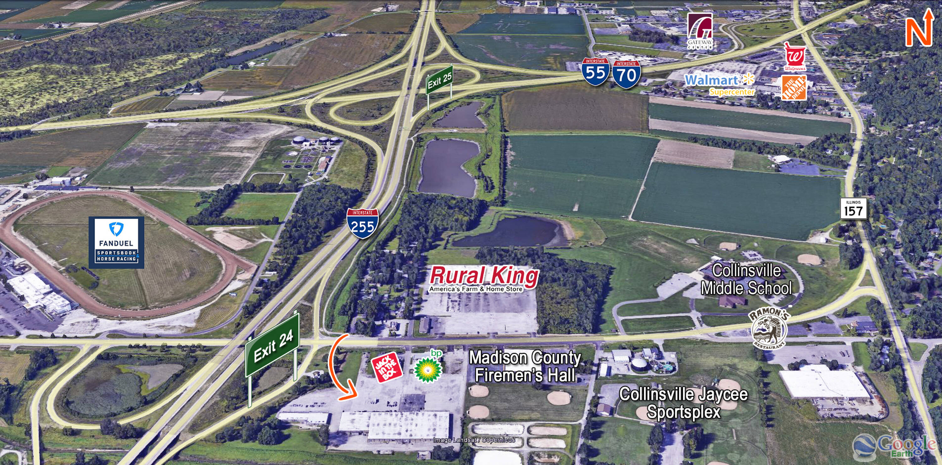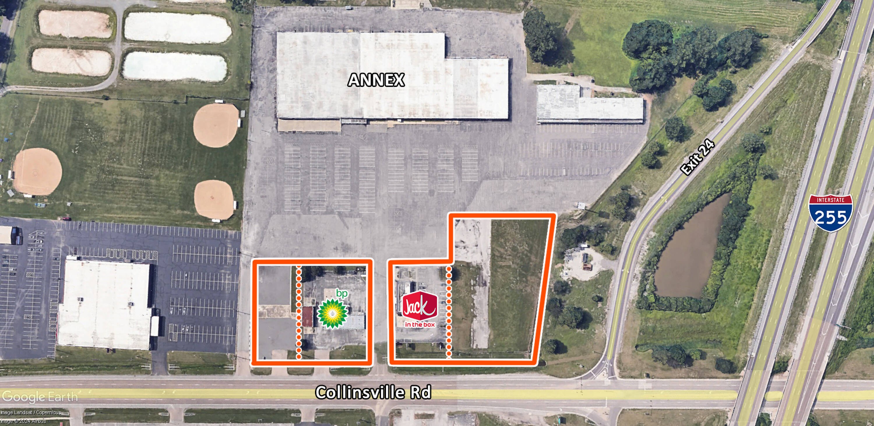Land for sale or lease near I-255, close to St. Louis.