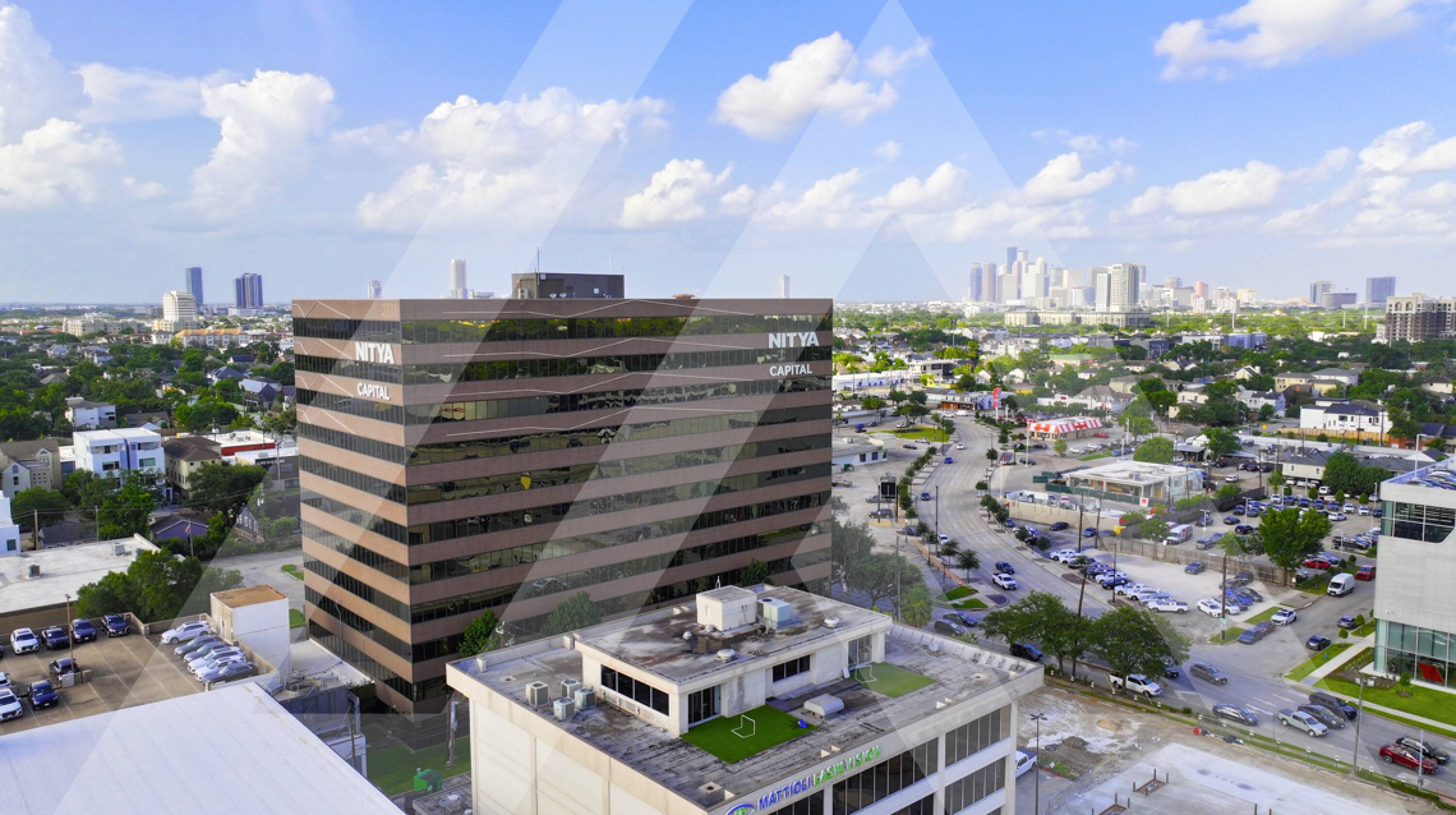 Eleven-story office building with on-site amenities in Houston, Texas.