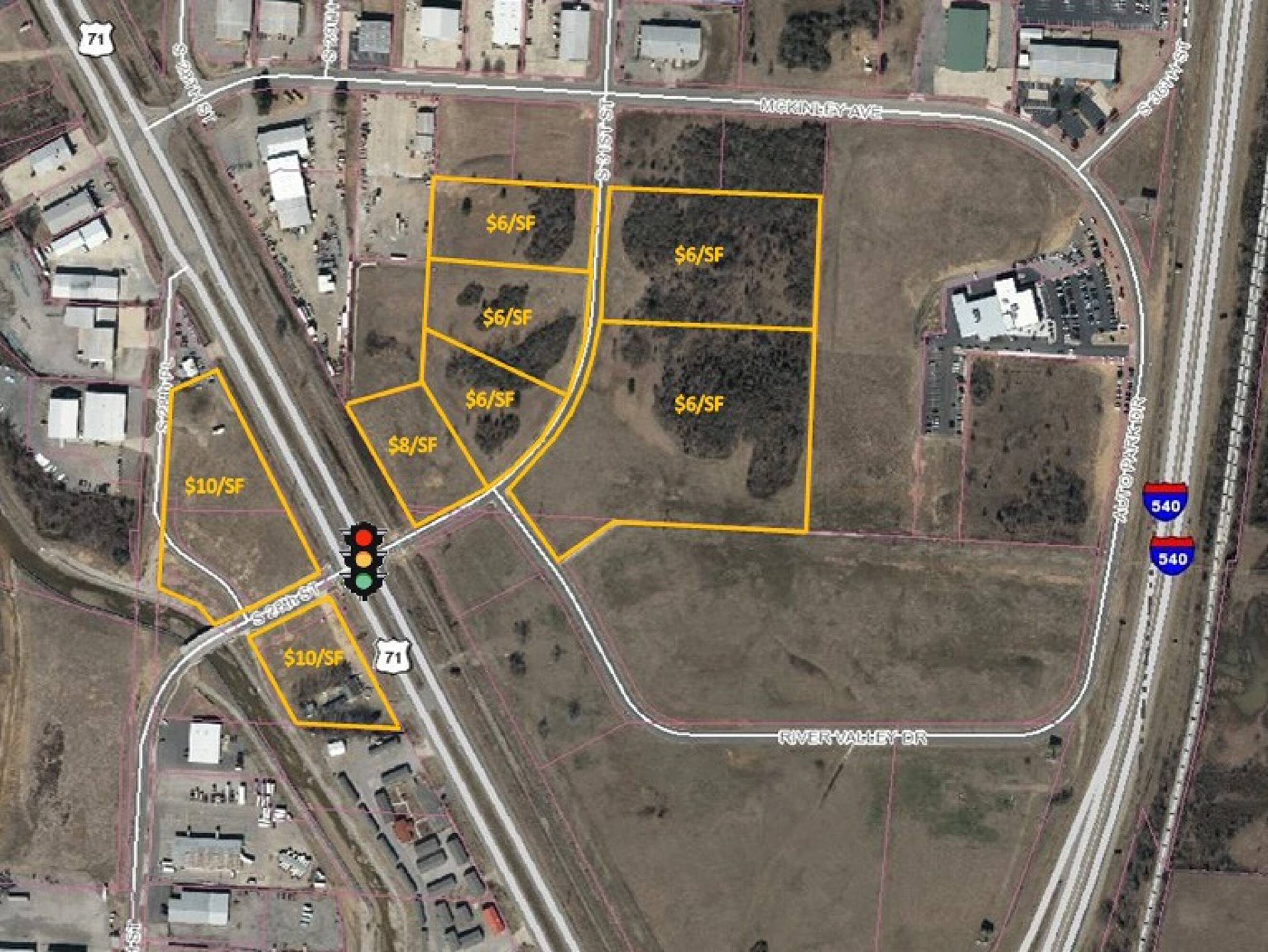 This property features: High visibility location on Highway 71 South.; Corner lots (5 and 6) at a lighted intersection of Highway 71 South and South 31st Street.; Proximity to Interstate 540 (.4 mile).