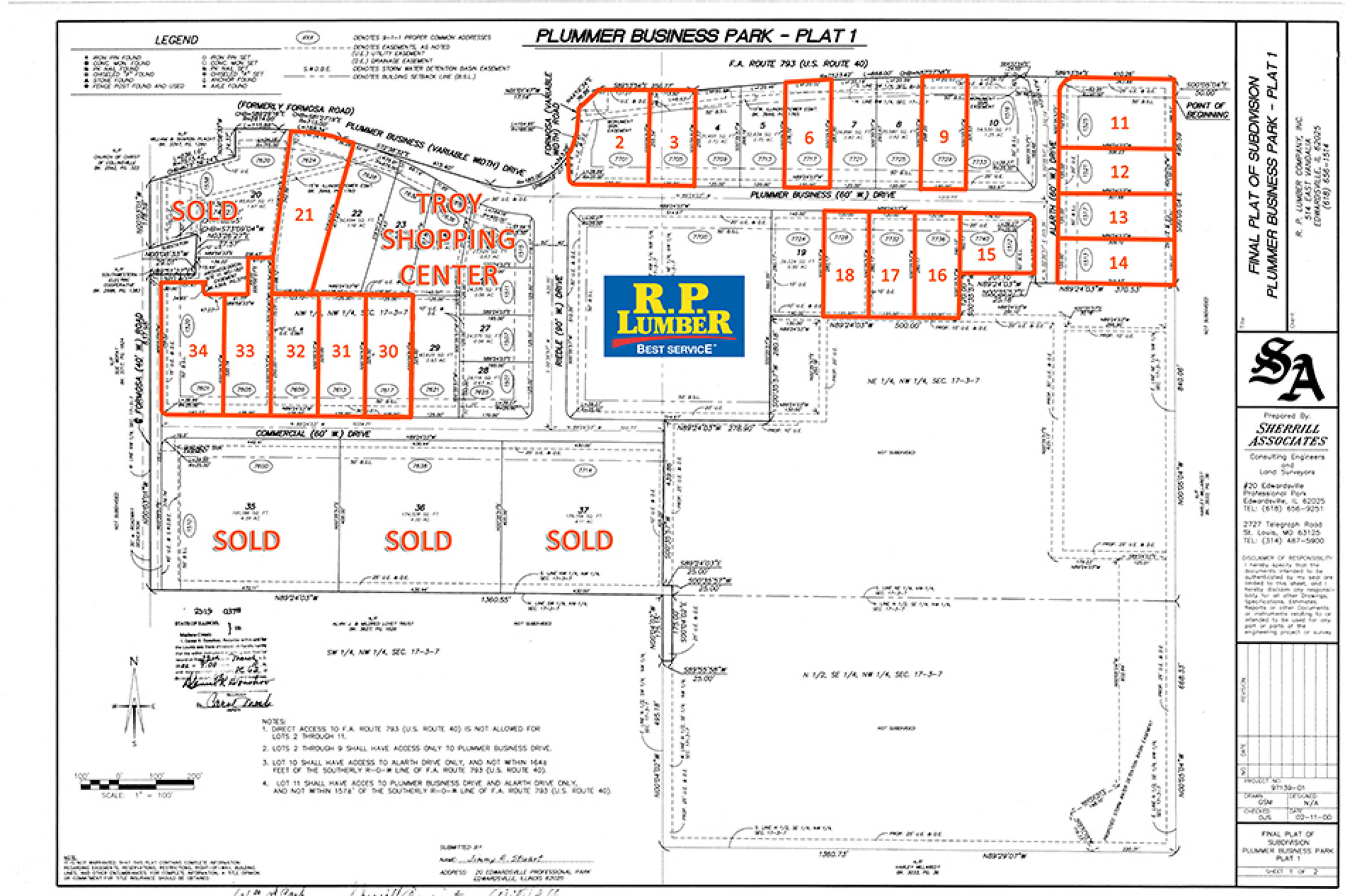 Developed commercial lots with utilities and interstate access.