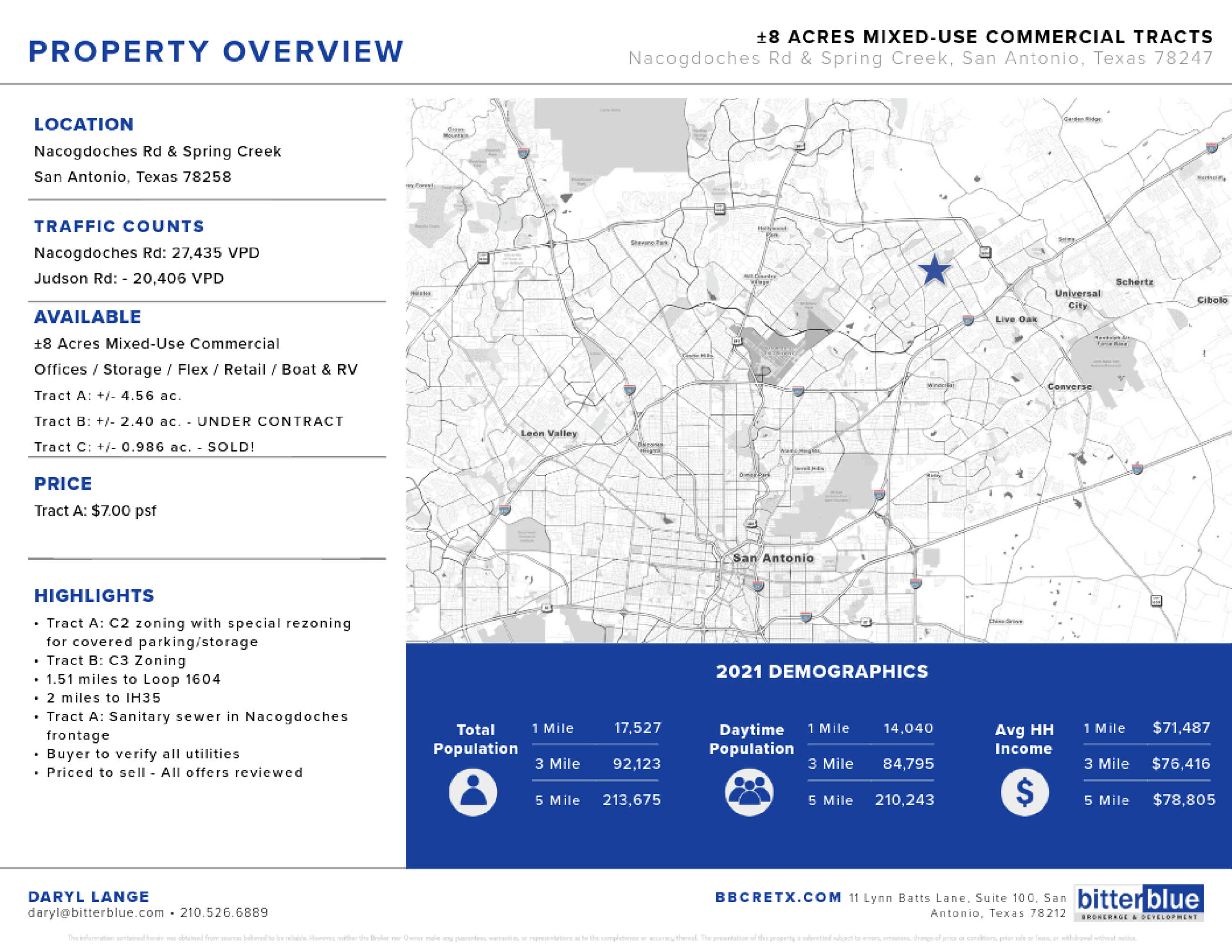 4.56-acre mixed-use property with C2 zoning in San Antonio, TX.