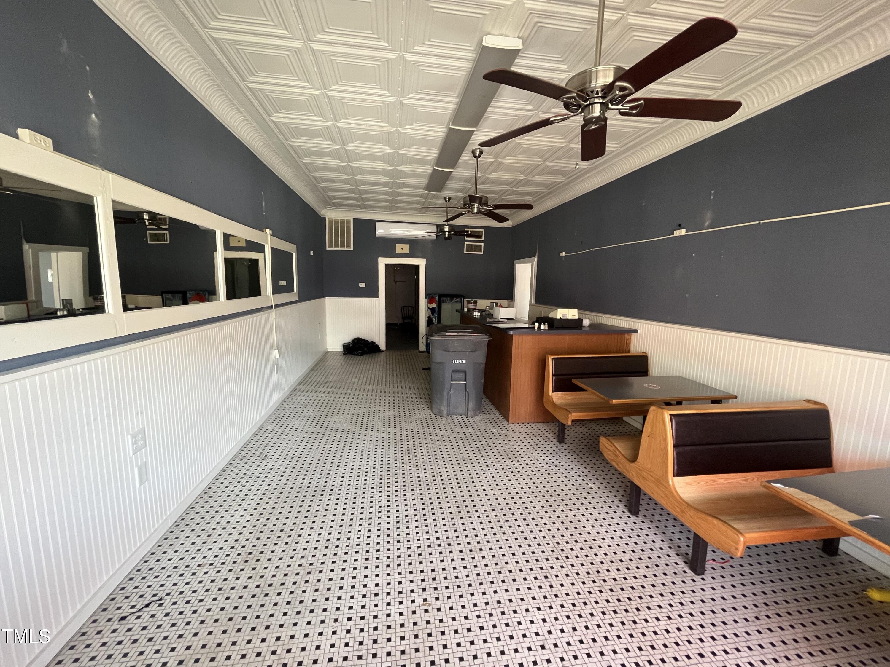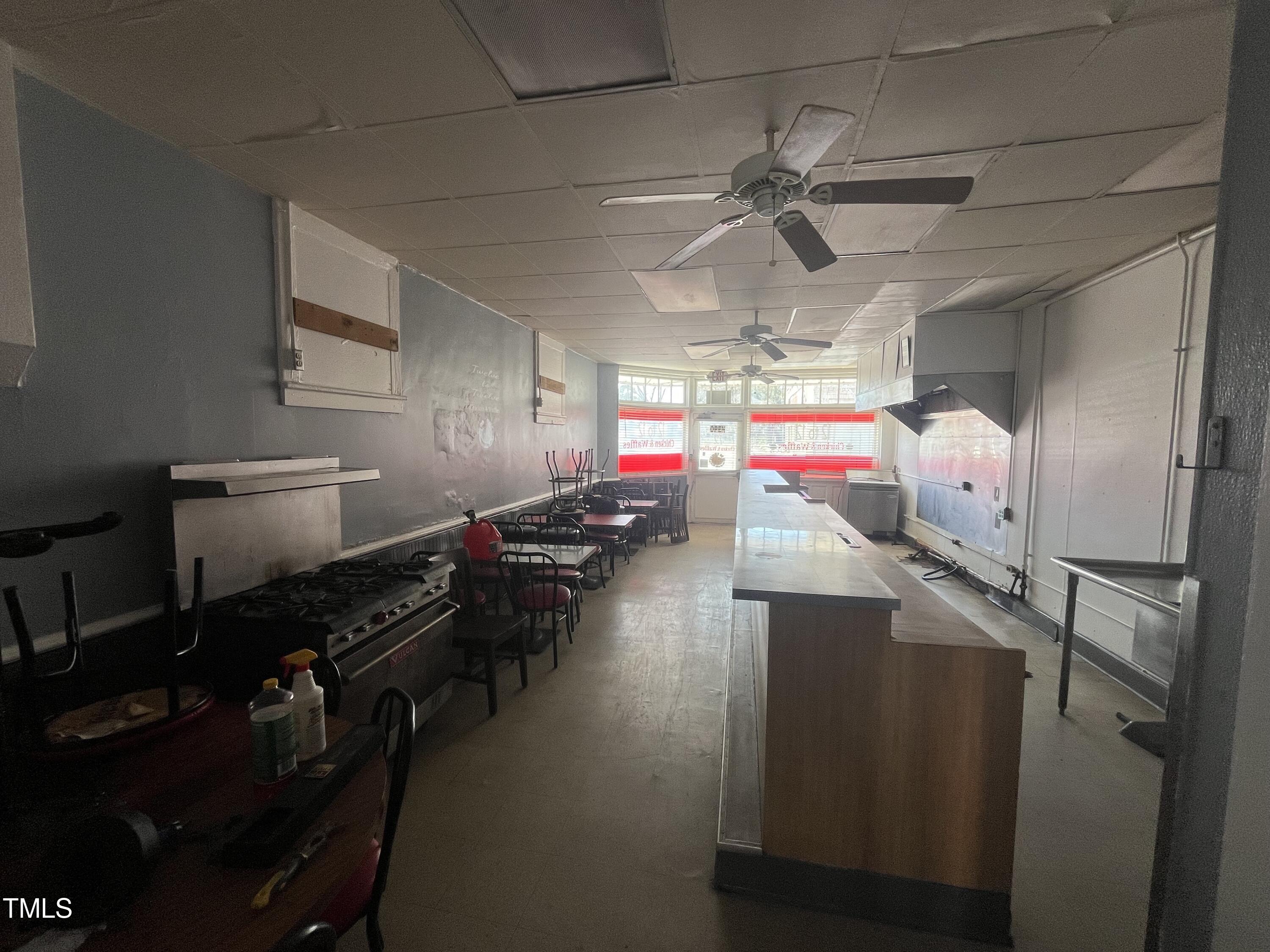 Five-unit retail space with restaurant potential in high-traffic area.