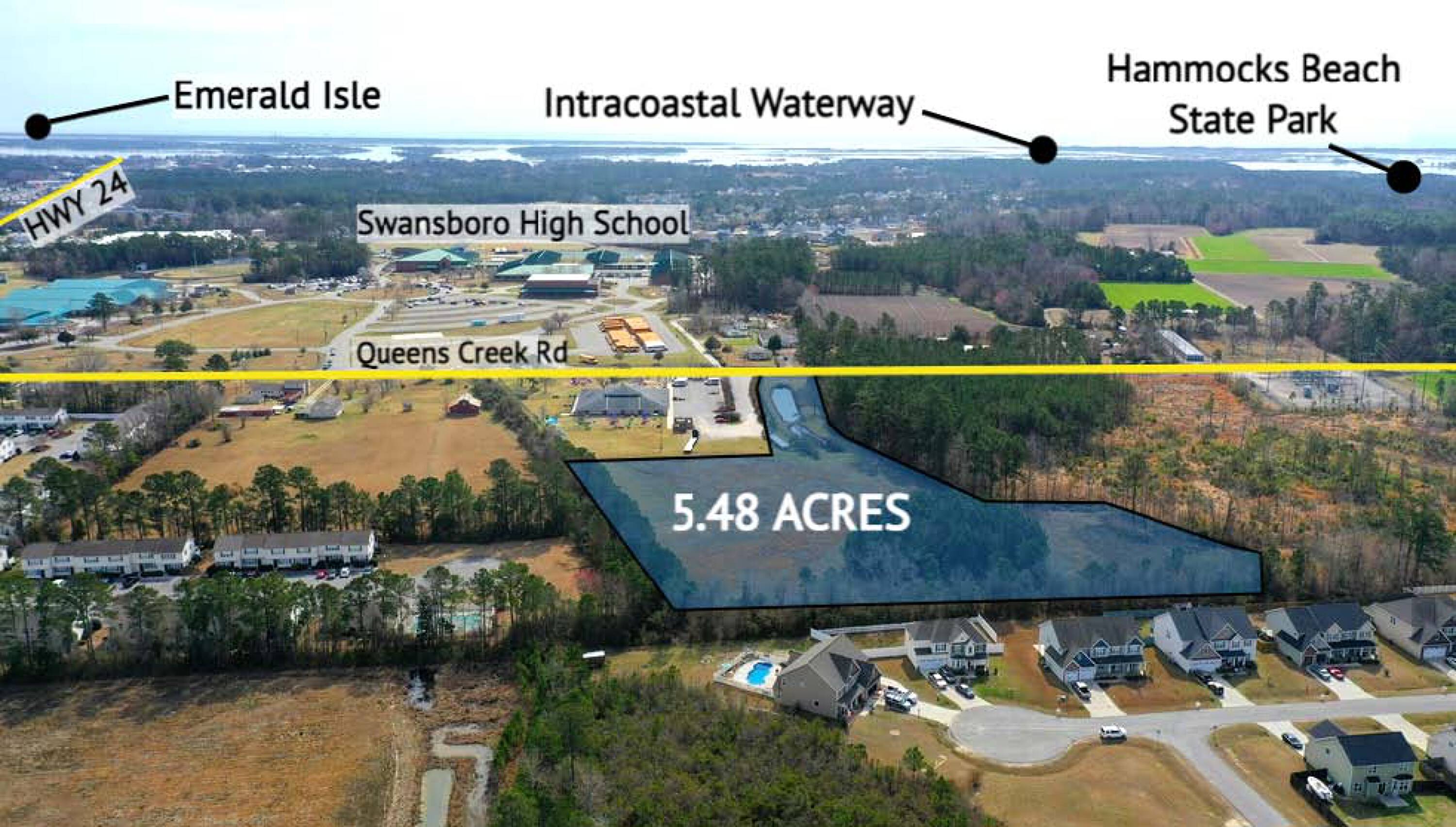5.48 acres in Swansboro's commercial corridor with highway access.