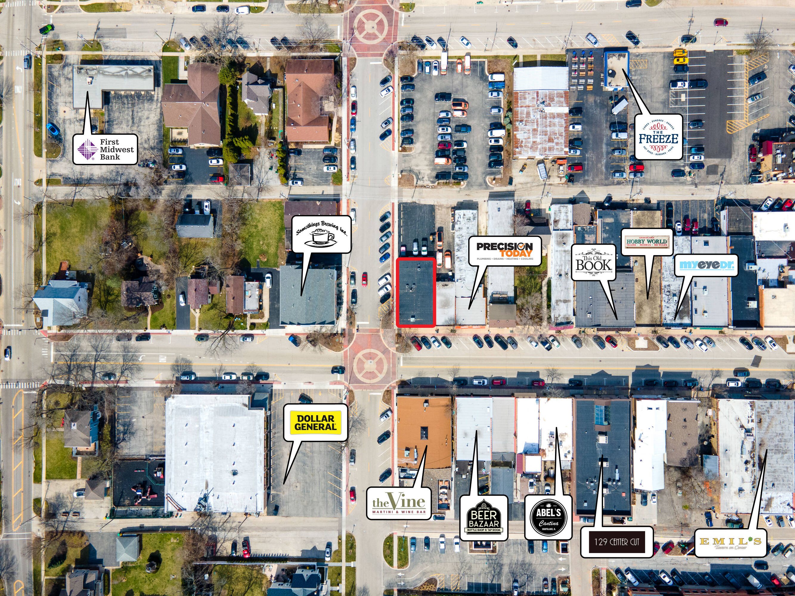 Prime corner location in downtown Grayslake with redevelopment potential.