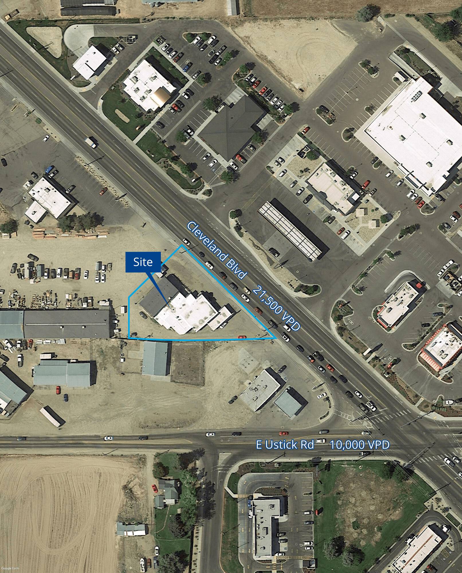 This property is located at the southeast corner of Ustick Road and Cleveland Boulevard. It is available for a new build-to-suit retail building with NNN rent or a long-term ground lease. The property offers direct ingress and egress off Cleveland Boulevard. Surrounding businesses include Walmart, Dutch Bros, Jack in the Box, Panda Express, Grocery Outlet, Dollar Tree, Freddy’s, and other retailers and restaurants.