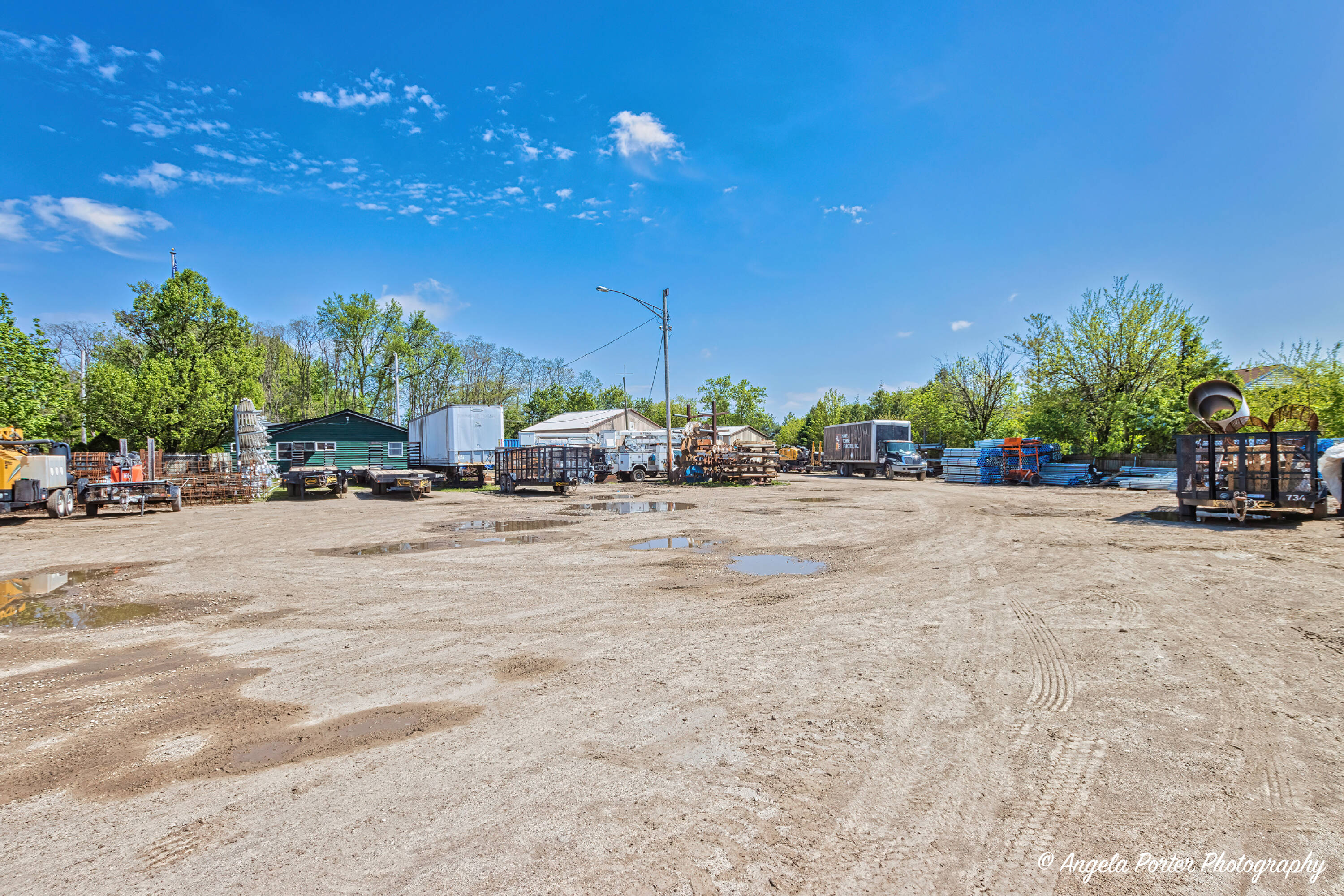 Contractor property with office, shop space, and fenced yard.