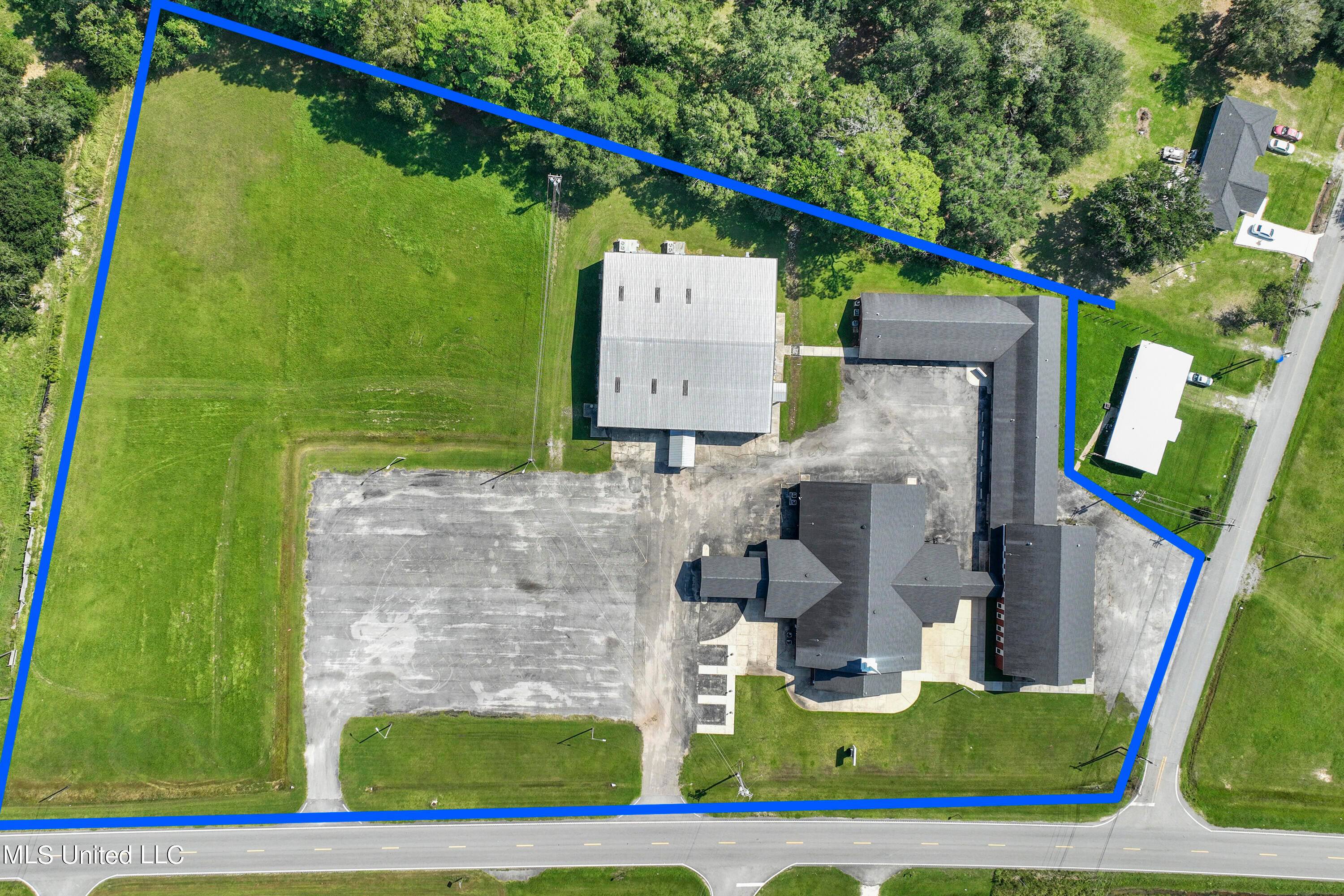 5+ acre property with multiple buildings and commercial kitchen.