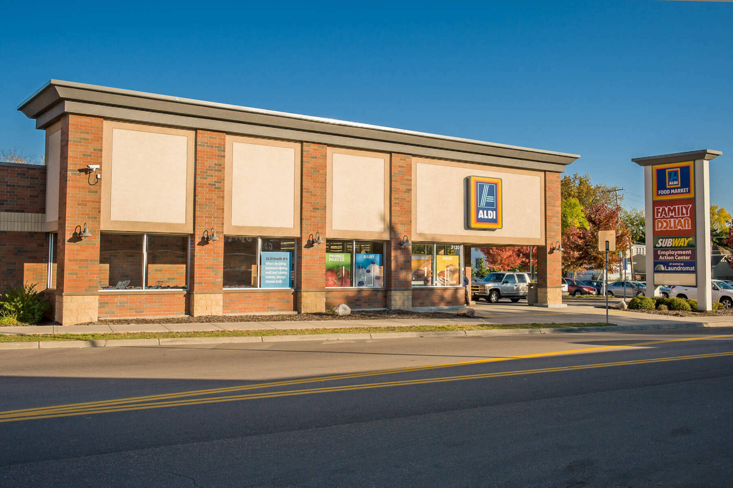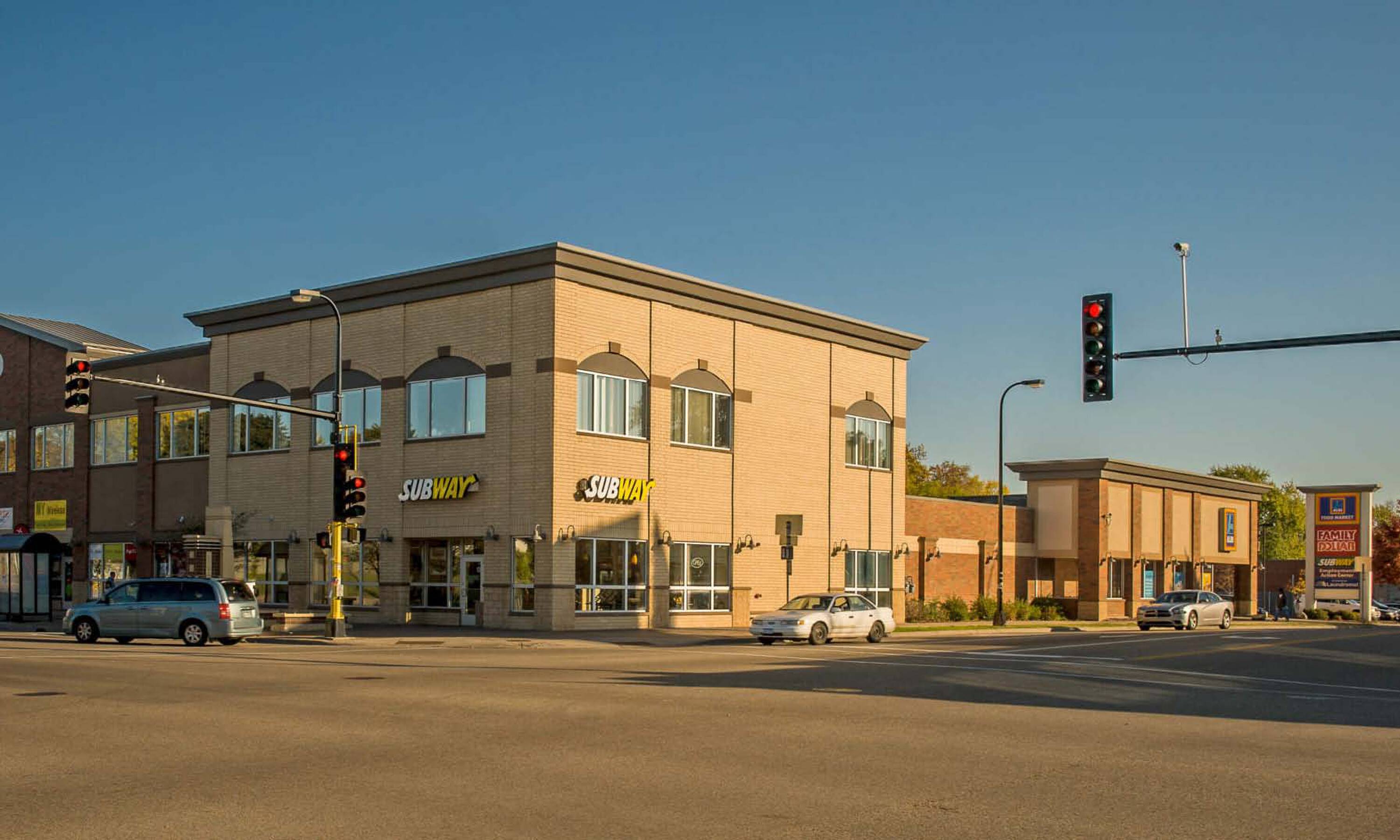 Penn Lowry Crossing offers community-serving commercial space in North Minneapolis, featuring a brick exterior and stucco accents reminiscent of the neighborhood's earlier days. This mixed-use development is located at the southeast corner of Penn Avenue North and Lowry Avenue North in Minneapolis, serving as the center of the community’s retail activity. Anchored by Aldi and Family Dollar, the two-building development houses several neighborhood destination businesses. The property includes well-lit parking, bicycle parking facilities, and a paved plaza. Originally a single-story property built in 1965, Wellington purchased it along with an adjacent outlot in 2006, developed the two-story 3120 building in 2007, and extensively renovated the 3010 building.