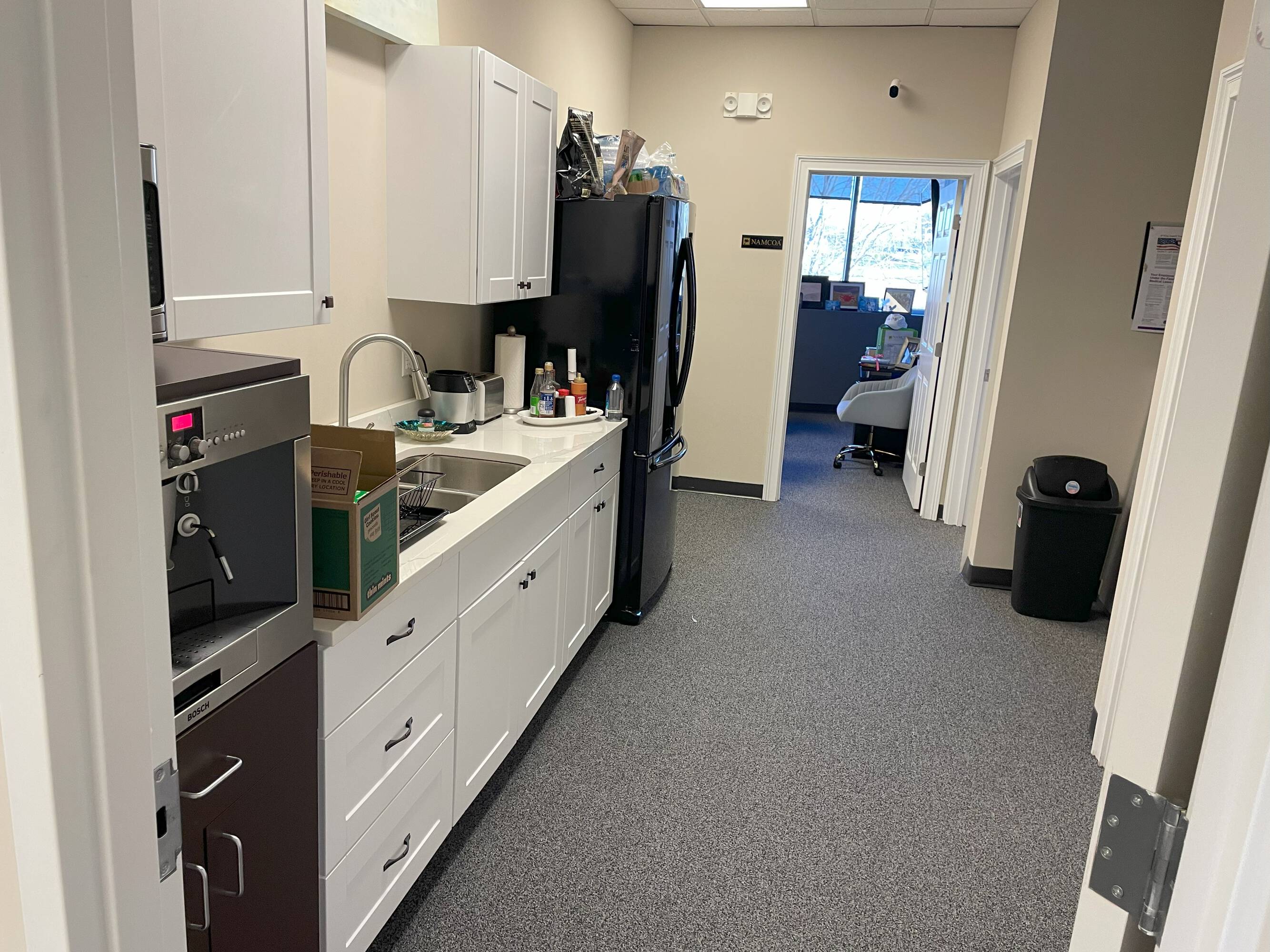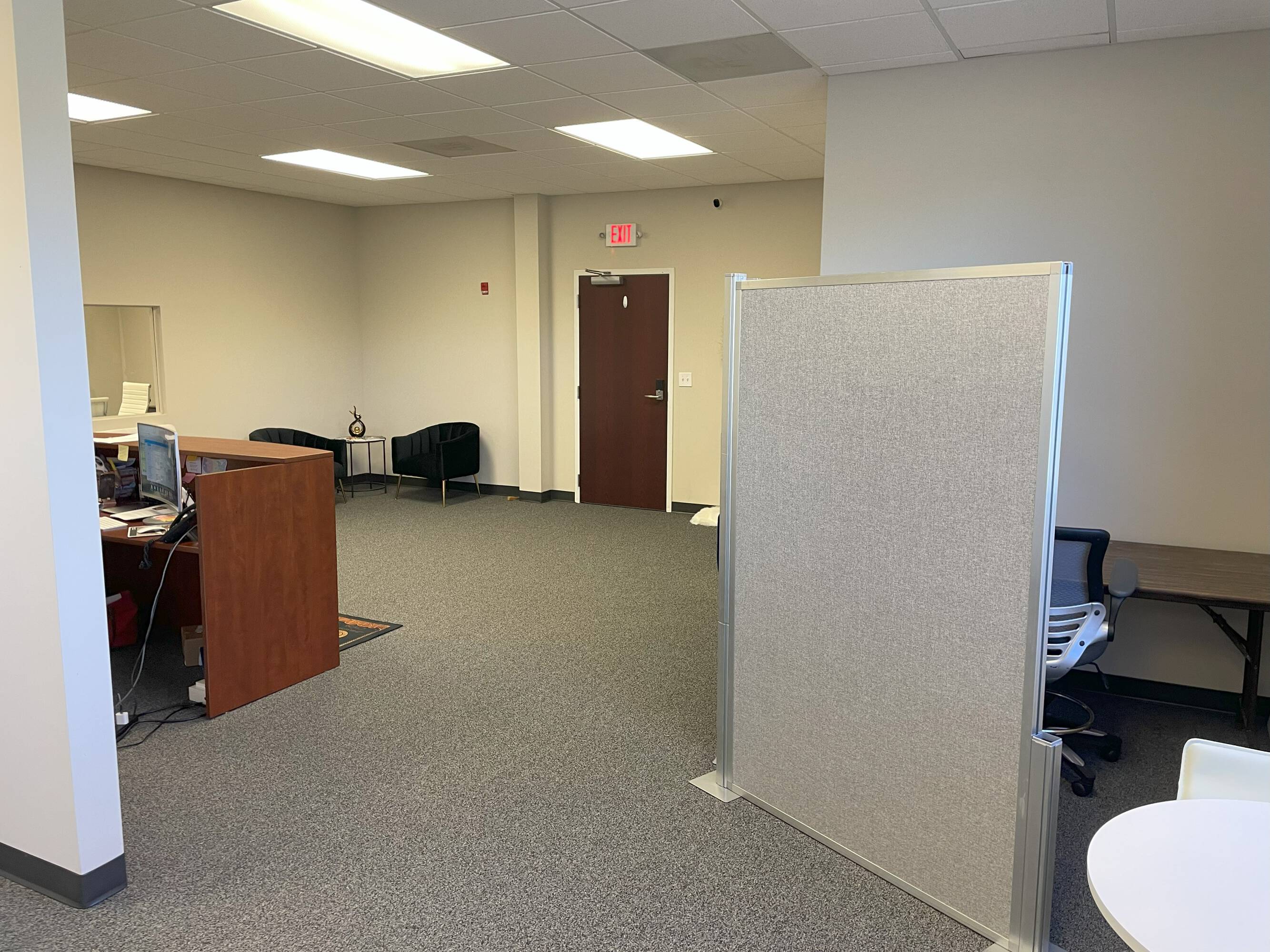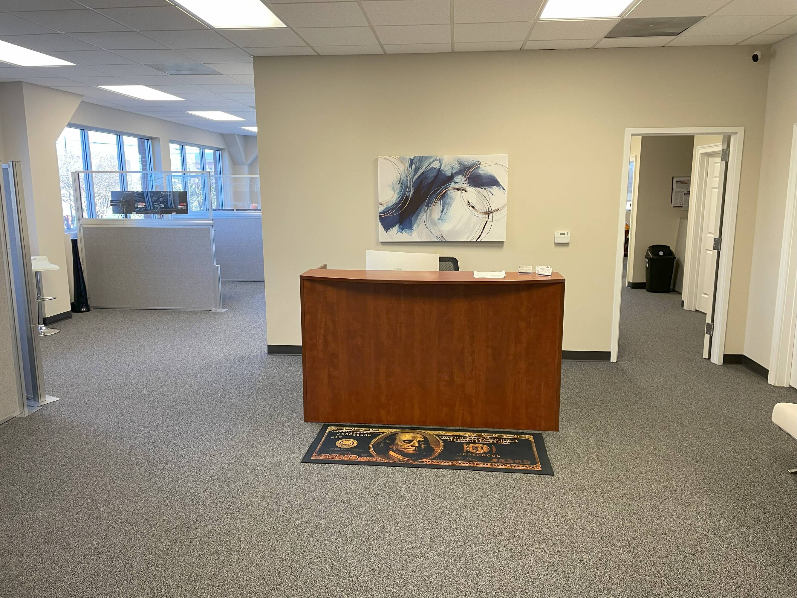 Turnkey office space with private offices, conference room, kitchenette.