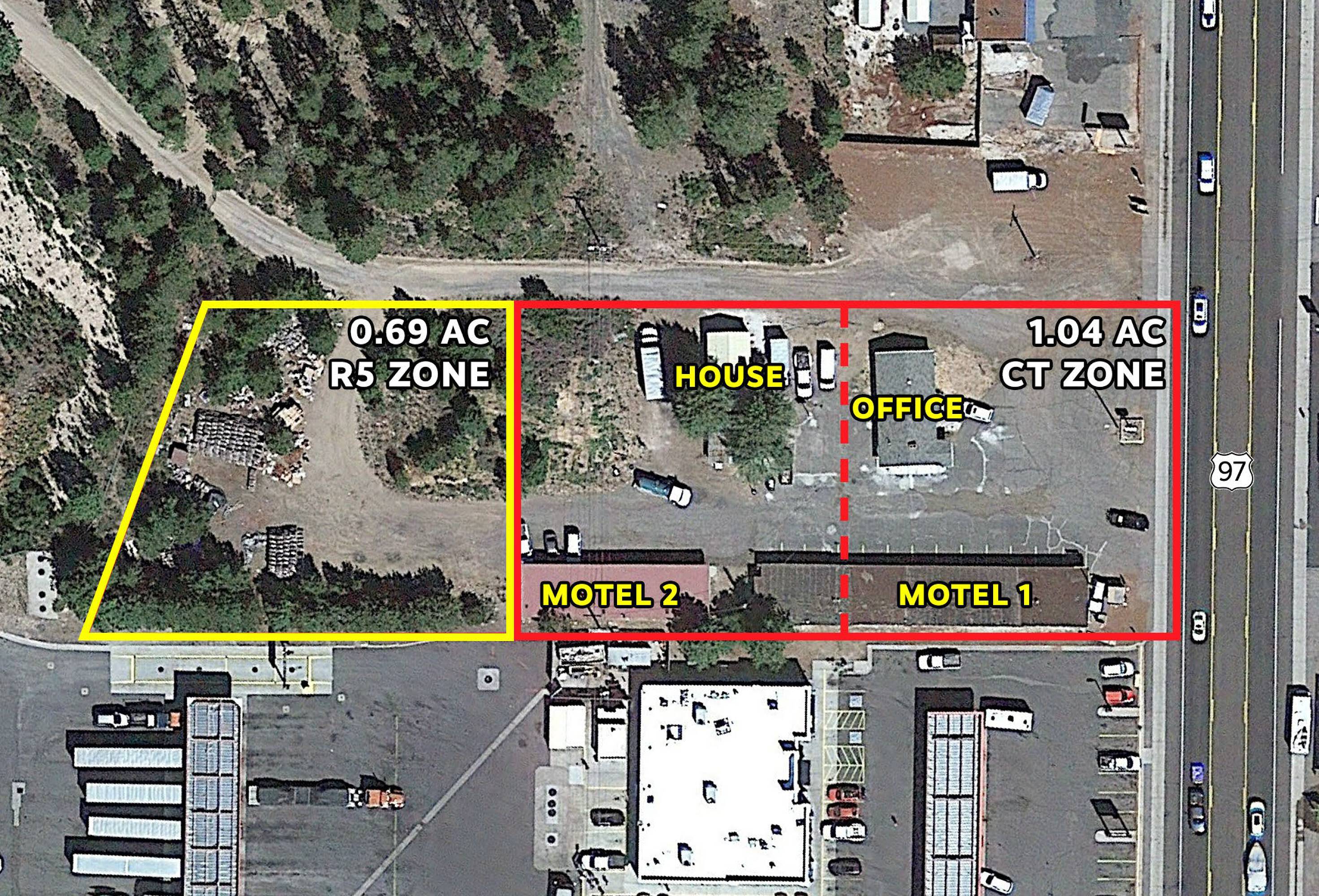 This property features: Prime location near Crater Lake National Park (30 miles) and various outdoor recreational trails.; Two motel buildings with **20 rooms, each equipped with microwaves and mini‑fridges.**; High visibility location on Highway 97 with 5,418 AADT.
