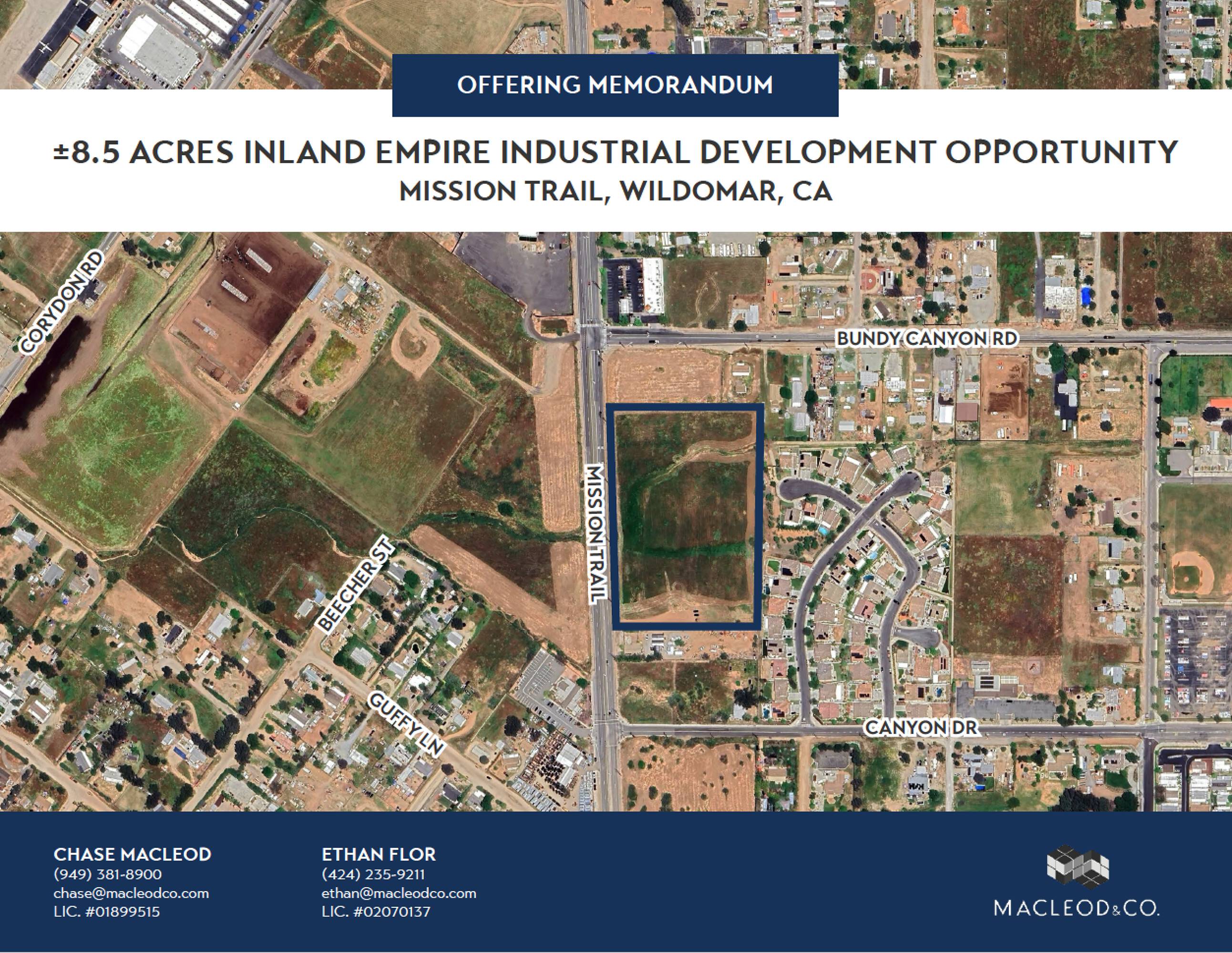 This is an opportunity to acquire an approximately 8.5-acre development site. The property is located directly adjacent to the 15 Freeway in the Inland Empire South. It is zoned Manufacturing-Service Commercial, allowing for a variety of industrial uses including warehousing, distribution, and contractor storage yards. The property will be delivered vacant at the close of escrow. The seller has conducted due diligence on the property and is willing to turnover information to a prospective buyer upon signing an NDA.
