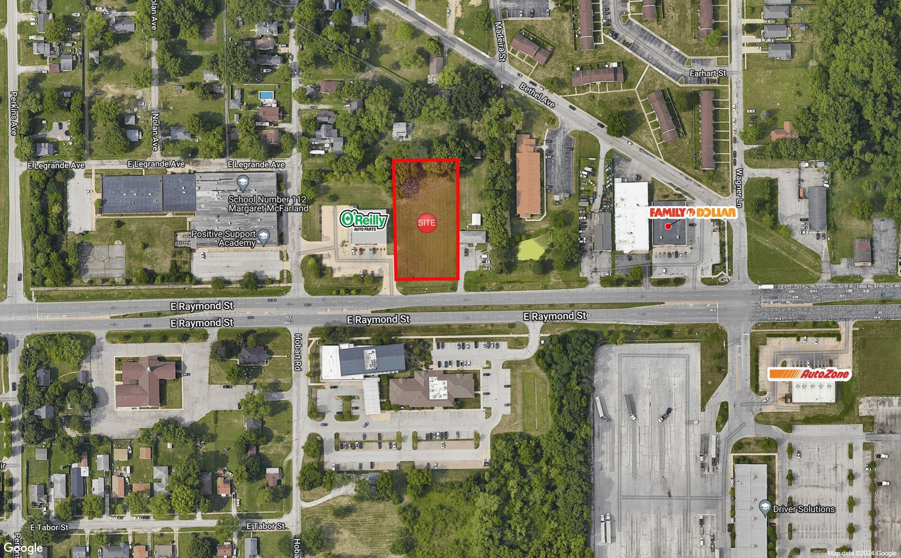 A 0.96 AC parcel is available for sale in southeast Indianapolis. The parcel is located next to O'Reilly Auto Parts and is zoned C-4, permitting a wide array of uses, including auto-related businesses and day cares. The property benefits from 150 ft of frontage along Raymond Street, which has an average daily traffic count of 23,638.