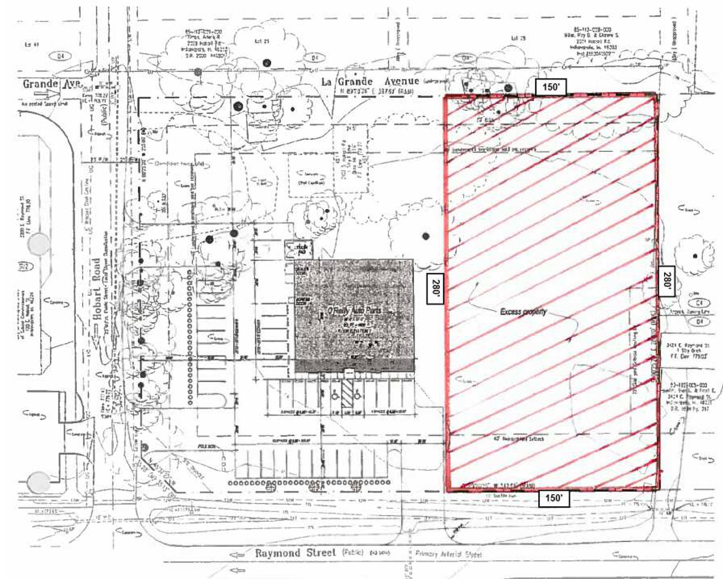 This property features: Zoned C‑4, permitting a wide array of uses.; Excellent visibility with **150ft of frontage on Raymond Street**.; High traffic count: 23,638 ADDT on Raymond Street.