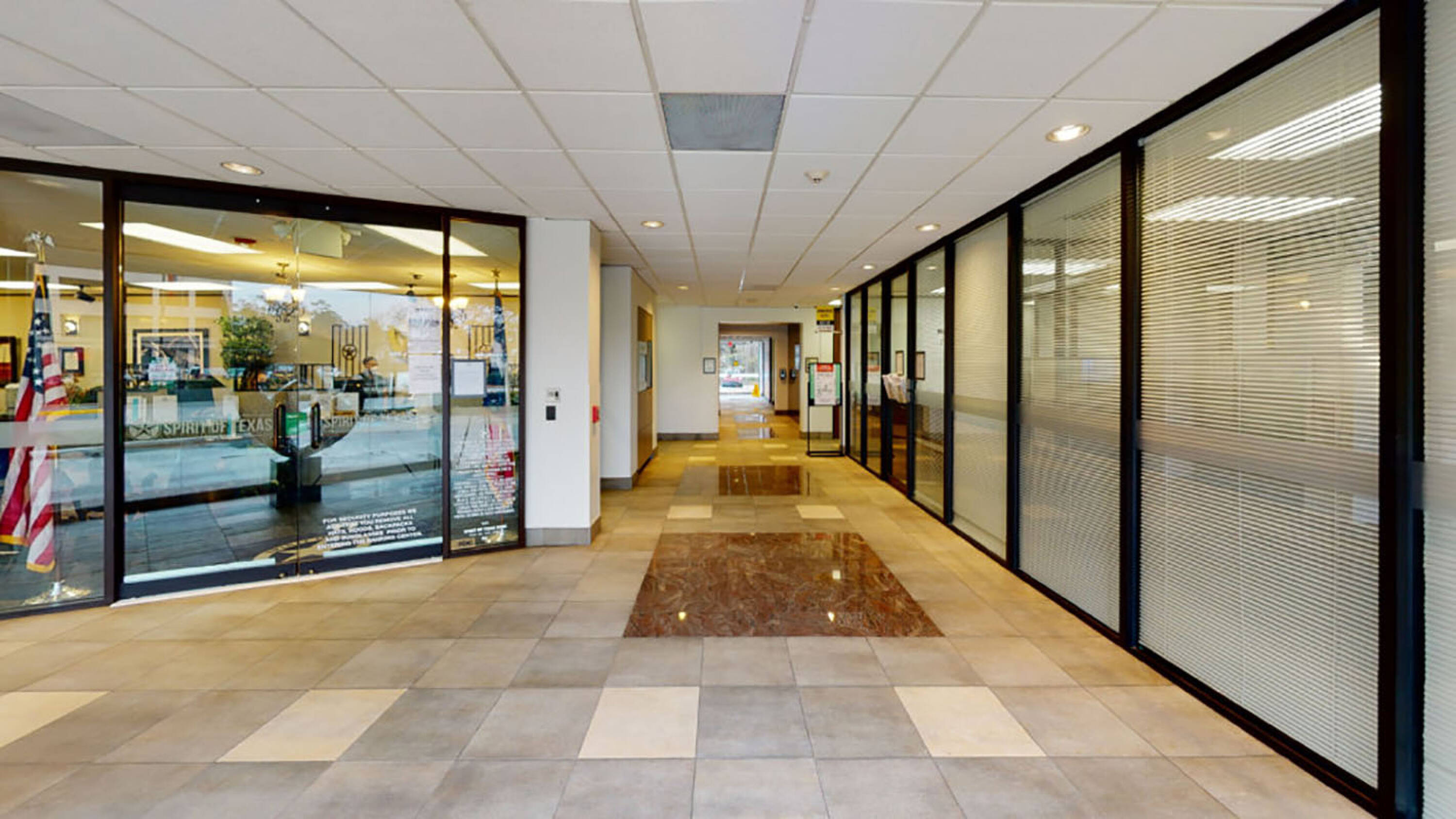 Reception, 4 window offices, 2 interior offices, sink and counter area.
