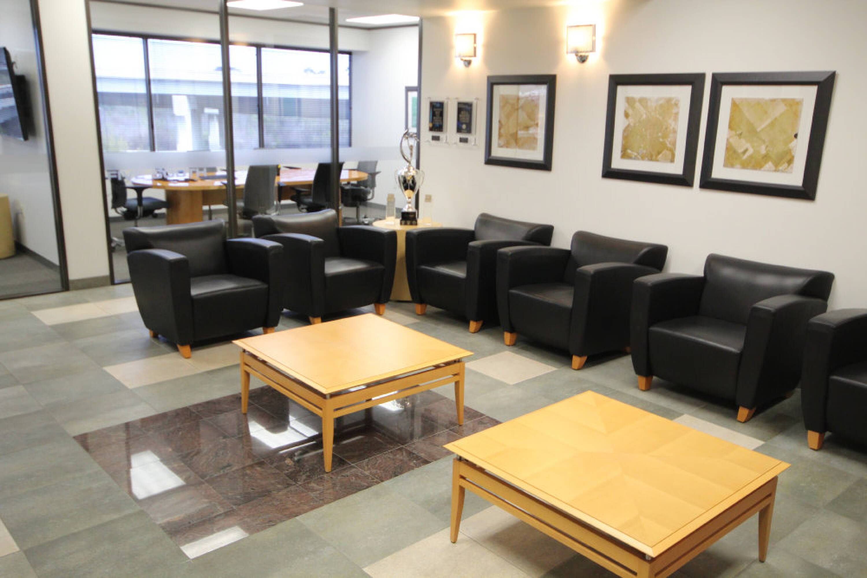 Reception with one window office, large bullpen and conference room.
