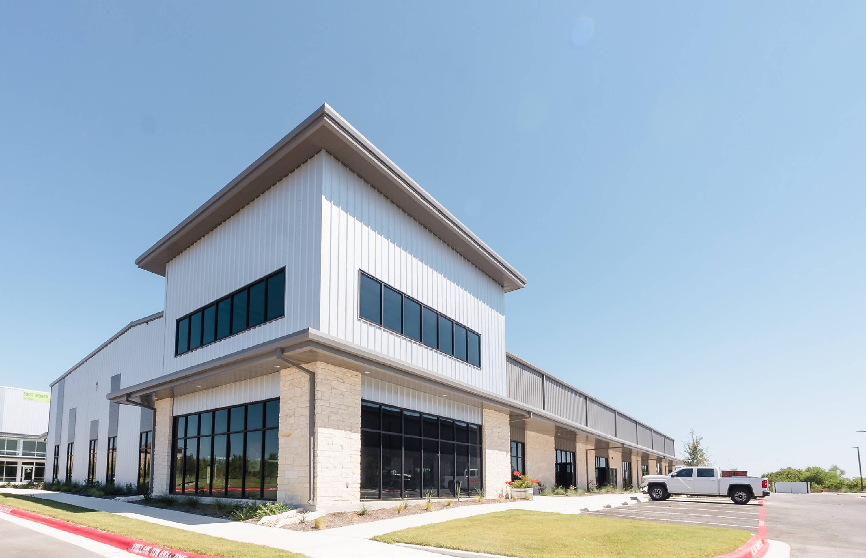 Modern flex/retail space in Pflugerville, TX, near SH 130.