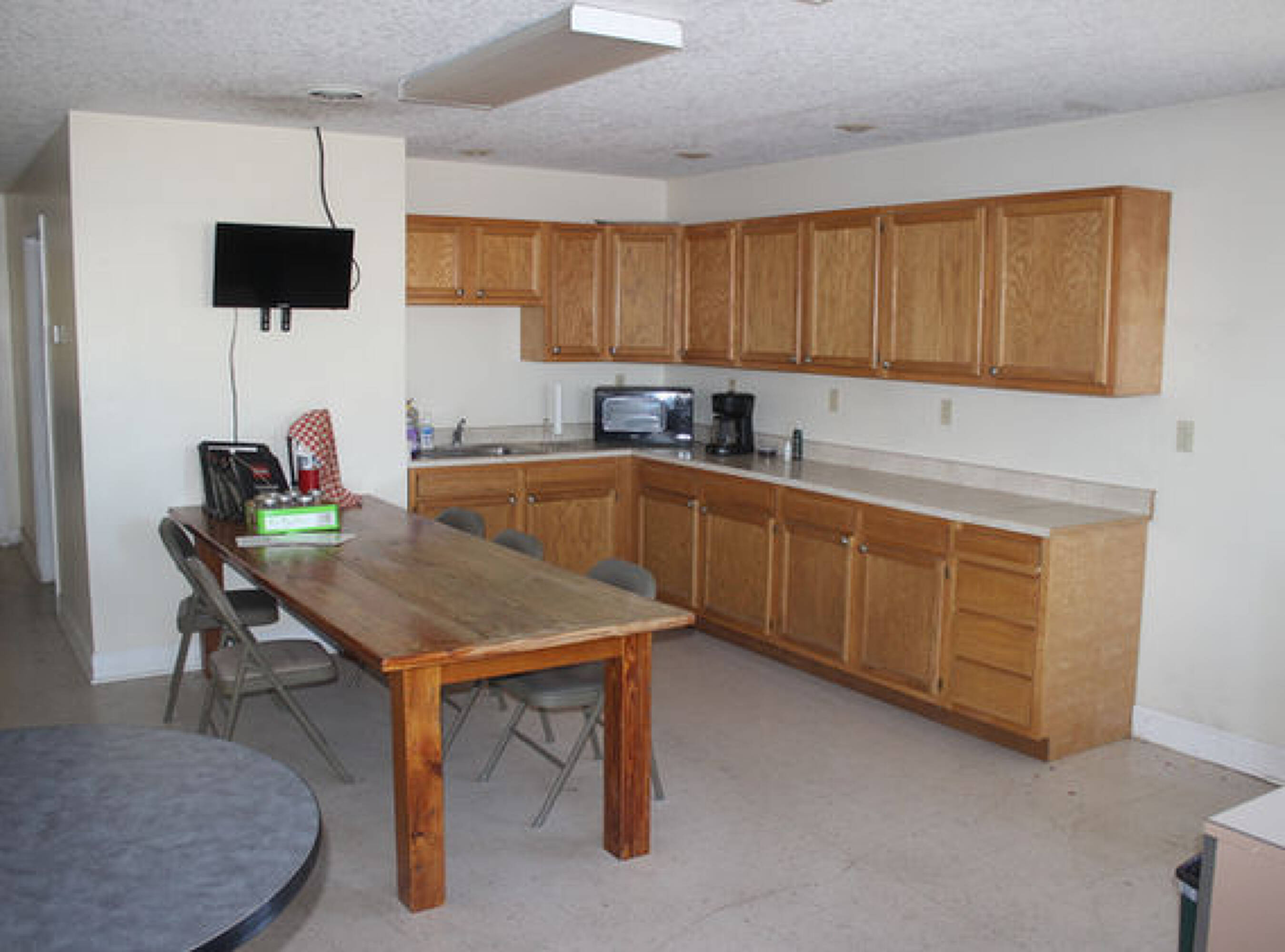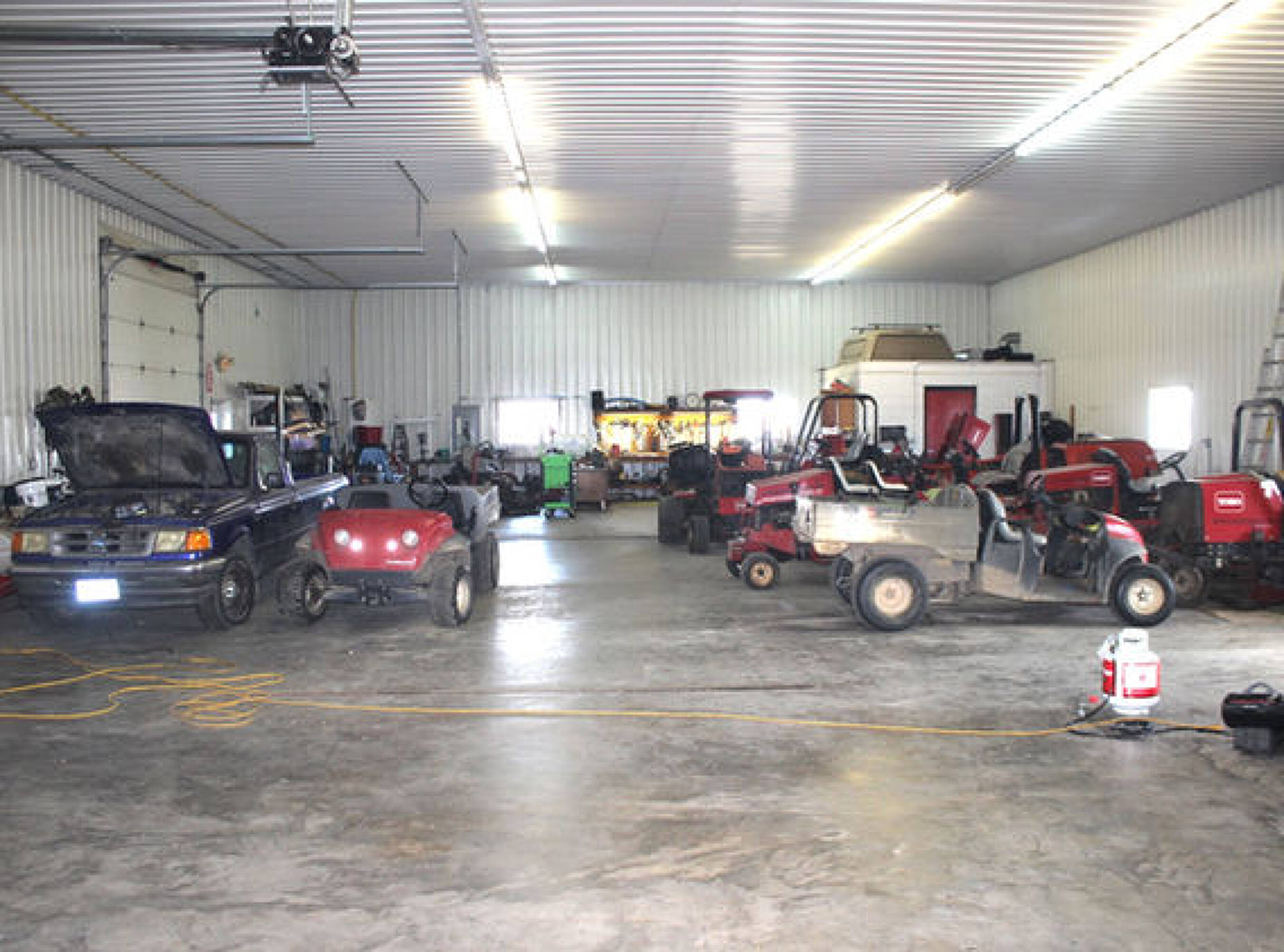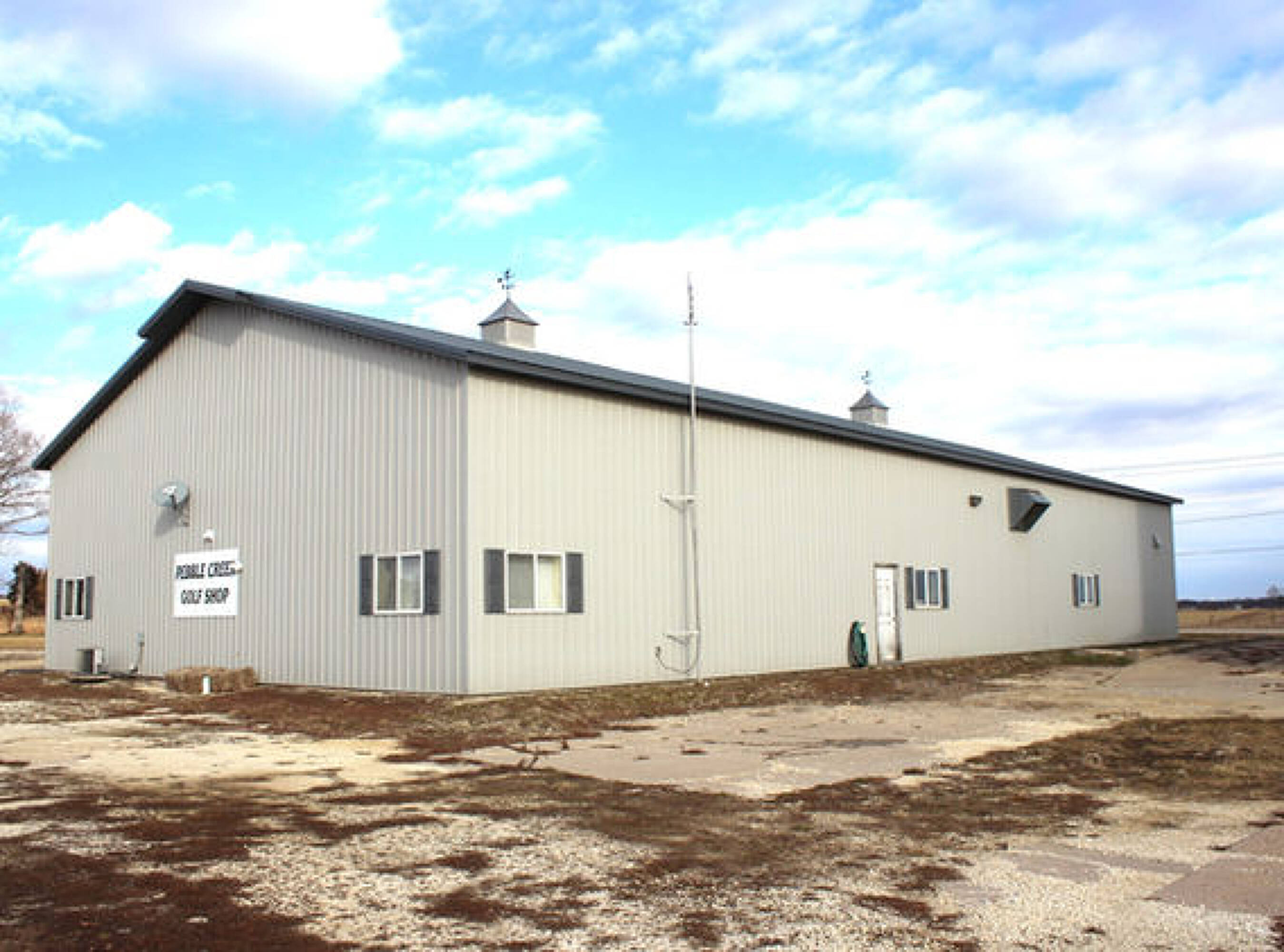 The property is currently used as the maintenance facility for the Pebble Creek Golf Course. It features a 50x100 maintenance shed that includes an office, a bathroom, and space for equipment and machinery. The building has two 12 x 12 overhead doors and 15-foot sidewalls. Interior amenities include in-floor heat, a kitchen area, an office, a bathroom, and storage space. The shop area is used for storing and maintaining golf course equipment. The property includes land to the north of the building that could potentially be rezoned for residential lots. The buyer of Pebble Creek Golf Course will have the first opportunity to purchase this property along with the golf course. This property will not be sold separately until the Pebble Creek Golf Course is sold.