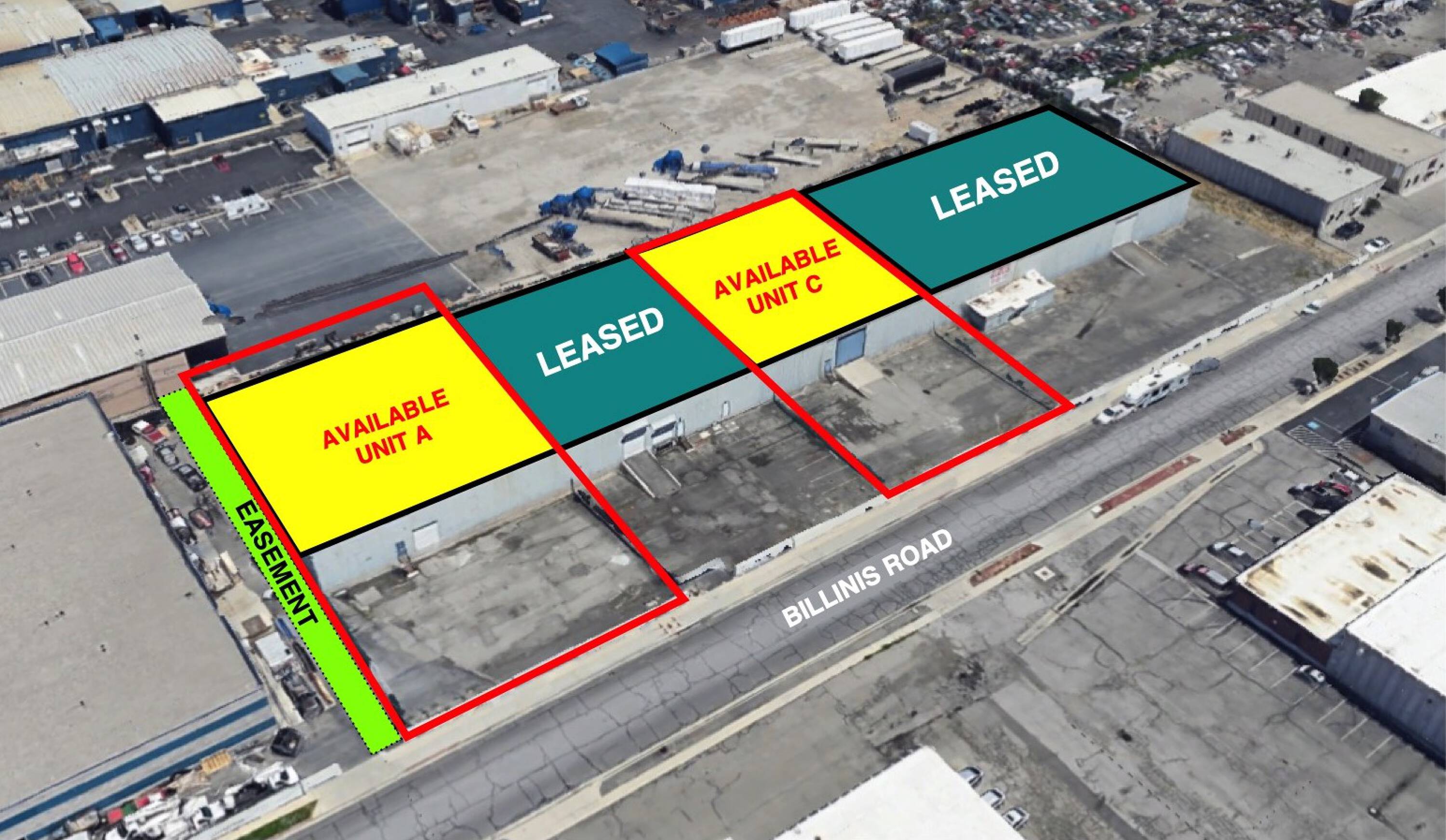 Industrial units for lease with parking and easy access.