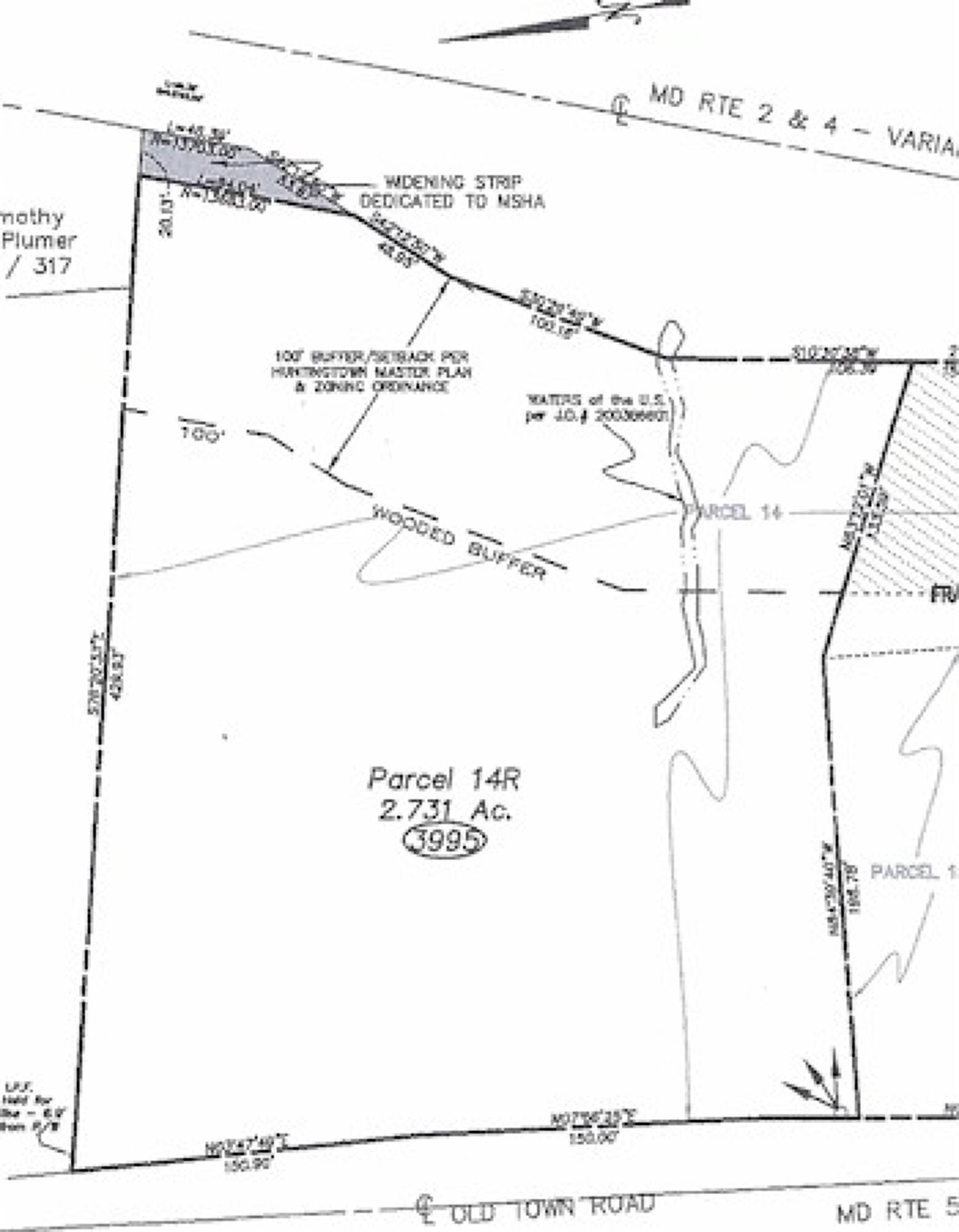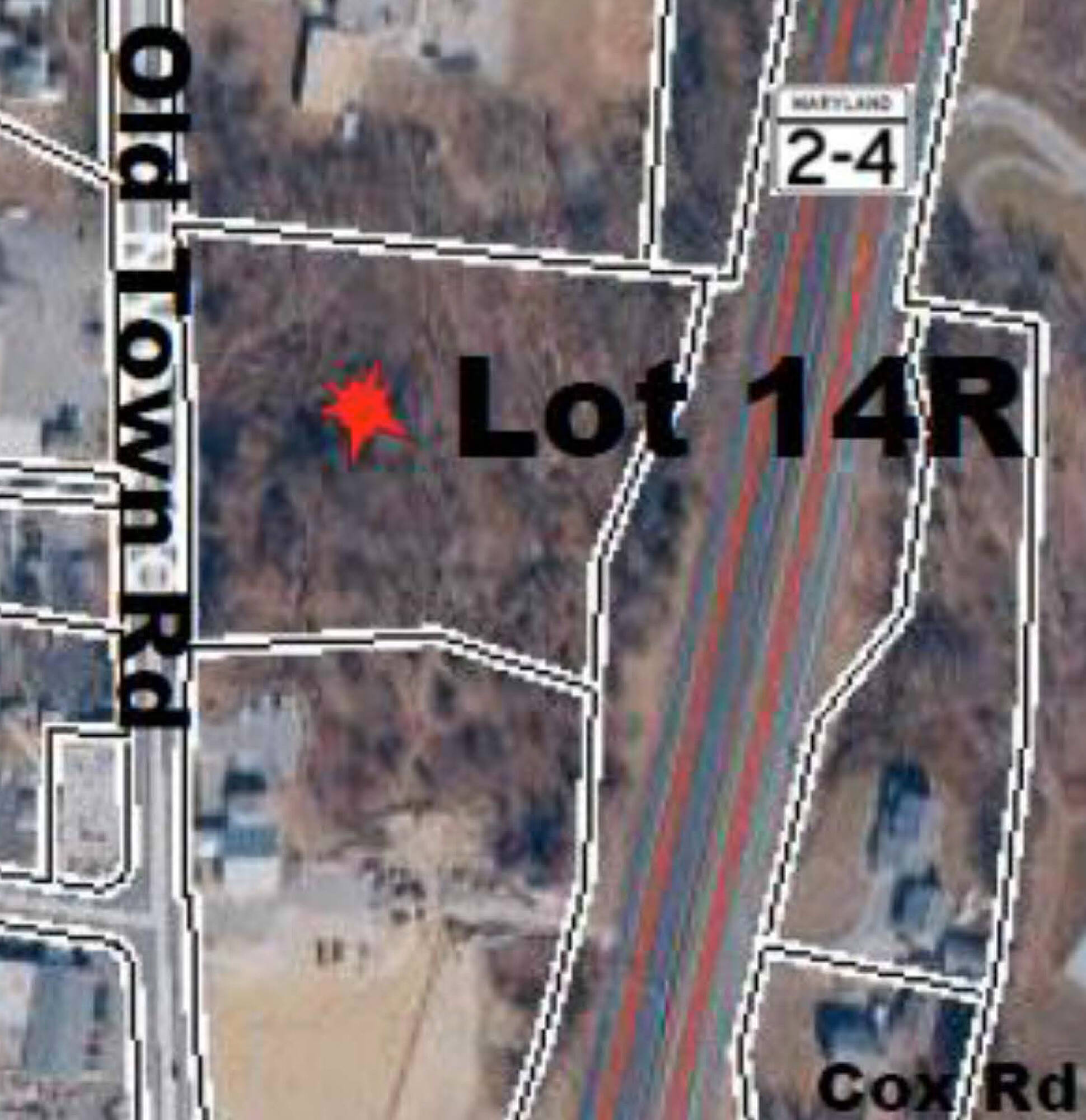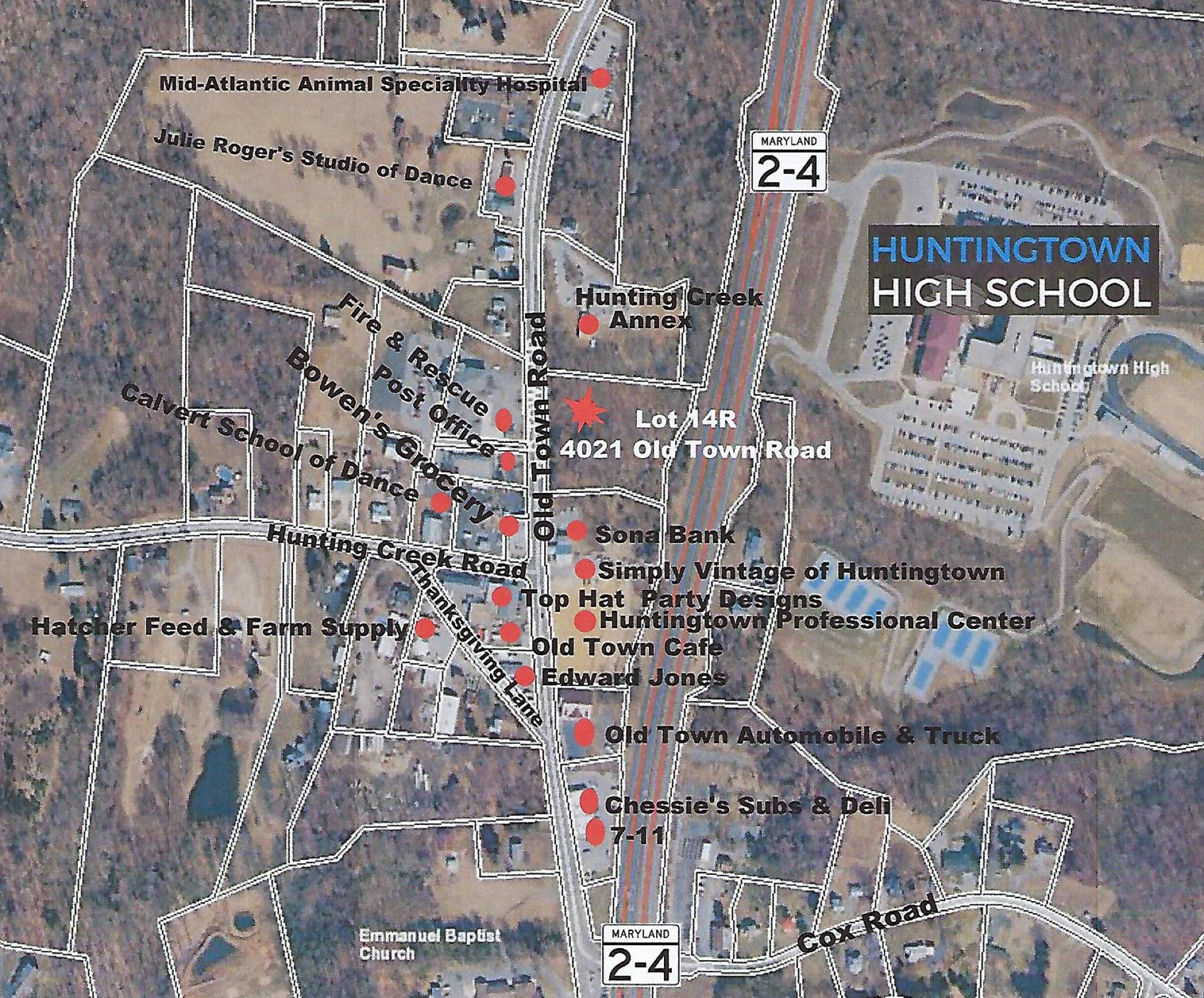 Commercial land with high visibility in downtown Huntingtown, Maryland.