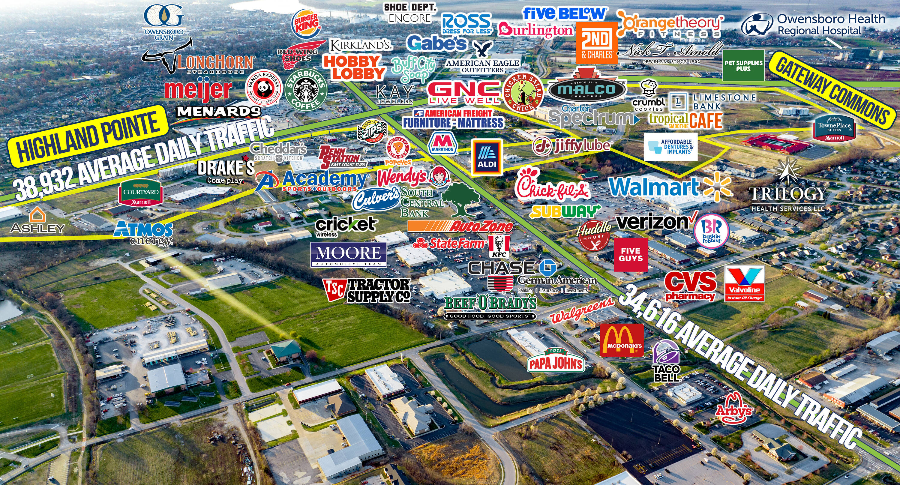 Retail pads available in Owensboro's main retail corridor.