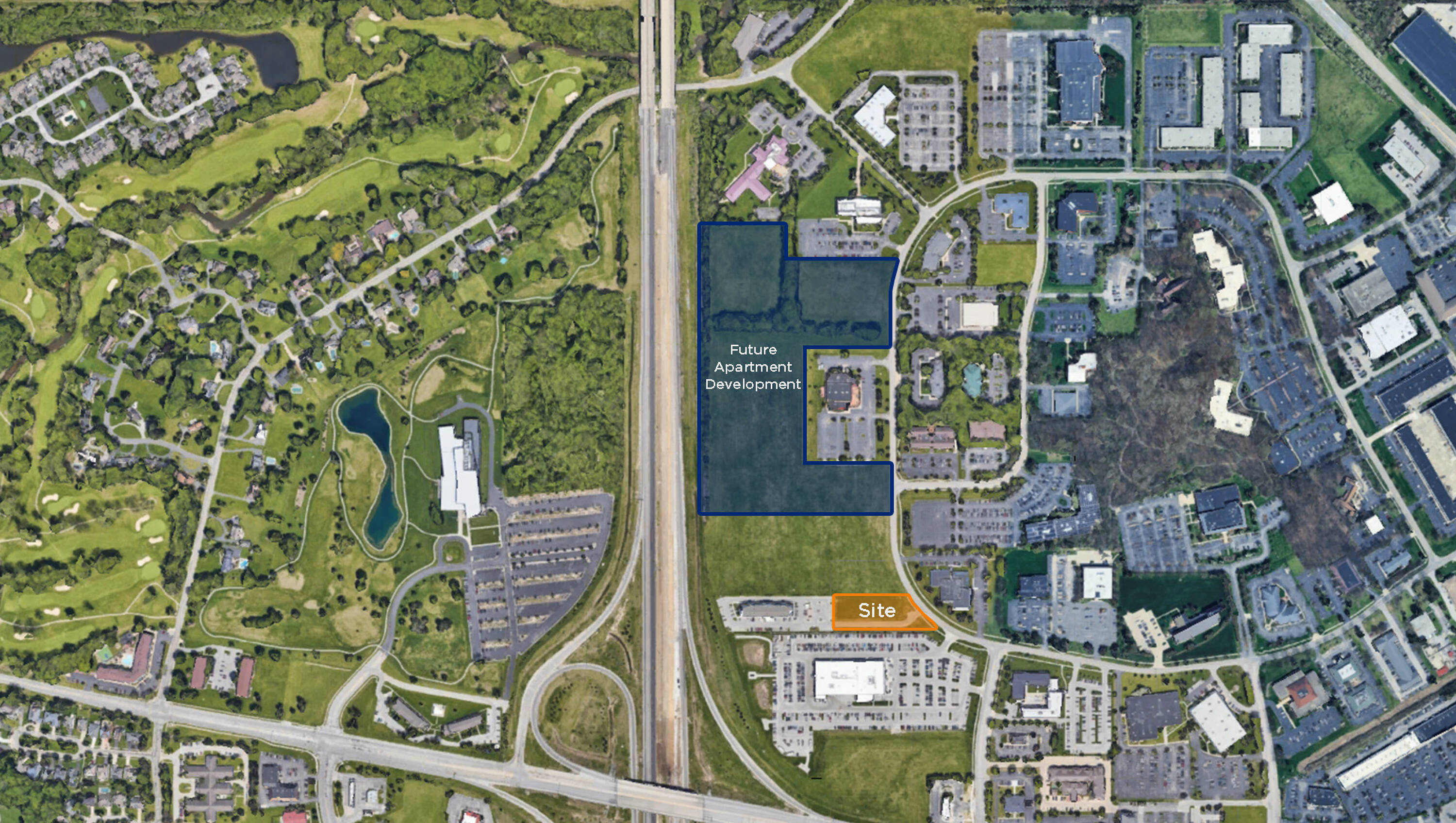 Development site with highway access and commercial-industrial zoning.
