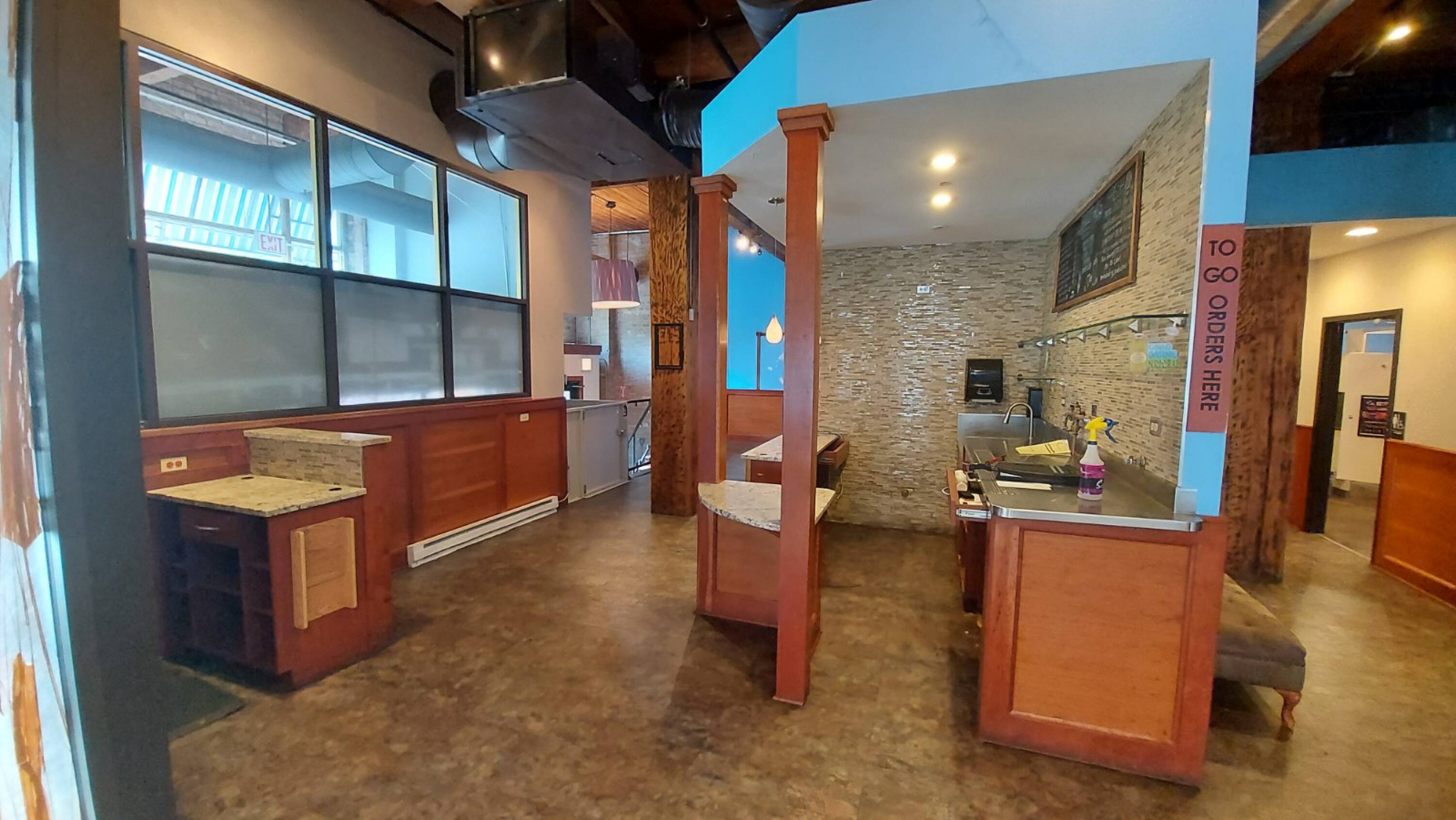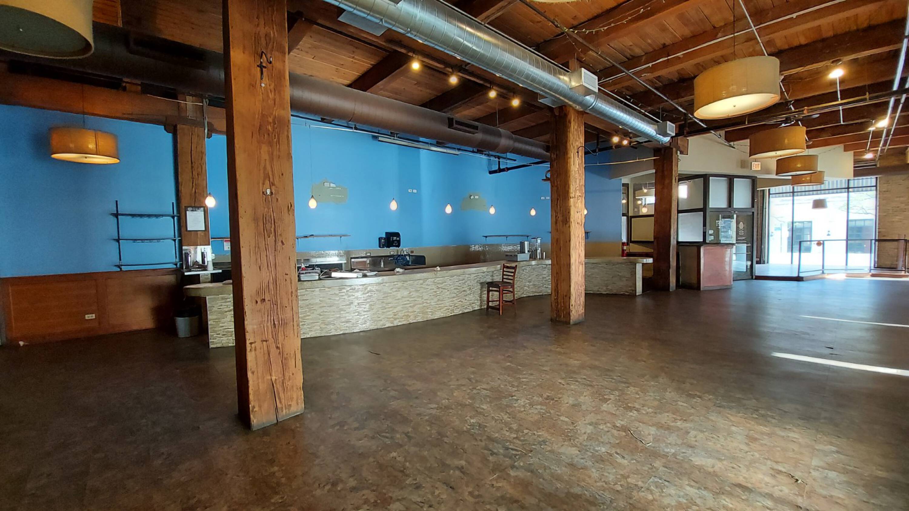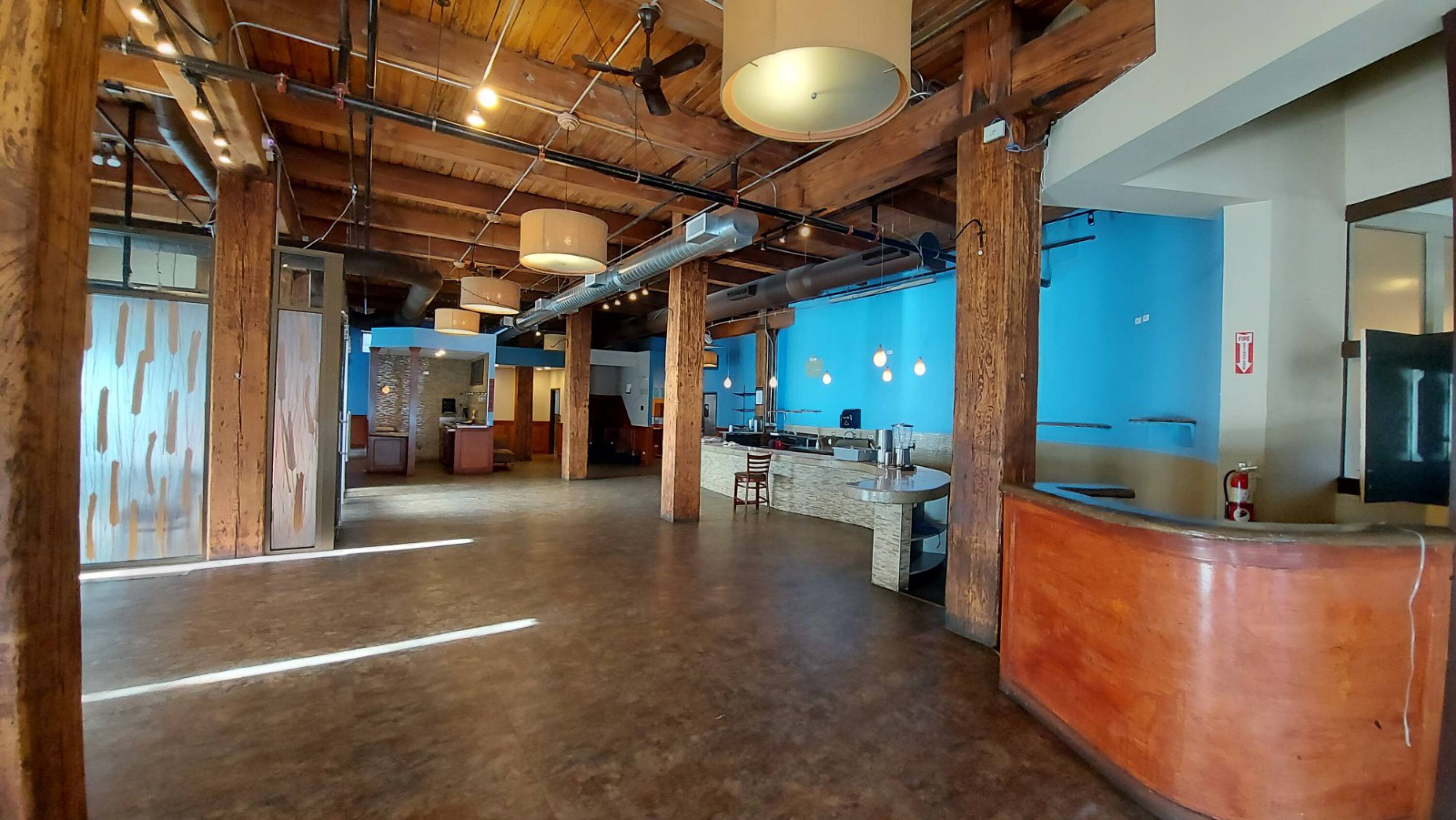 Restaurant space available in heavy timber loft building.