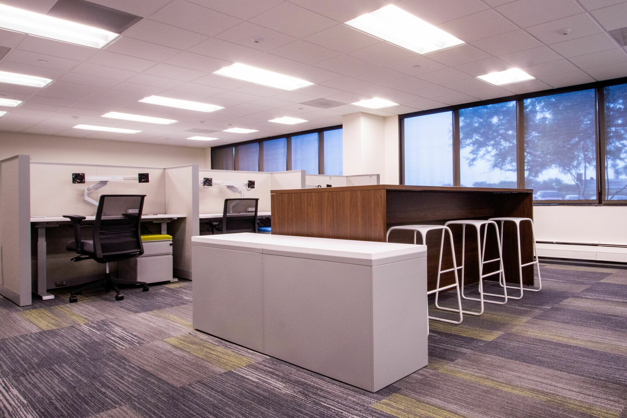 Furnished office space with amenities and convenient highway access.