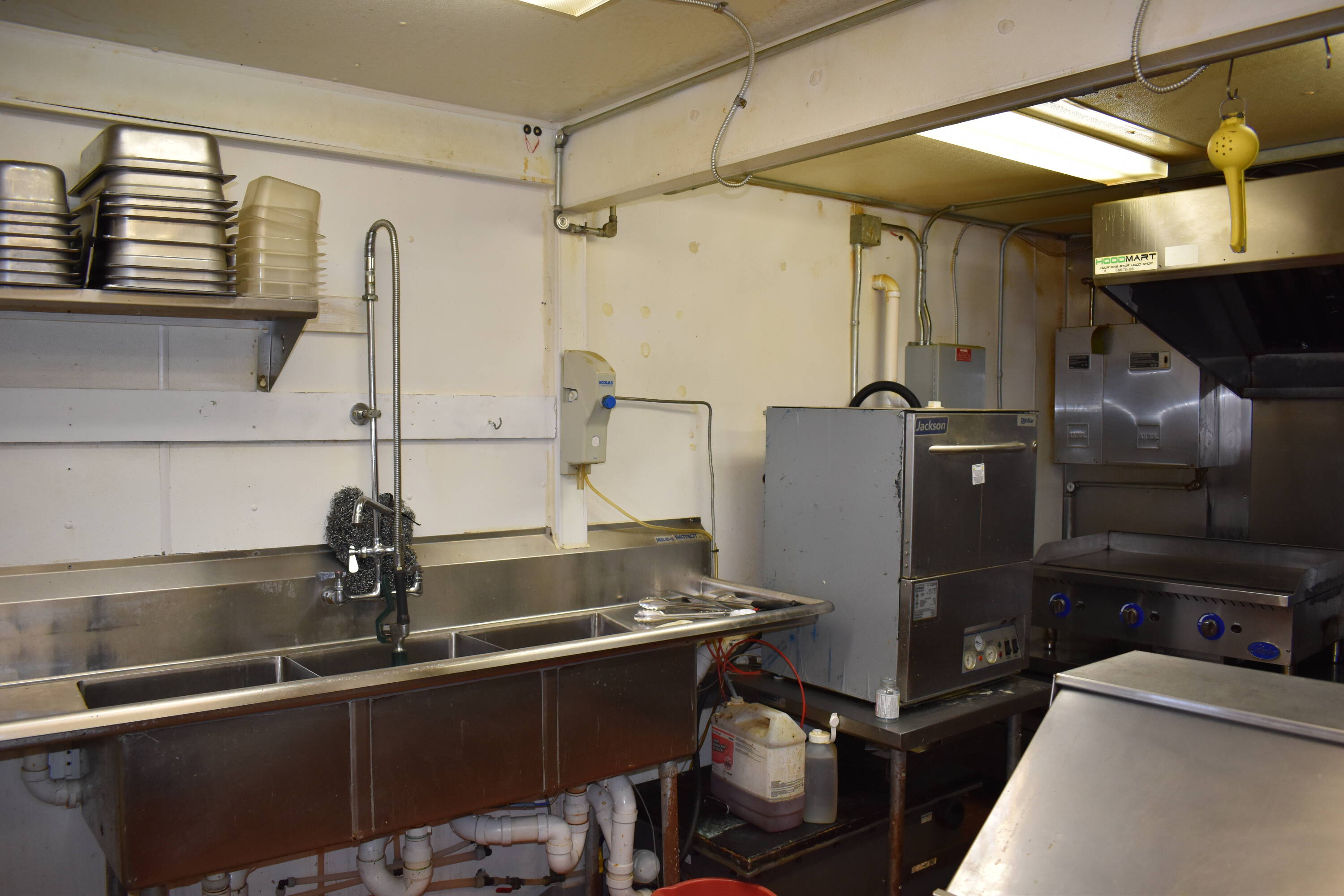 Remodeled restaurant space with updated commercial appliances in central Washburn.