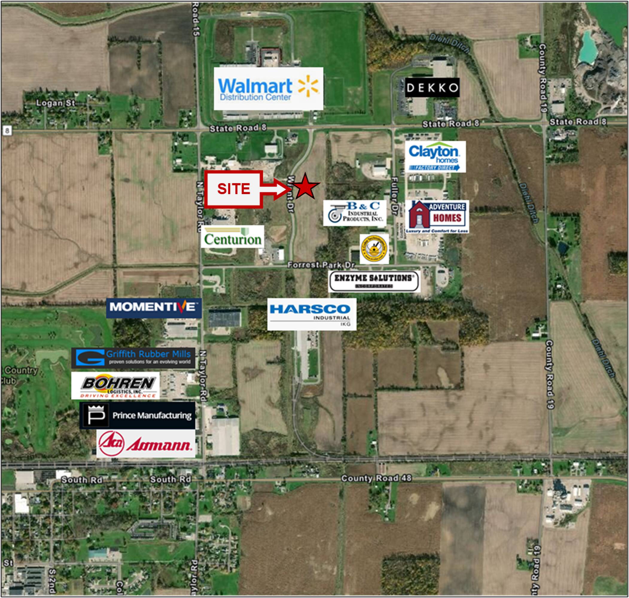 Industrial land near major transportation routes and distribution center.