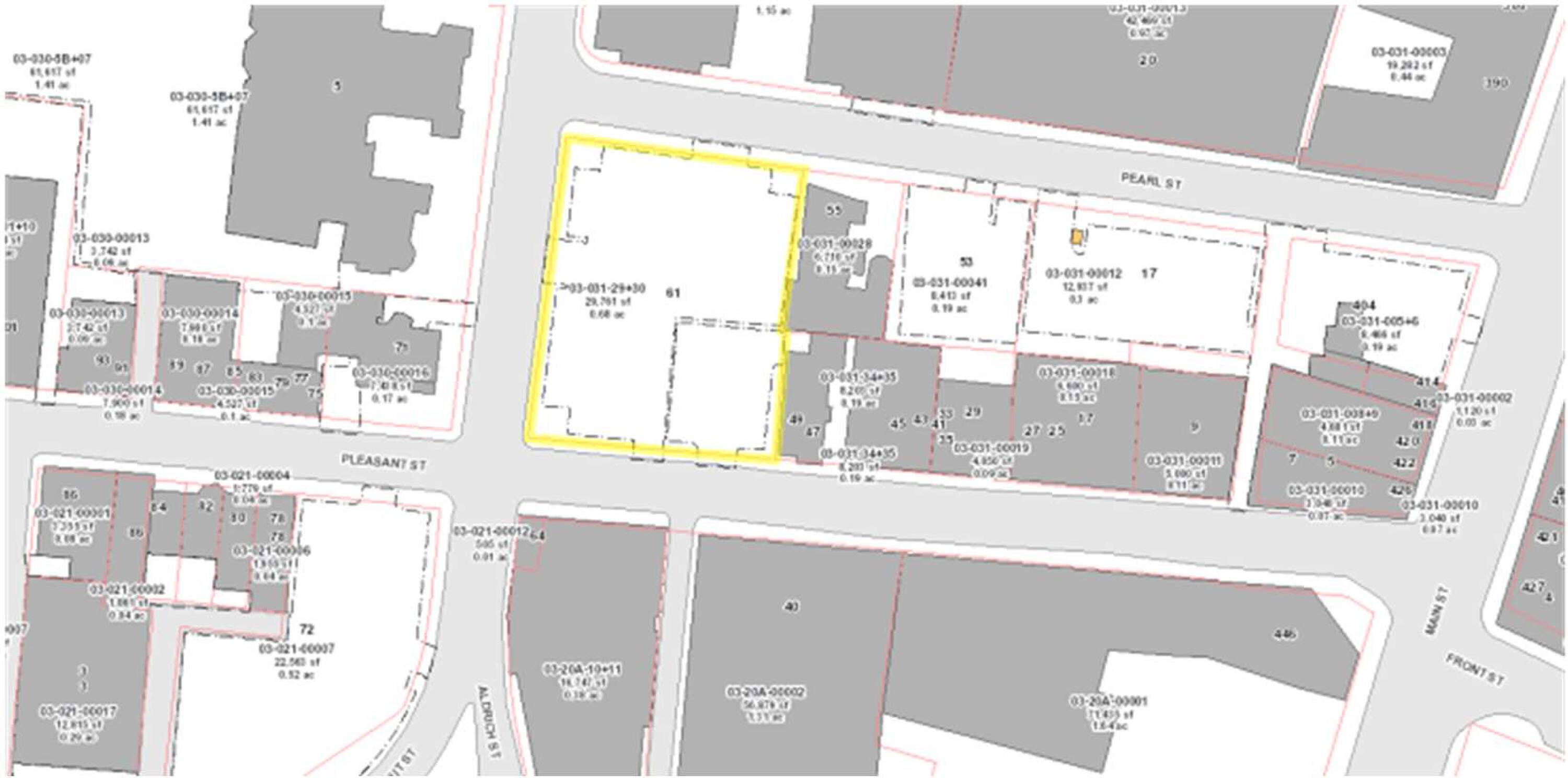 Two parcels are available in the Worcester Central Business District. Situated within an Opportunity Zone, these parcels can be purchased individually or as a package. Located at 61 Pearl Street and 30 Chatham Street, the parcels are currently paved and licensed parking lots. The BG-6 zoning allows for business general uses, including office, food service, hotel, and multi-family developments.