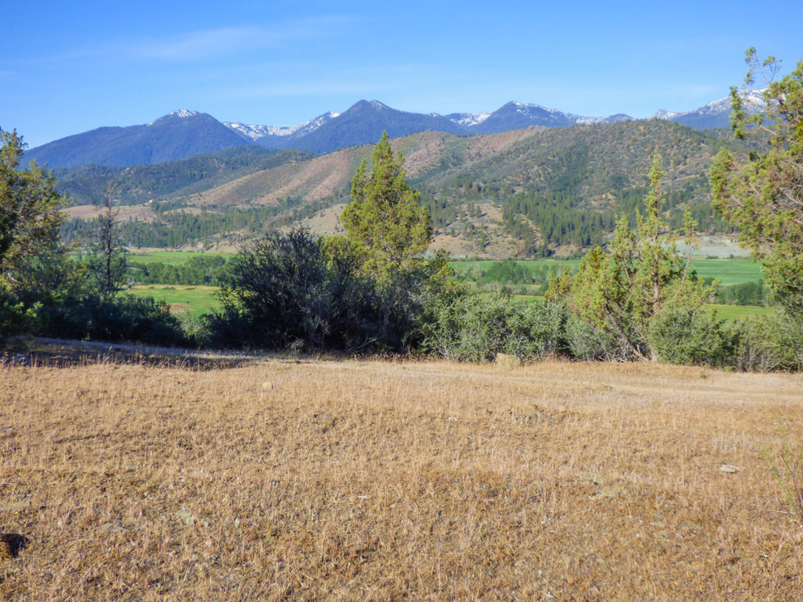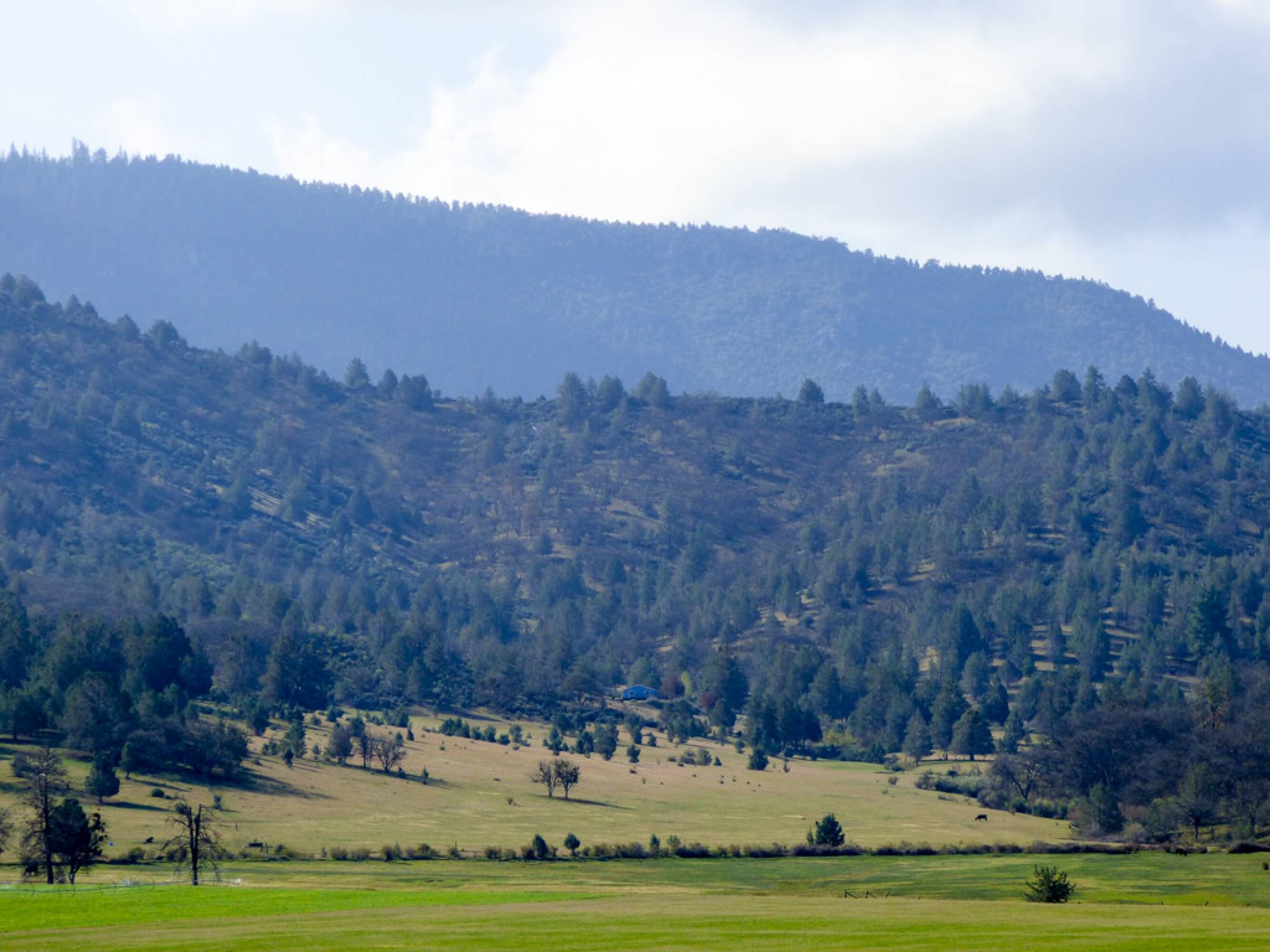 The property features 532.7 acres of rolling hillside land with a 1998 manufactured home. The home, approximately 1,200 square feet, includes 3 bedrooms and 2 baths. It operates off-grid, utilizing solar power, a generator, and propane appliances for heat. New components include the roof, panels, batteries, controller, and generator. A wraparound deck with a wheelchair ramp and a 12-volt lift provides access. The master bedroom, bath, and closet are wheelchair accessible. The home has been freshly painted inside and out, but the main living area floor needs new flooring. The property is fully fenced with barbed wire and has been grazed by horses. It offers views of Scott Valley and the surrounding mountains, with frequent sightings of deer, and occasional sightings of elk, bear, and wild pigs. A seasonal pond is also present. The property is located a few minutes' drive to either the small town of Etna or the tiny historic community of Callahan. Callahan, a former gold rush town, now hosts a post office, a small church, a historic cemetery, and a bar. The property is located near the Trinity Alps Wilderness and the Pacific Crest Trail, and under an hour's drive to Trinity Lake. Scott Valley, a rural agricultural community, provides elementary schools, a junior high, a high school, medical services, shopping, and restaurants. The home is around 50 minutes from Yreka, which has a small hospital, groceries, more shopping, and access to I-5 and Southern Oregon. Scott Valley is bordered by thousands of acres of timbered wilderness in the Klamath National Forest, including the Trinities, the Russian Wilderness, and the Marble Mountain Wilderness. This area is known for its scenic beauty, many small lakes, fishing, hiking, packing & horseback riding, the Pacific Crest Trail, blacktail deer, and bear hunting, and hidden caves. The property is suitable for a full-time home or a second vacation get-away.