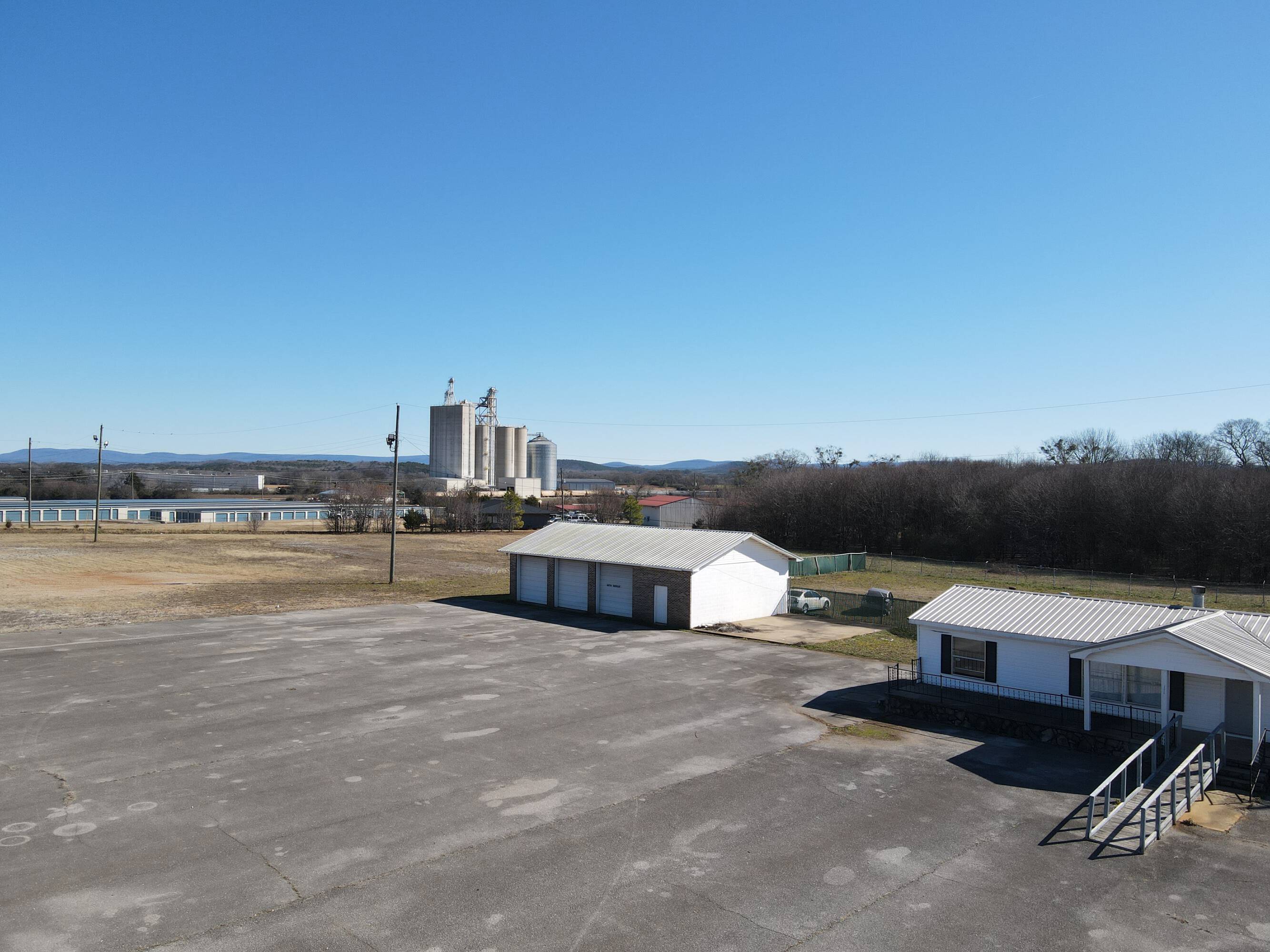 8-acre commercial/industrial property with office, shop, and storage.
